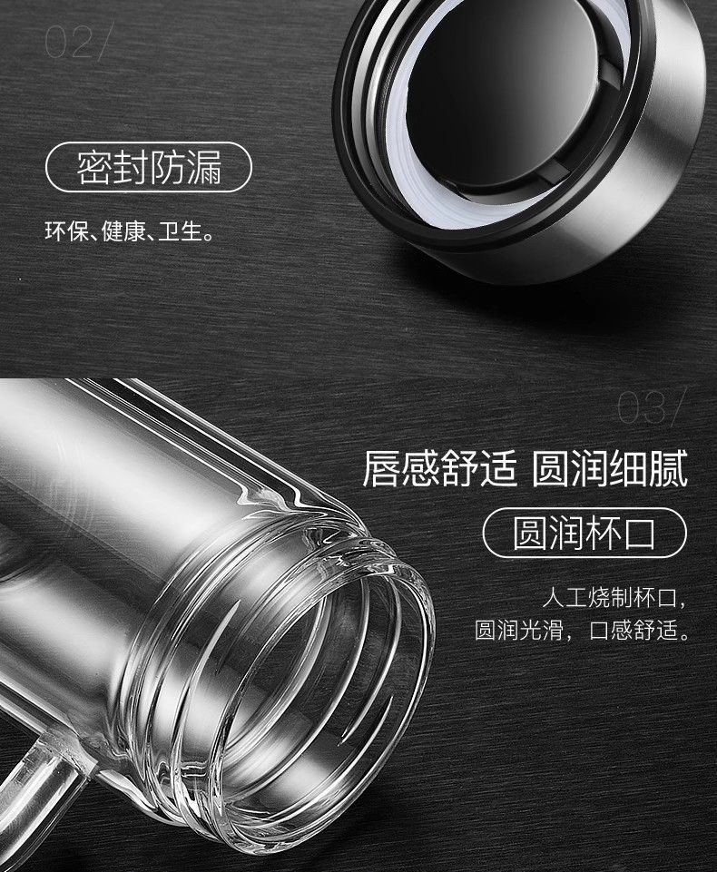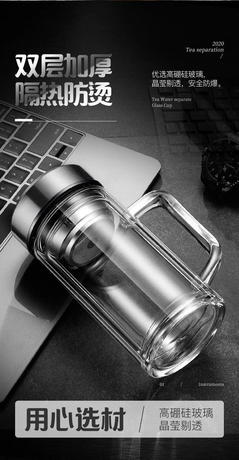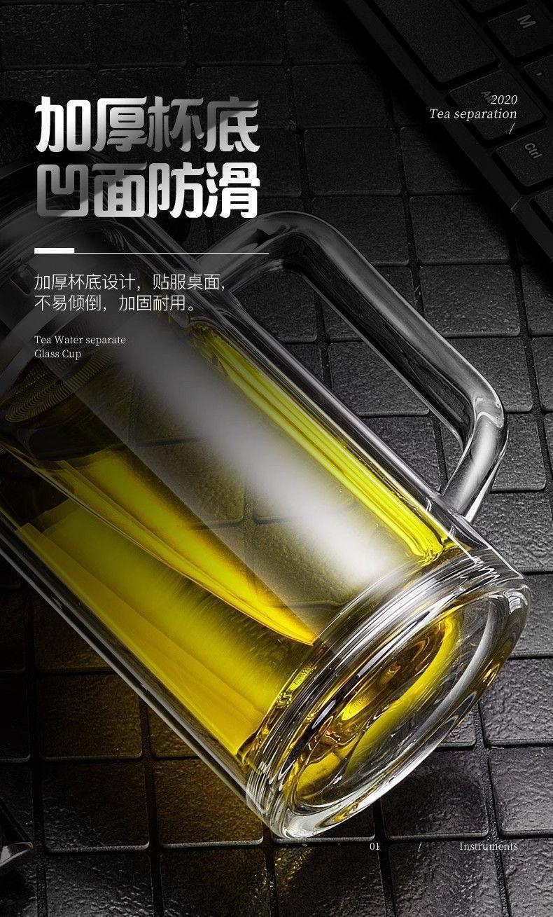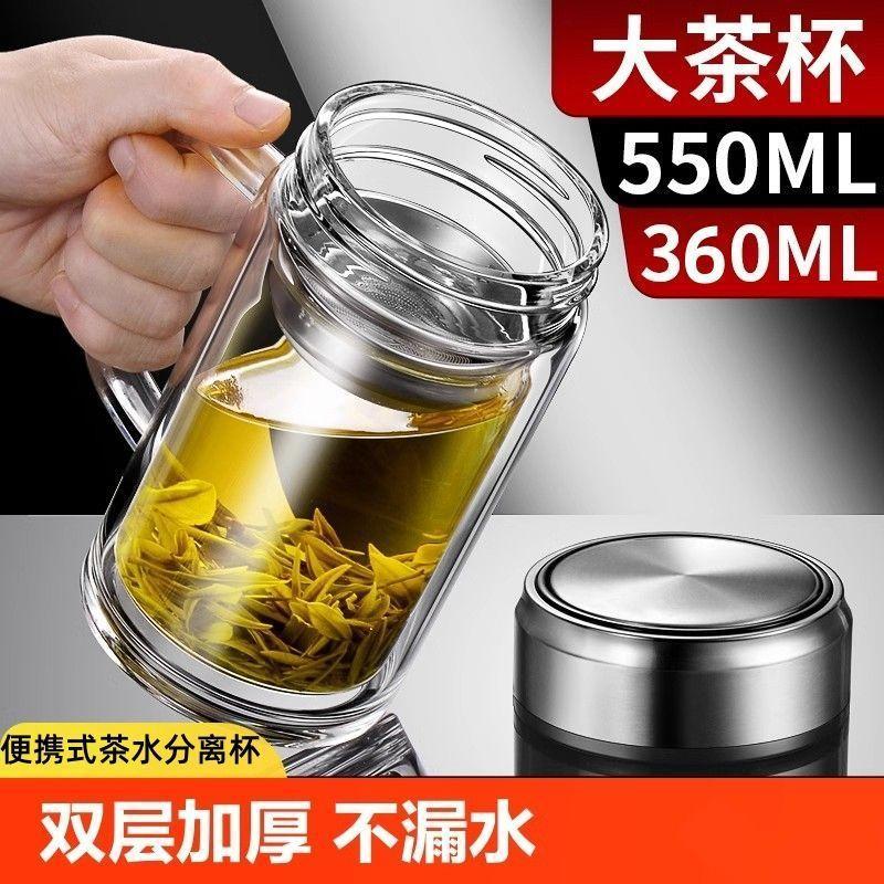 Taza de agua para hombre con aislamiento térmico y asa de vidrio de doble capa, taza de té de gran capacidad, taza portátil con separación de té para el hogar