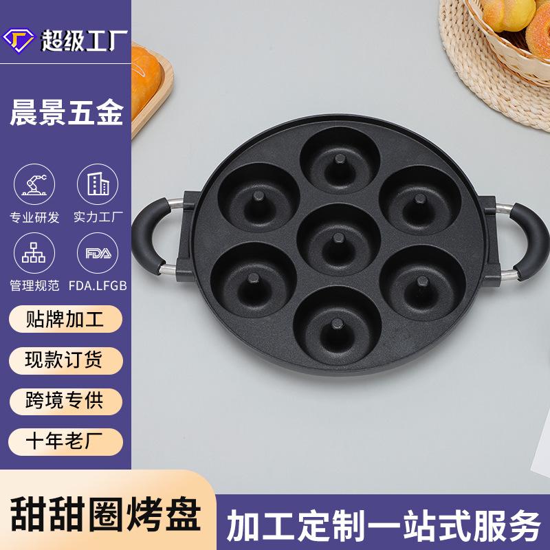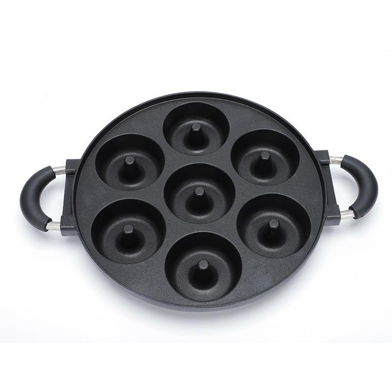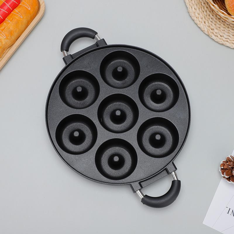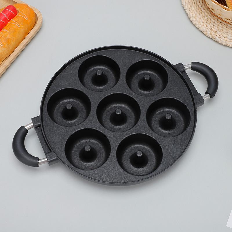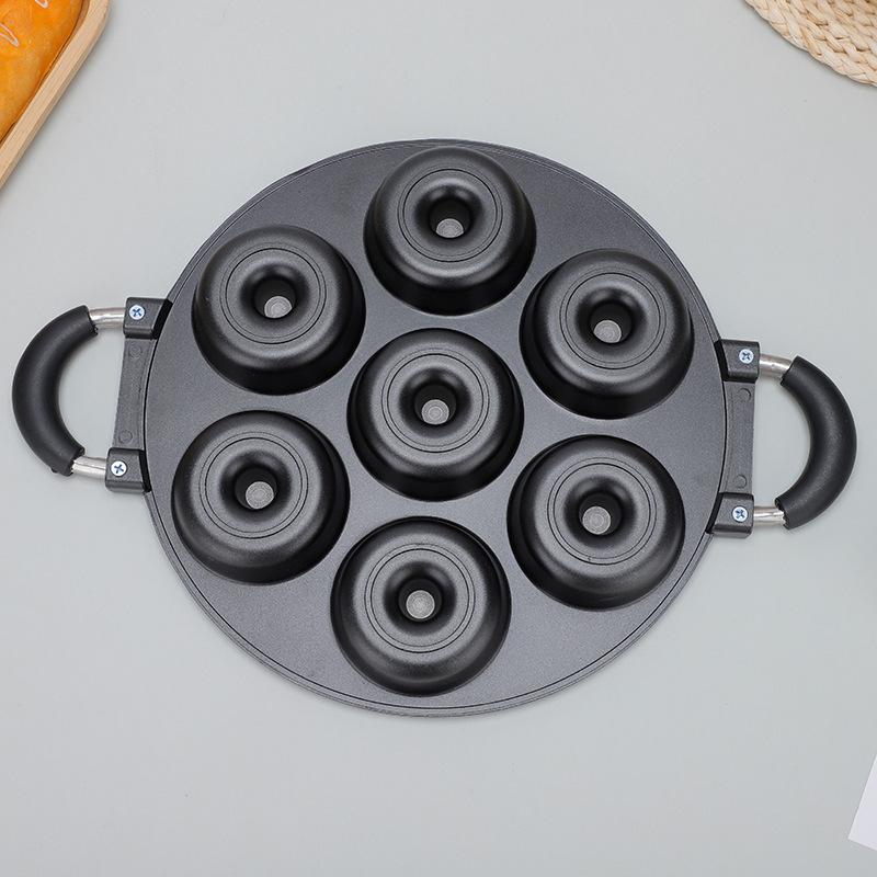 Molde para pastel de aluminio de 7 agujeros con punta mediana. Las donas no se succionan. Placa para hornear fácil de desmontar. Placa para hornear con orificios redondos de doble oreja.