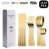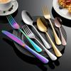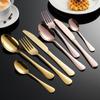 Amazon Explosions 1010 Cubiertos de Acero Inoxidable Cuchillo, Tenedor y Cuchara Juego de Cubiertos Occidental de Cuatro Piezas para Bistec Cuchillo y Tenedor Chapados en Oro