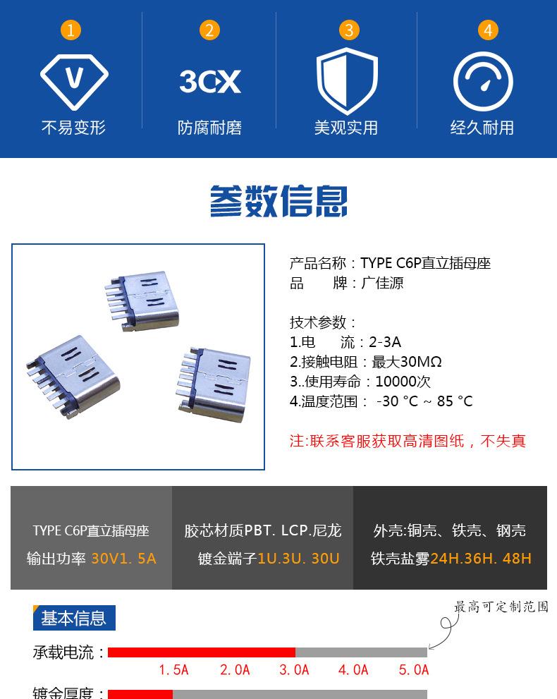 Conector vertical hembra tipo C de 6 pines conector vertical tipo C6P hembra conector verticalEnchufe vertical tipo c6pConector hembra tipo c de 6 pinesPuerto de carga tipo c6p