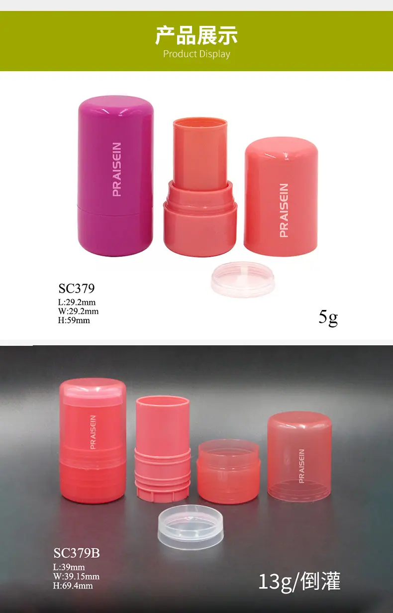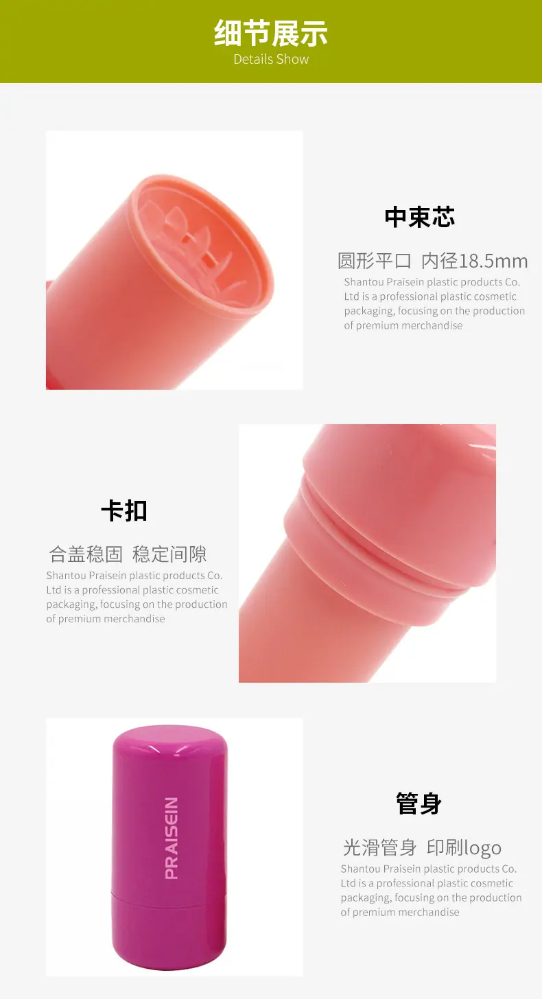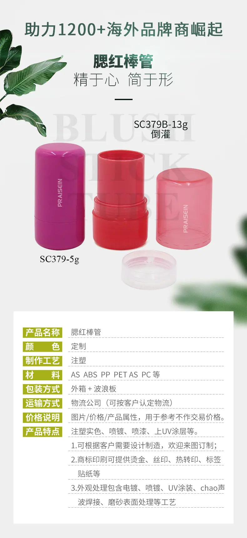 Material de Empaque Barra de Rubor en Gel Rosa de 5g en Stock, Tubo de Plástico Redondo Invertido Hidratante de 13g, Tubo de Desodorante