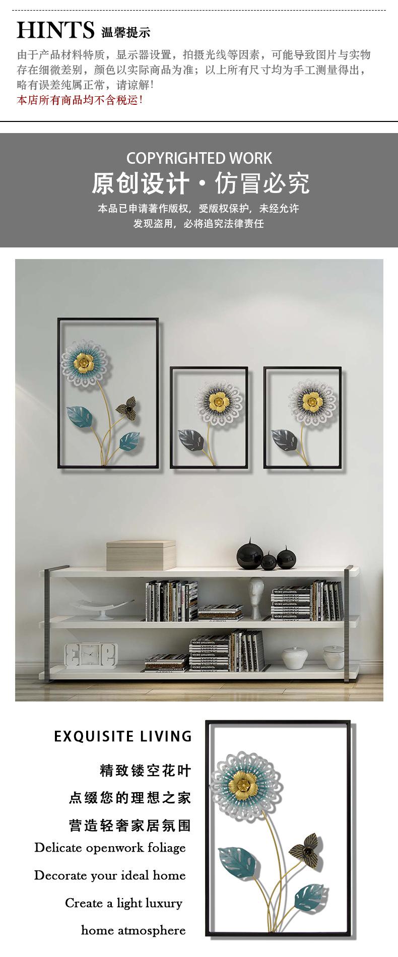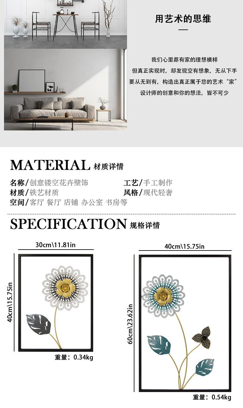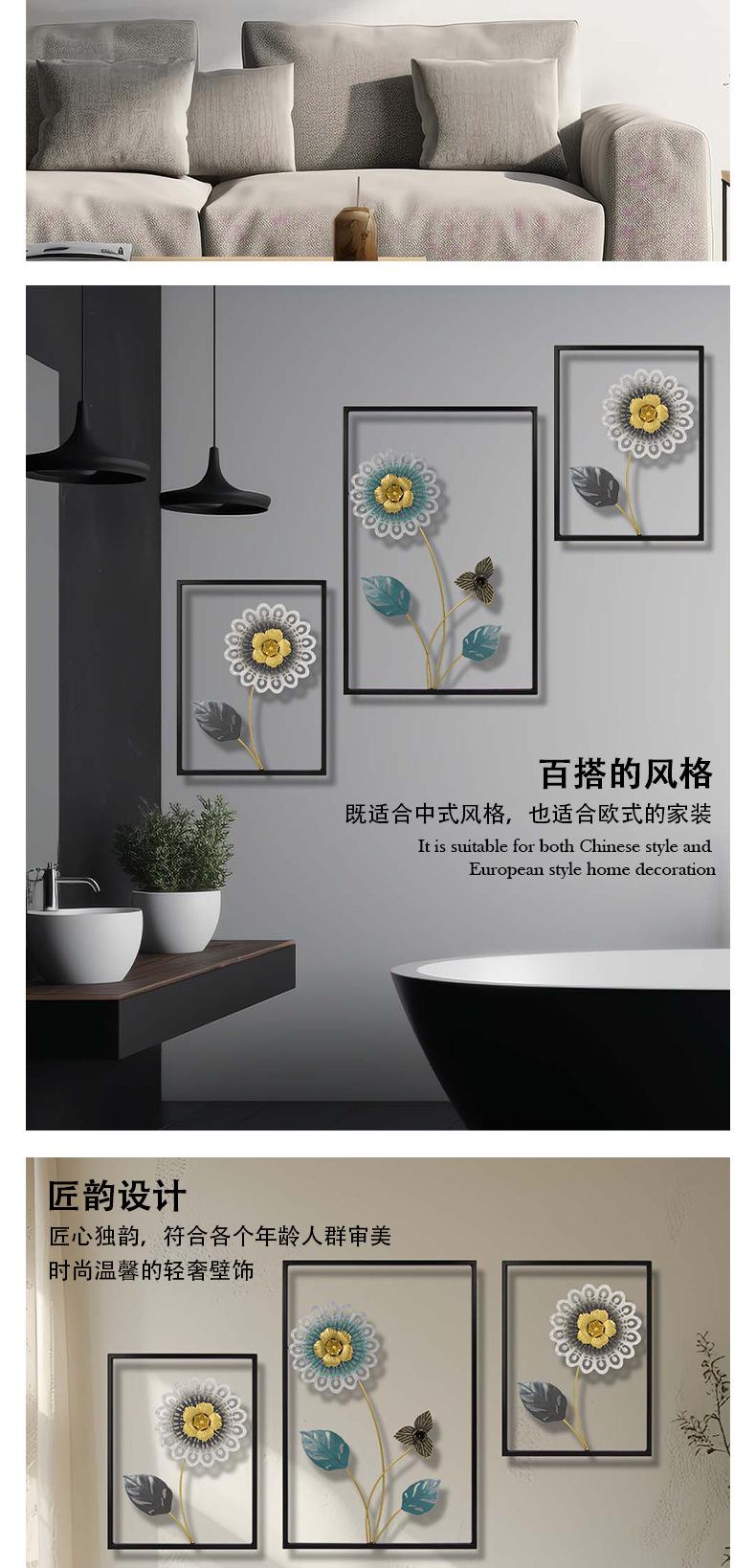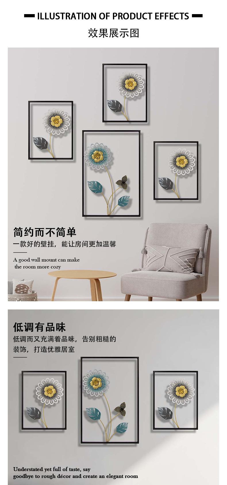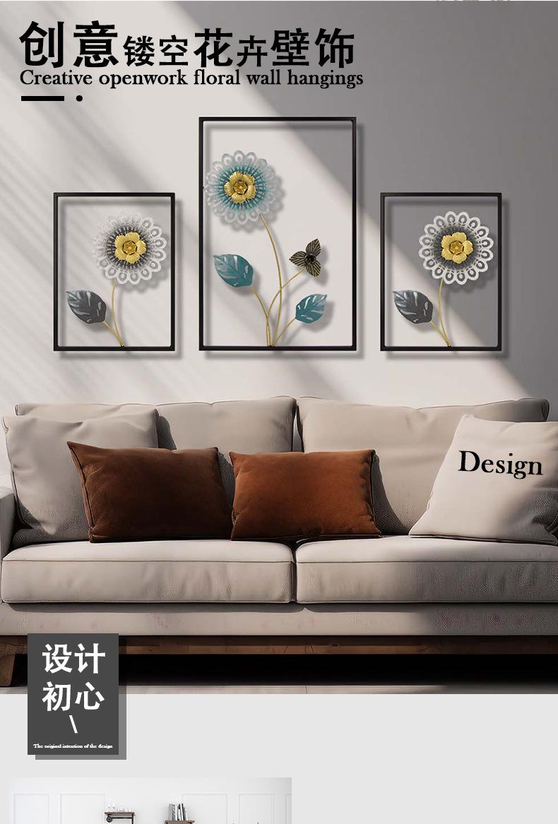 Pared de fondo minimalista moderno colgante de pared artesanías creativas de hierro girasol sala de estar decoración de pared de alta gama venta al por mayor de fábrica