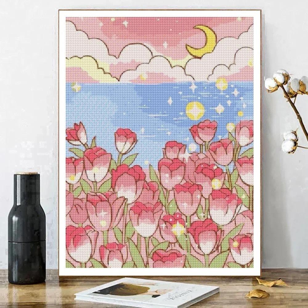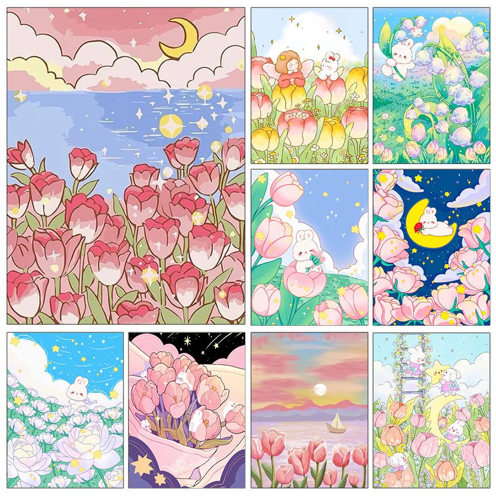 Fabricantes de origen transfronterizo Diamante 5D Conejo de dibujos animados Tulipán DIY hecho a mano Pintura decorativa para sala de estar Entrega rápida