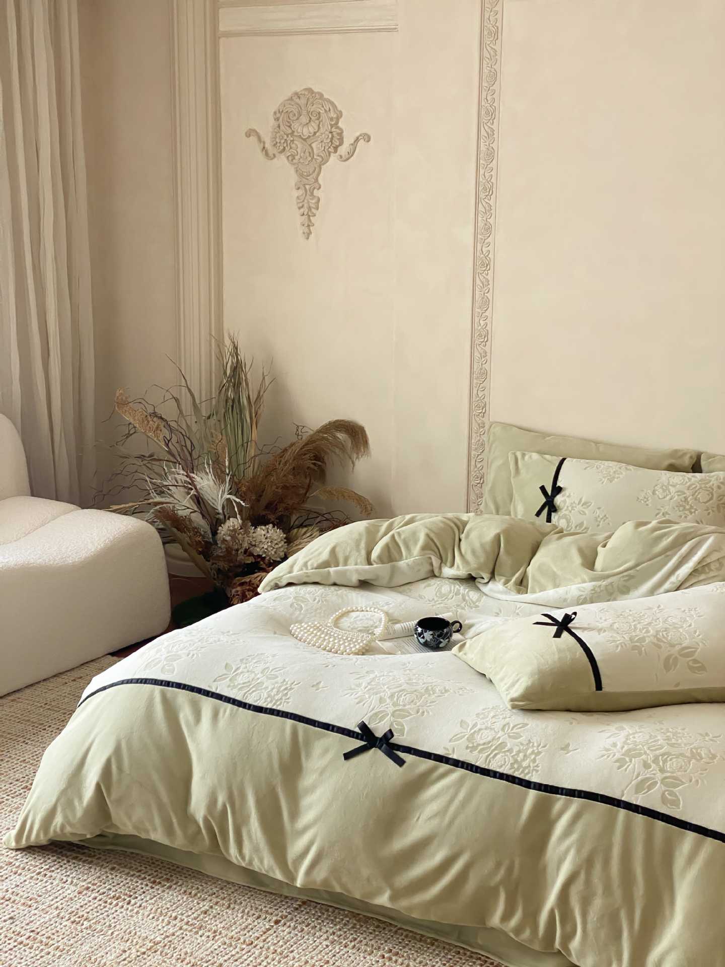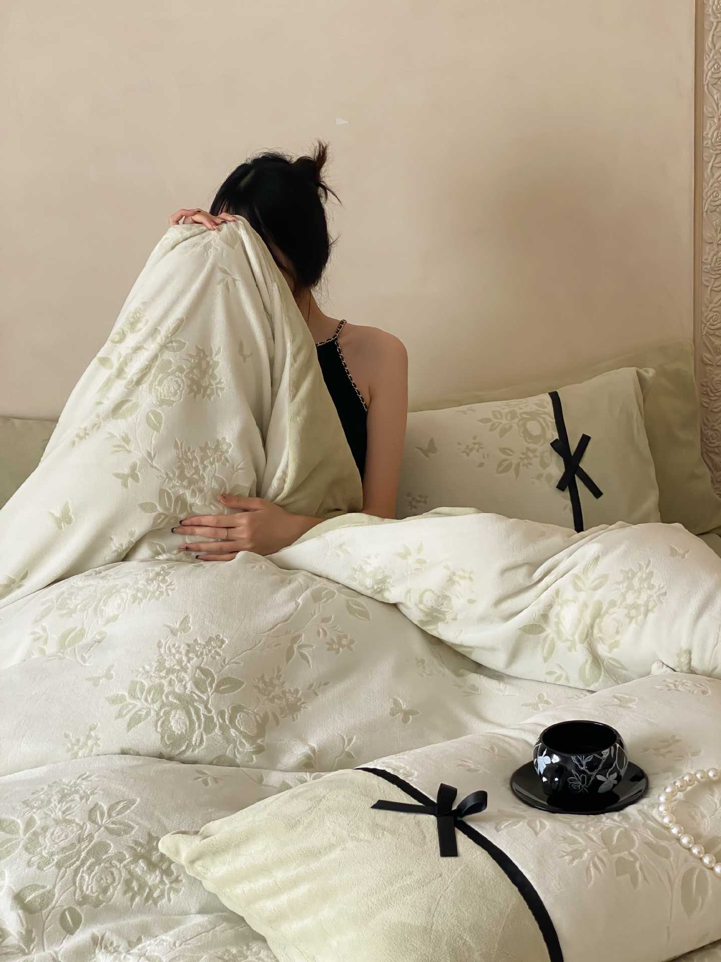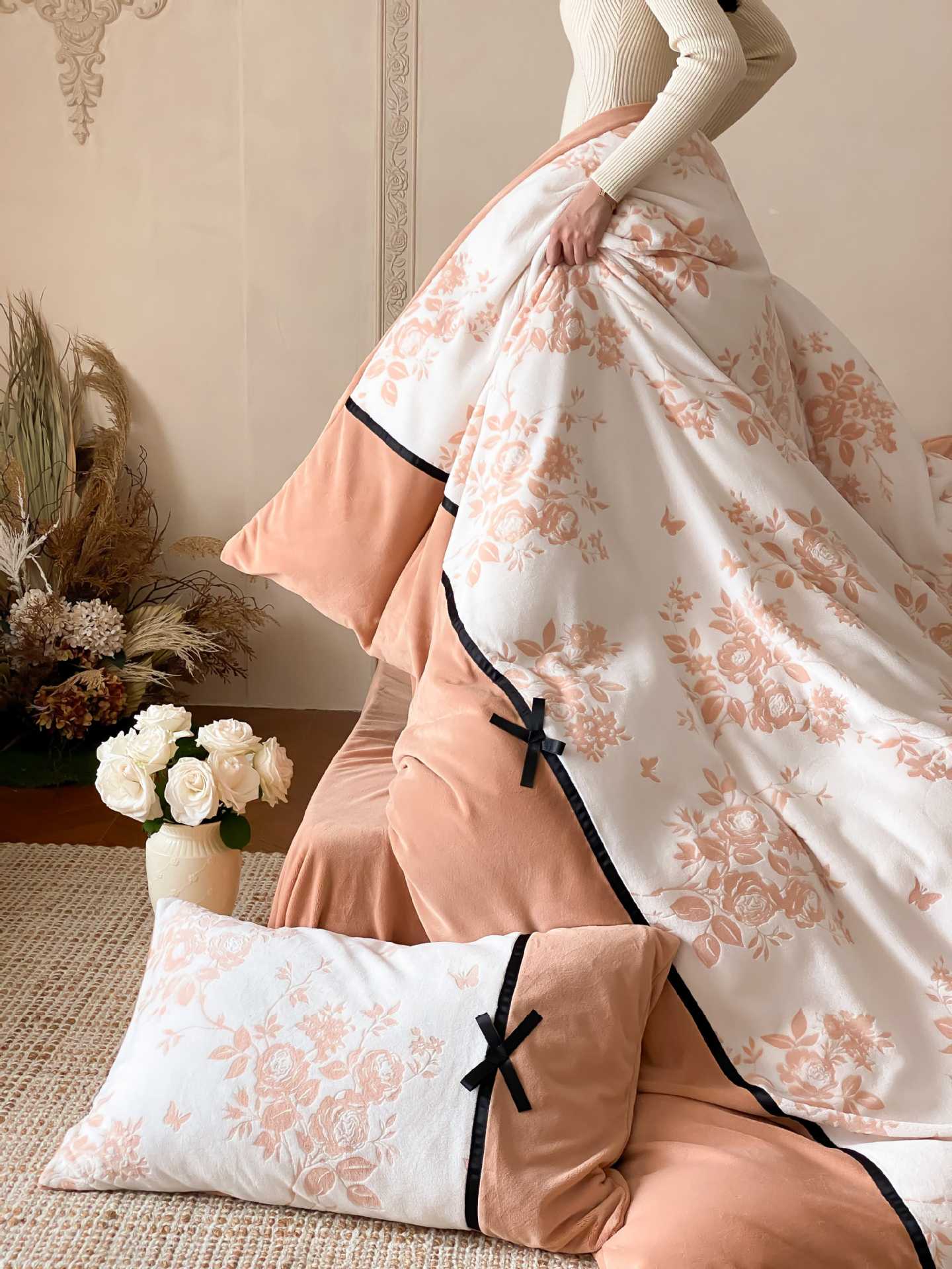 △ Nota: Durante el proceso de producción y corte de telas de terciopelo, quedarán cabellos sueltos y rotos.