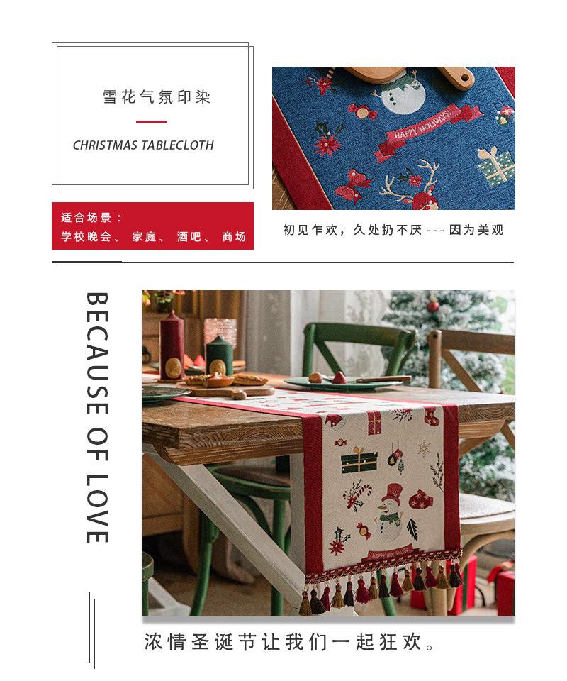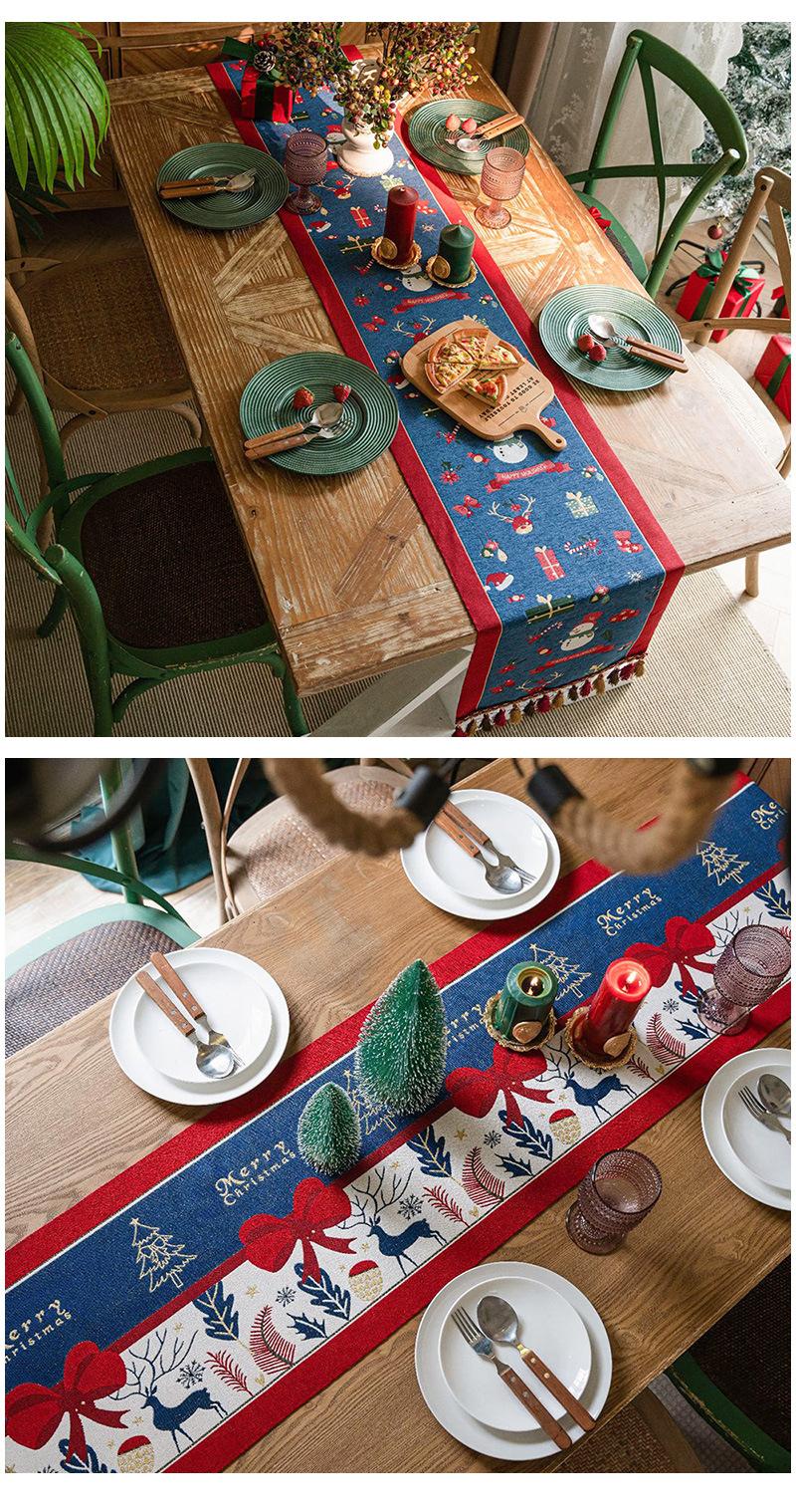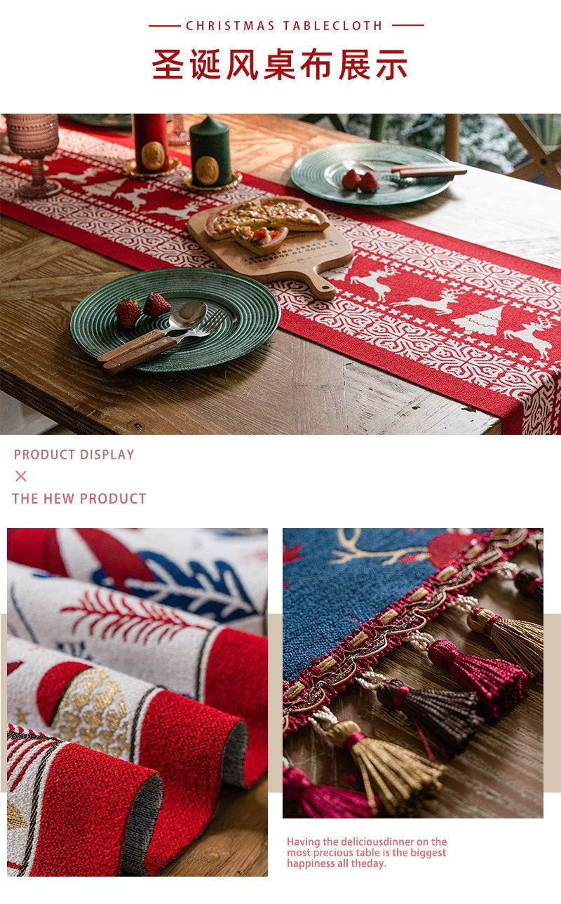Compra Bandera de Mesa Navideña Decorativa de Vacaciones Atmósfera Mantel Largo Borla Jacquard Teñido en Hilo Cubre Mesa de Centro Estilo Retro Americano al por mayor en Joom.pro