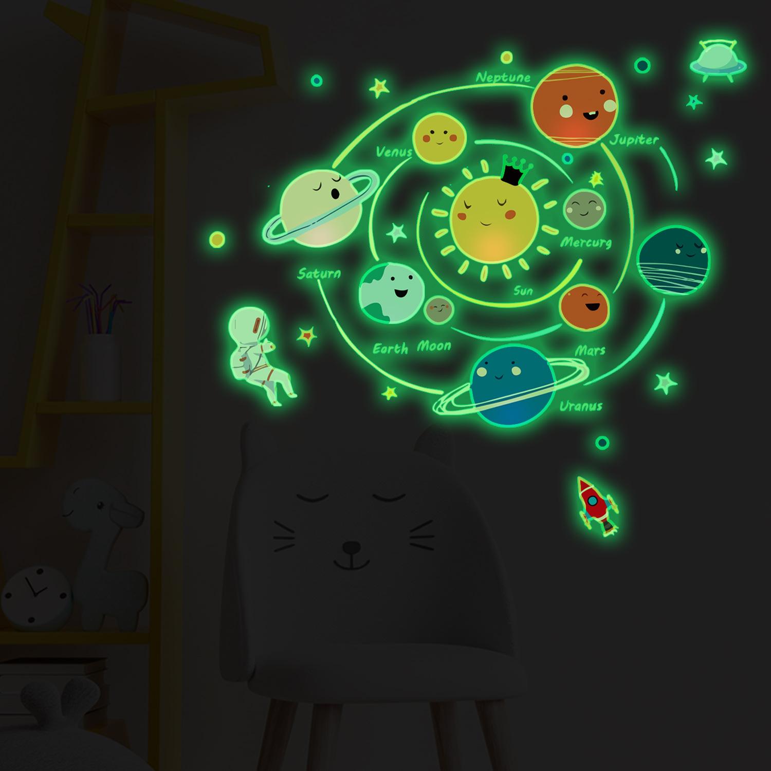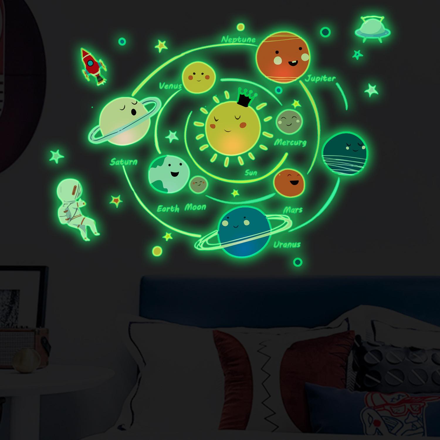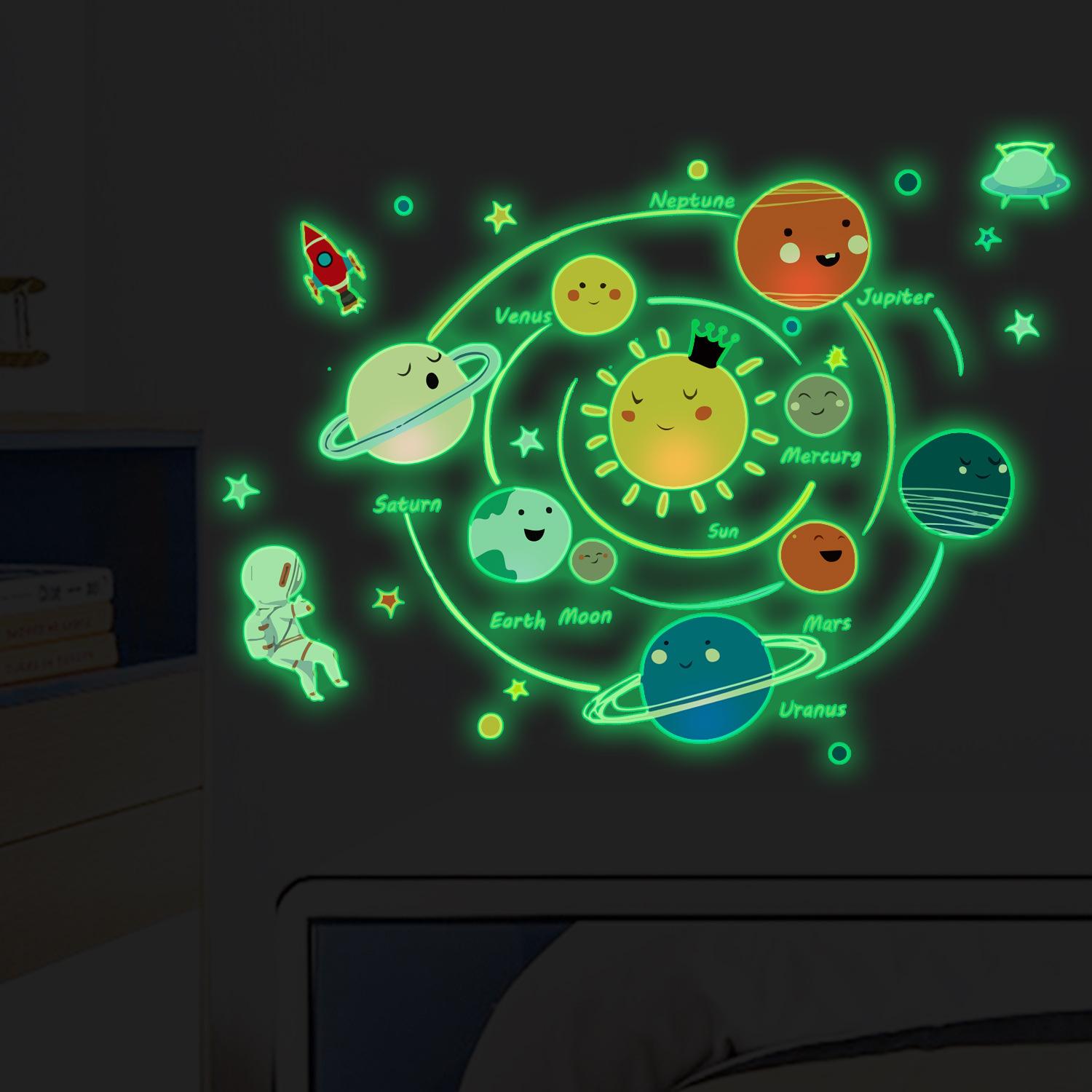 Pegatinas de Pared Luminosas de Nueve Planetas para Comercio Exterior Transfronterizo de Amazon, Pegatinas Luminosas Nocturnas para Decoración de Pared de Habitación Infantil