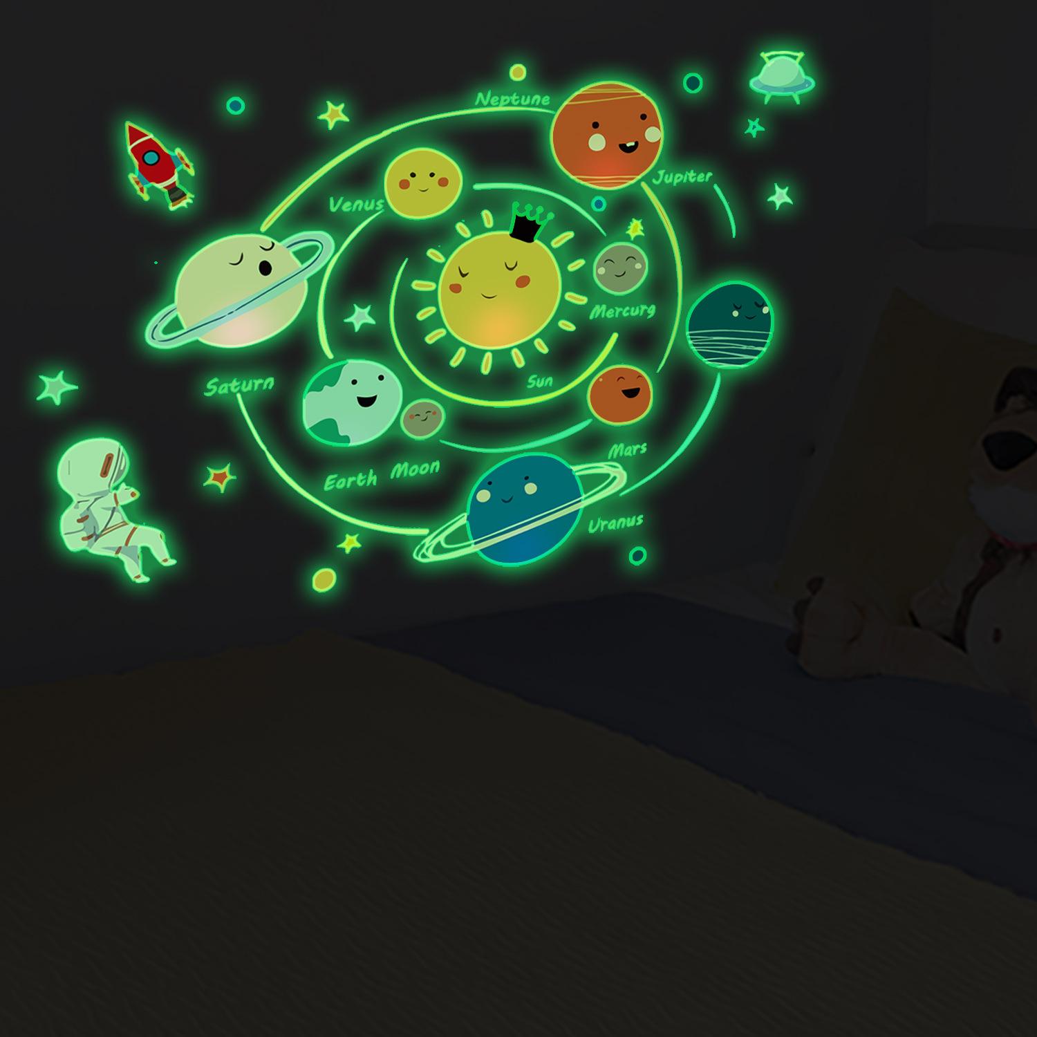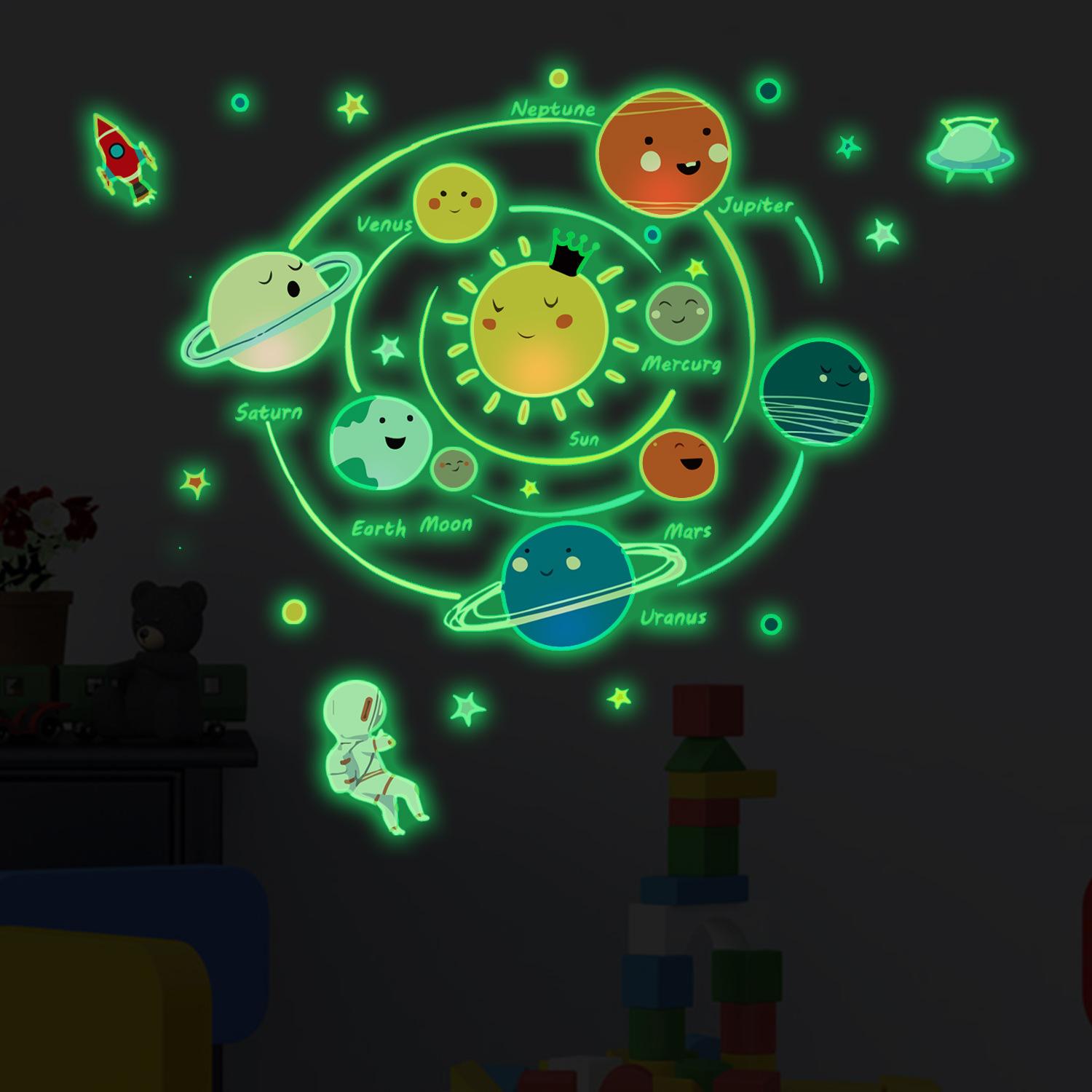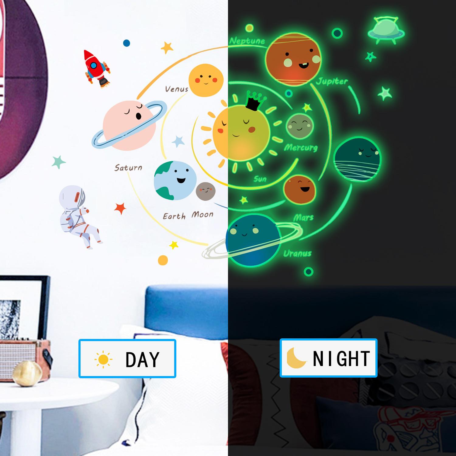 Pegatinas de Pared Luminosas de Nueve Planetas para Comercio Exterior Transfronterizo de Amazon, Pegatinas Luminosas Nocturnas para Decoración de Pared de Habitación Infantil