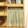 Green small plaid beige lace half curtain [Rod purchased separately]]