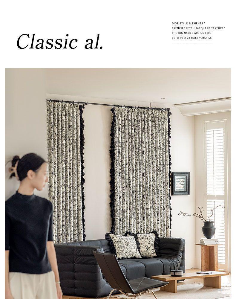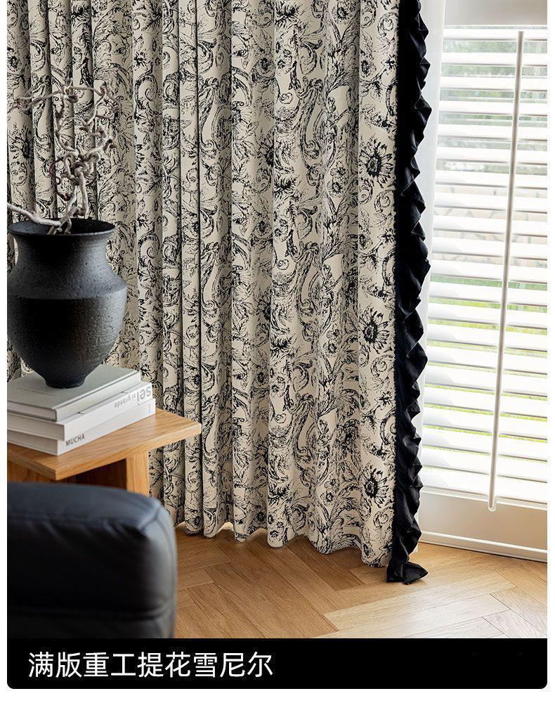 Cortina Blackout Estilo Nuevo 2025 Sala de Estar Francés Vintage Jacquard Chenilla Piso Sala de Estar Dormitorio Estudio Cortina