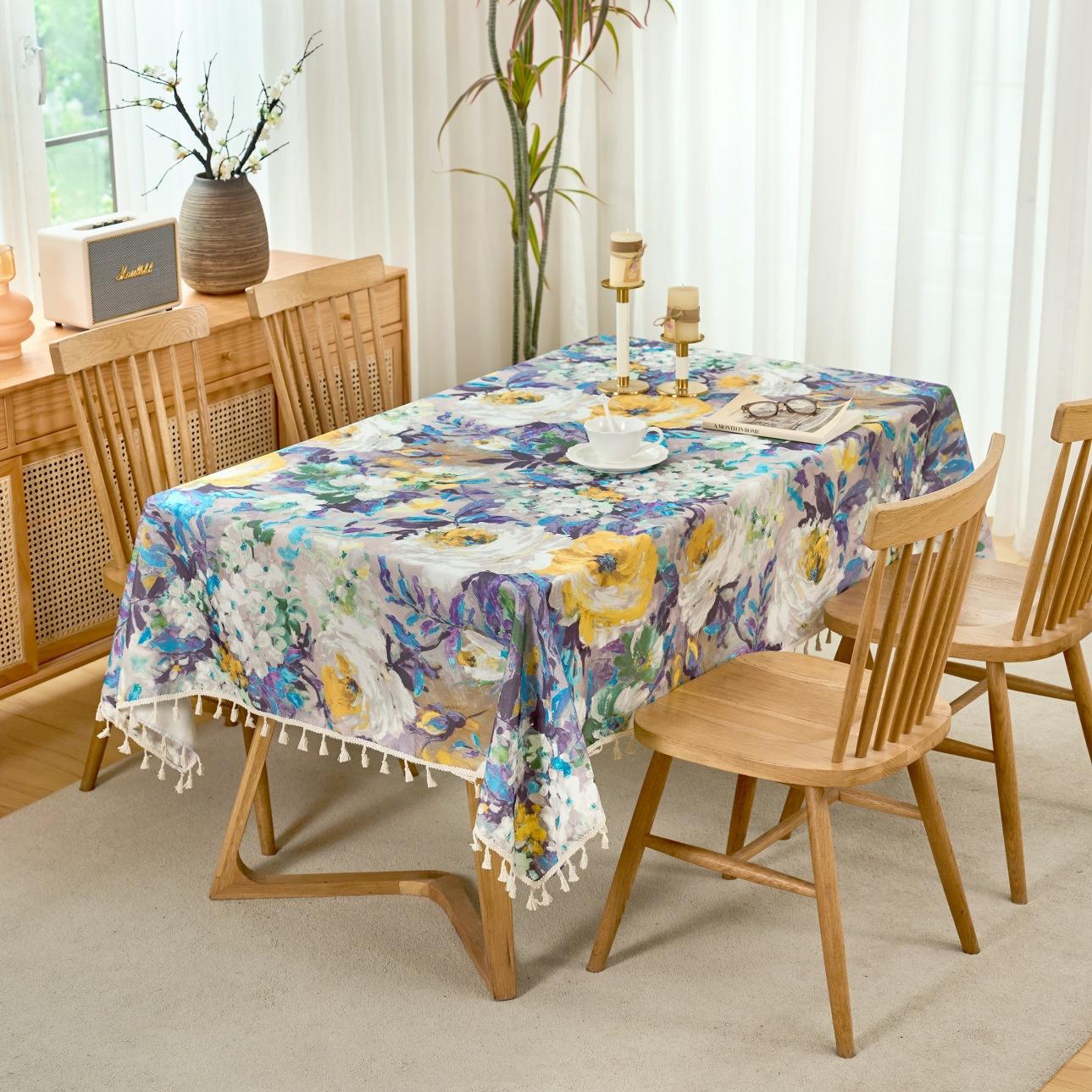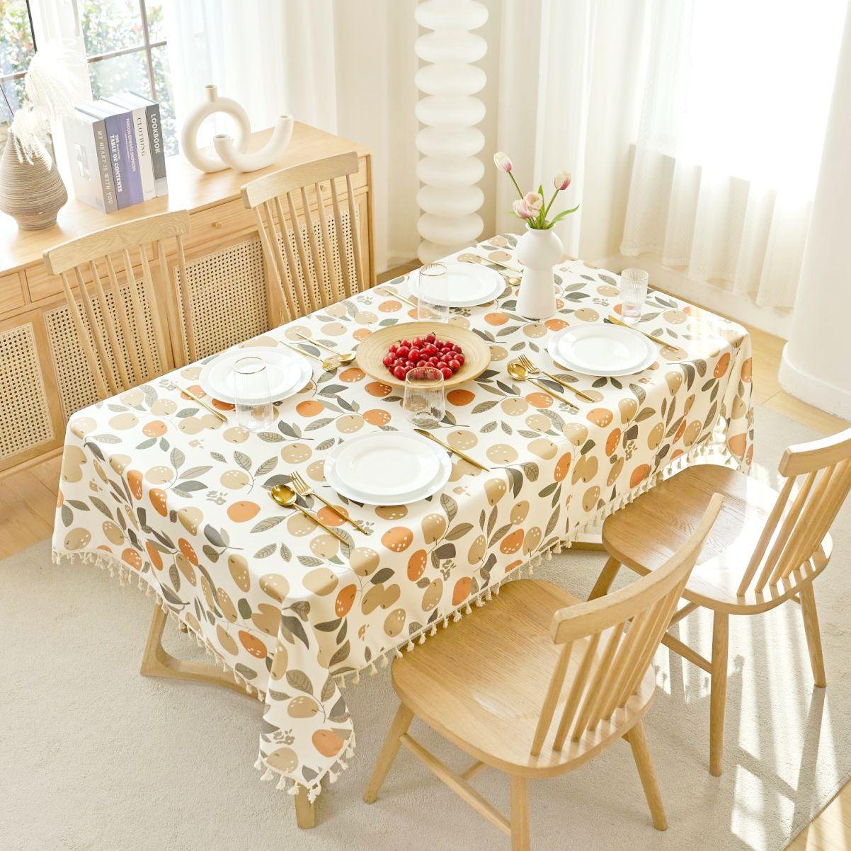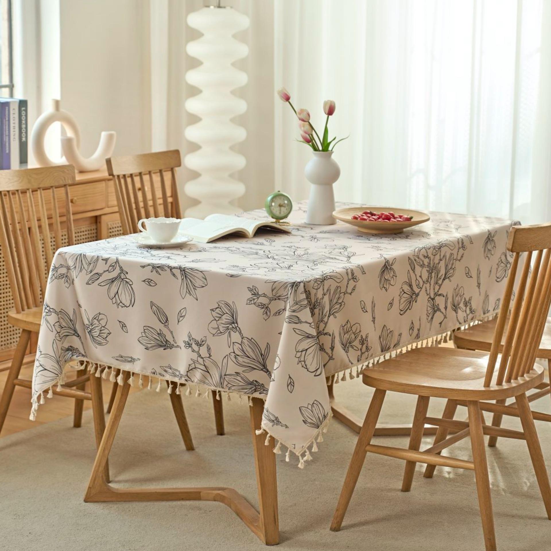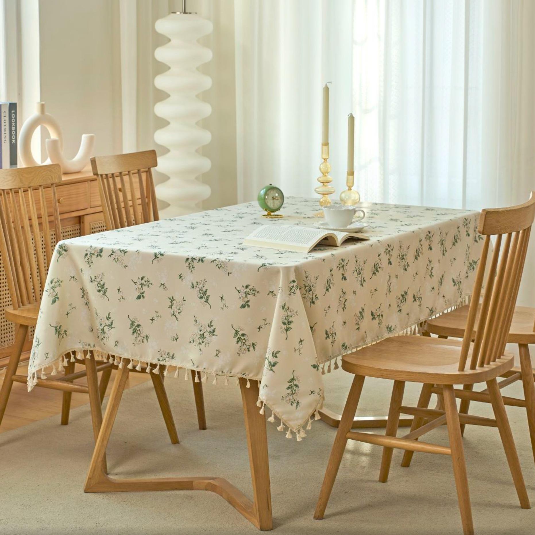 Mantel Impermeable de Algodón Lino Desechable Tela Estilo Étnico Bohemio Rectangular Borla Mantel para Mesa de Comedor Mesa de Centro Mantel a Prueba de Aceite
