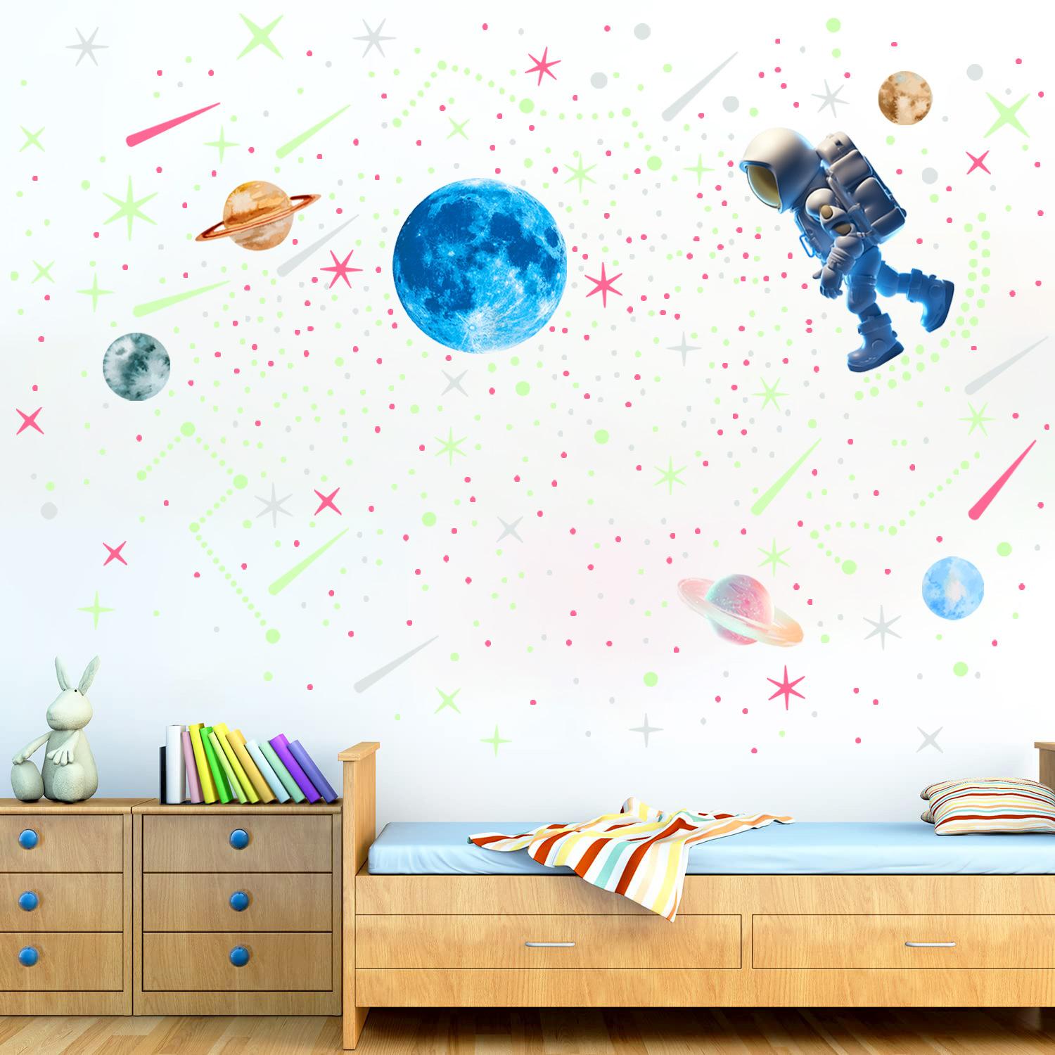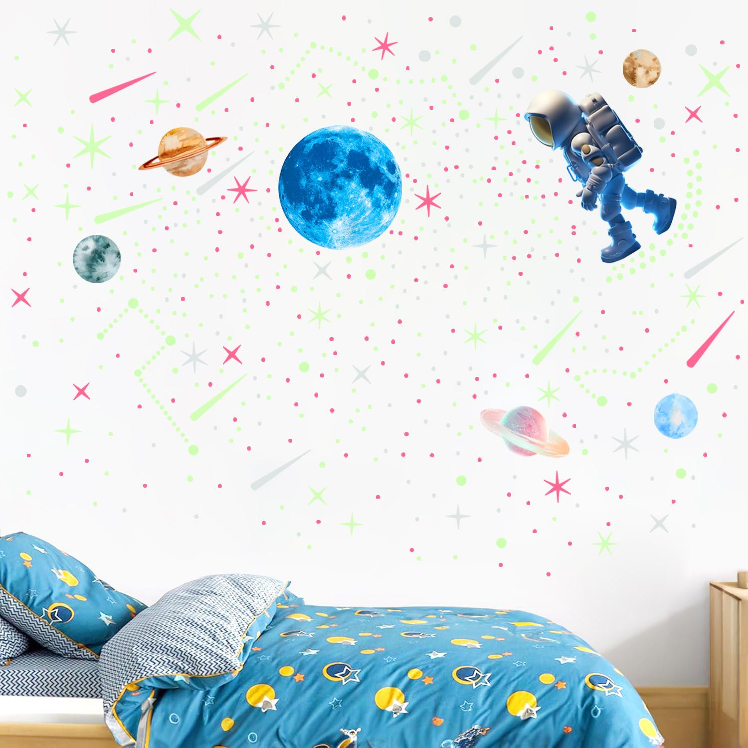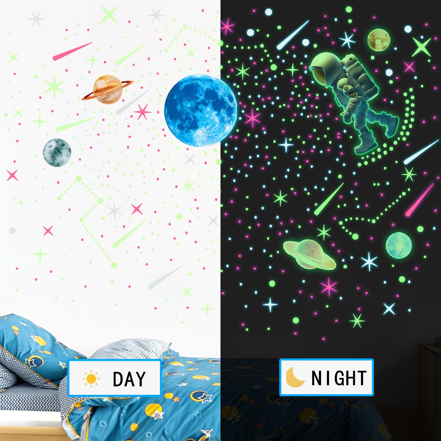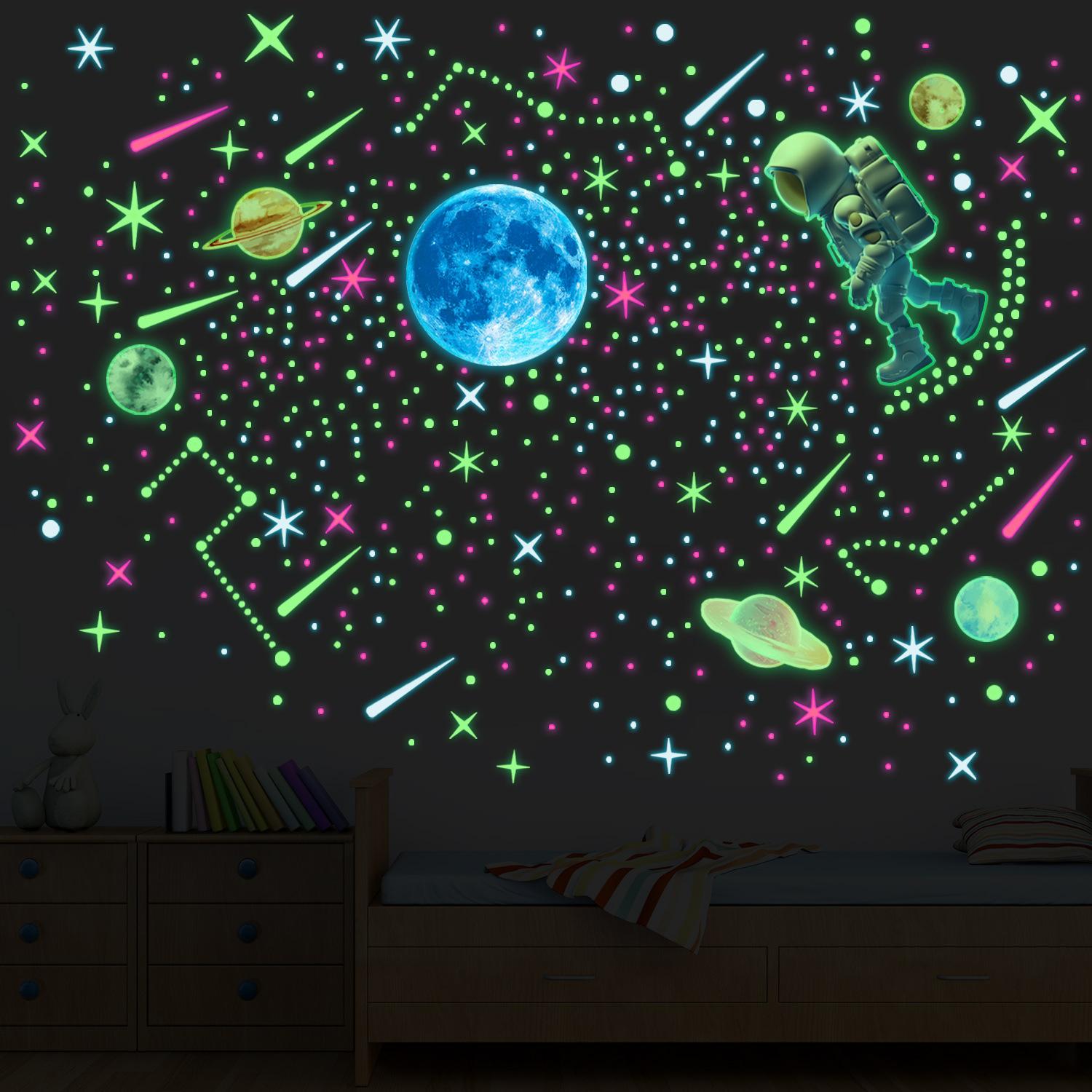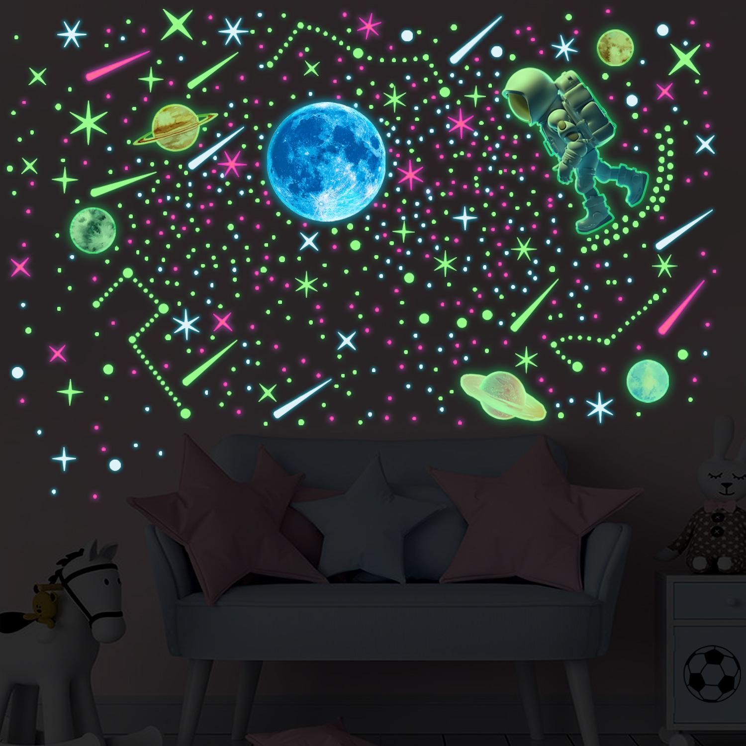 Amazon Comercio Exterior Transfronterizo Luna Luminosa Nueve Planetas Estrellas Noche Pegatinas de Pared Luminosas Pegatinas para la Habitación Familiar