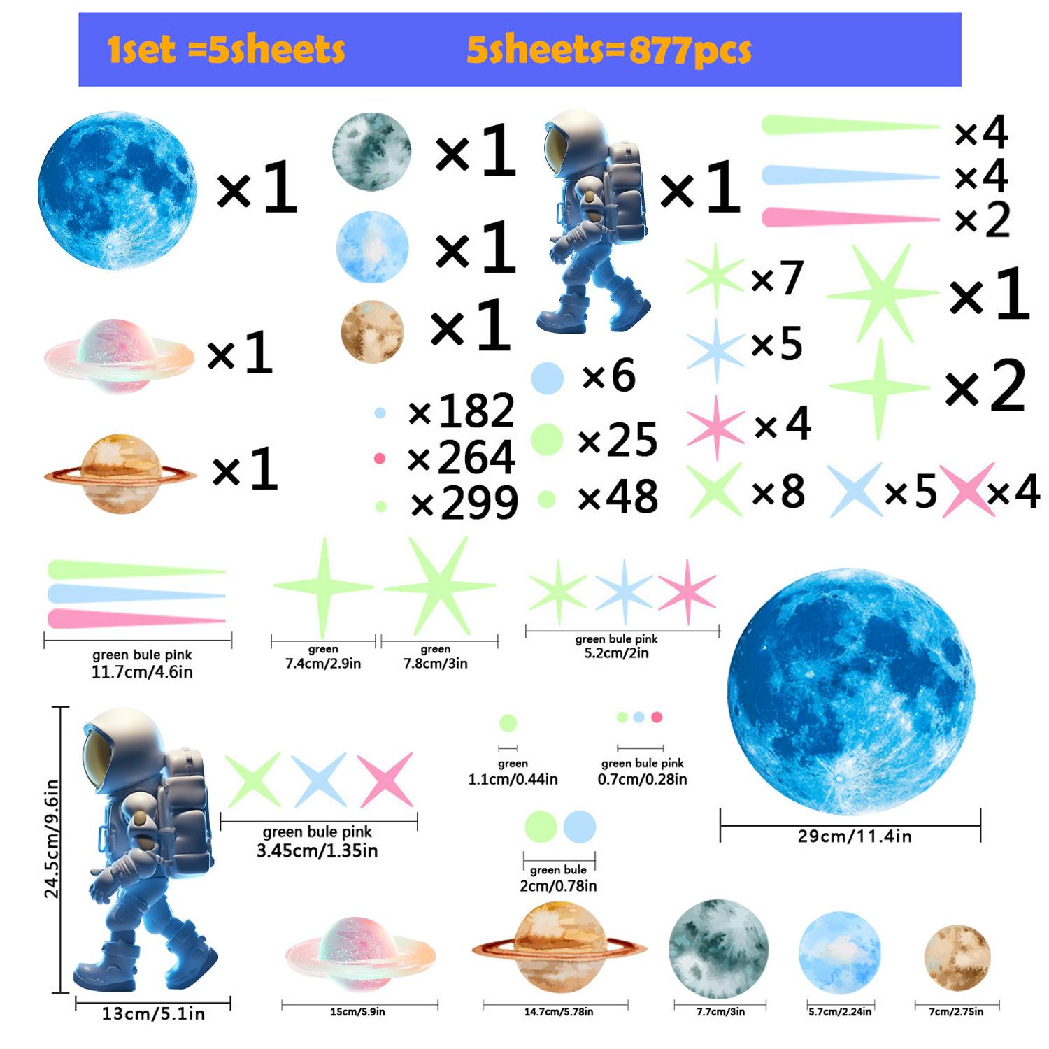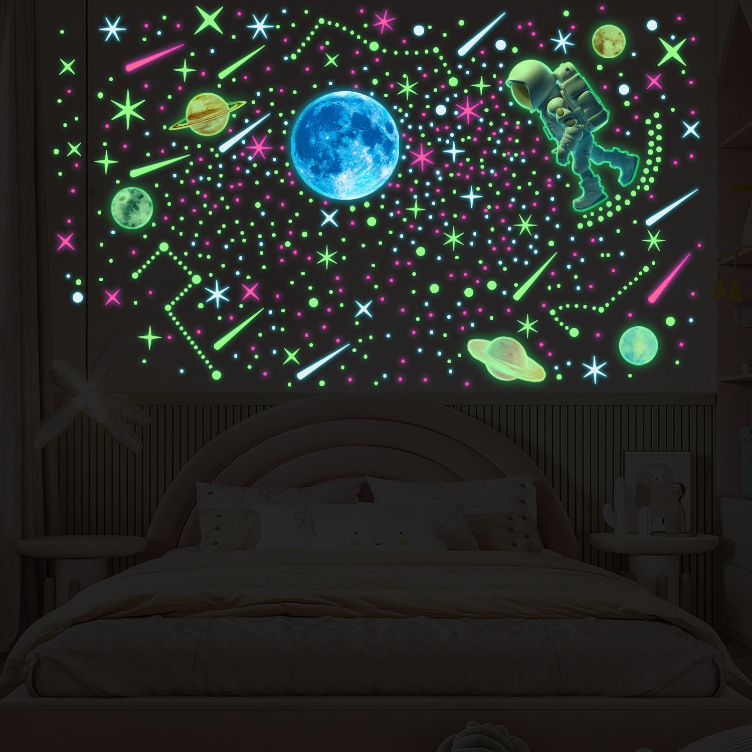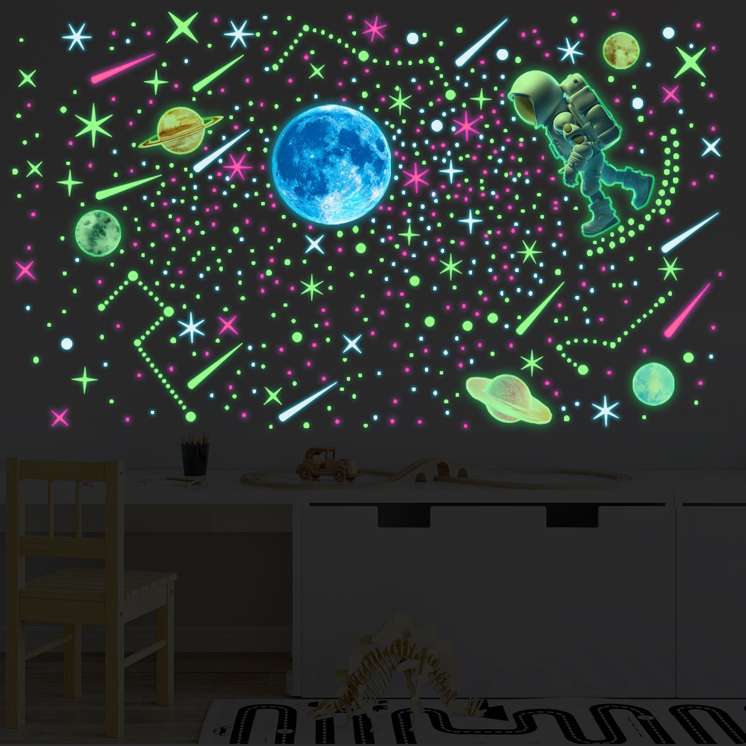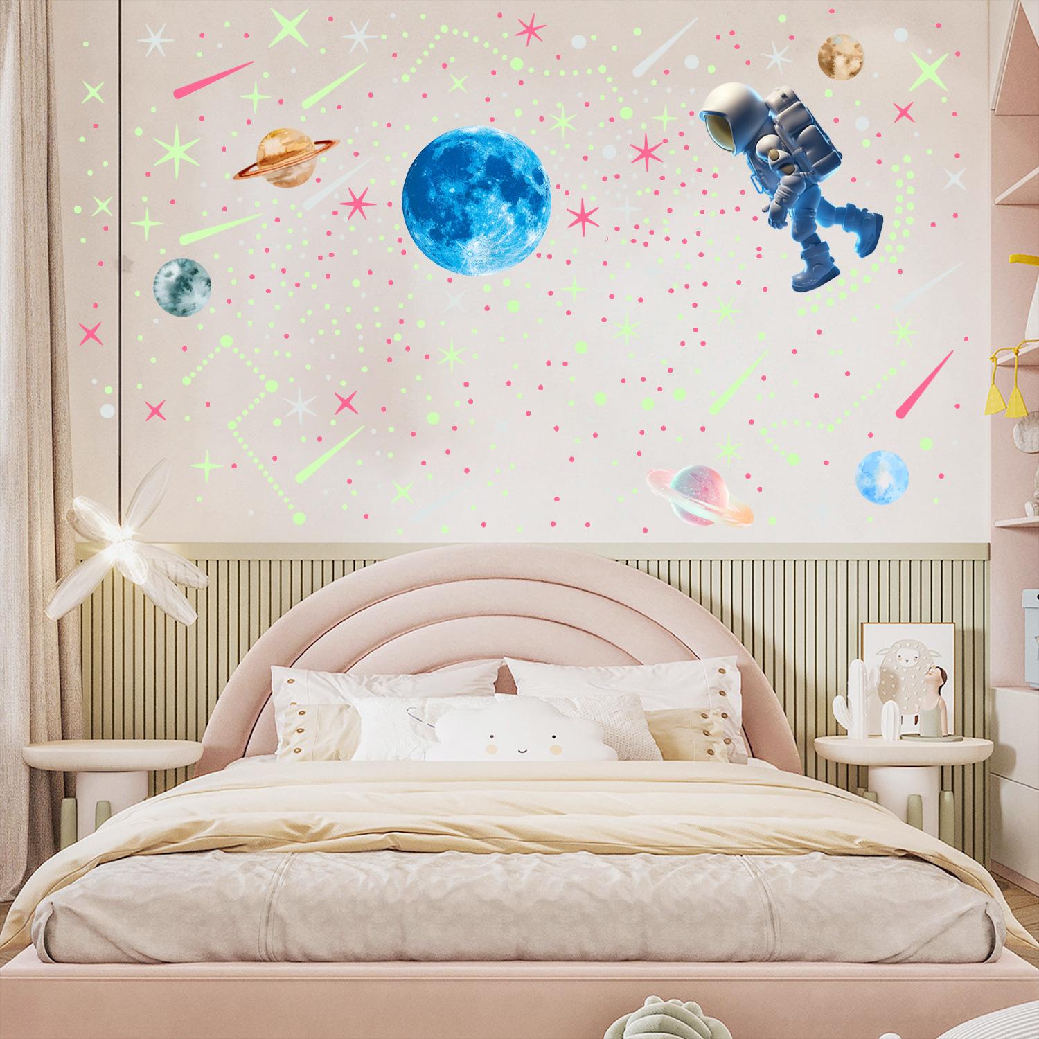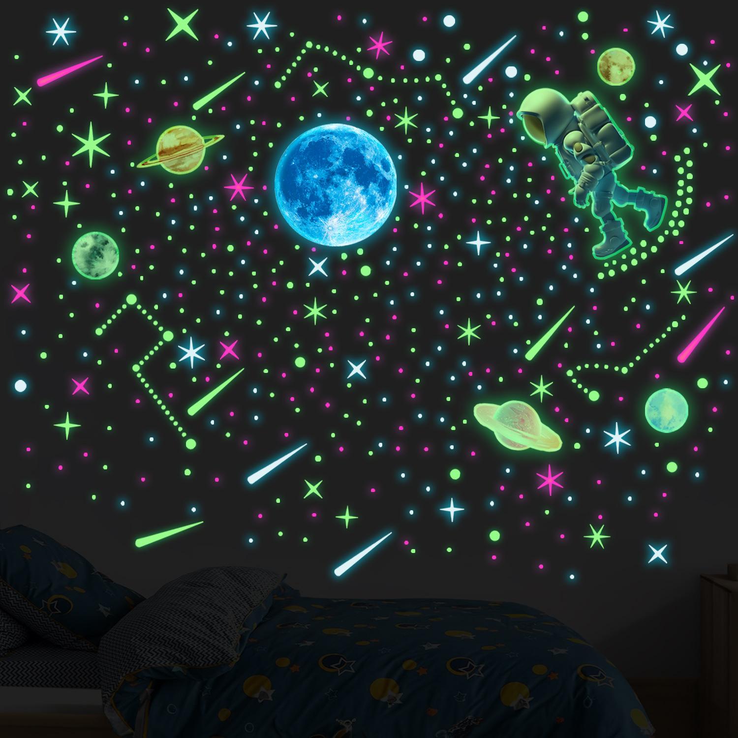 Amazon Comercio Exterior Transfronterizo Luna Luminosa Nueve Planetas Estrellas Noche Pegatinas de Pared Luminosas Pegatinas para la Habitación Familiar