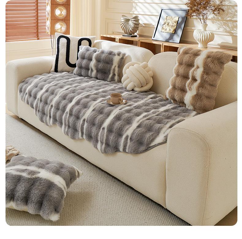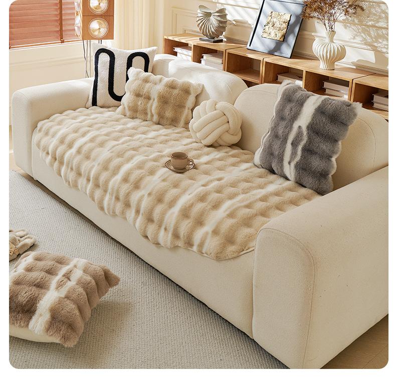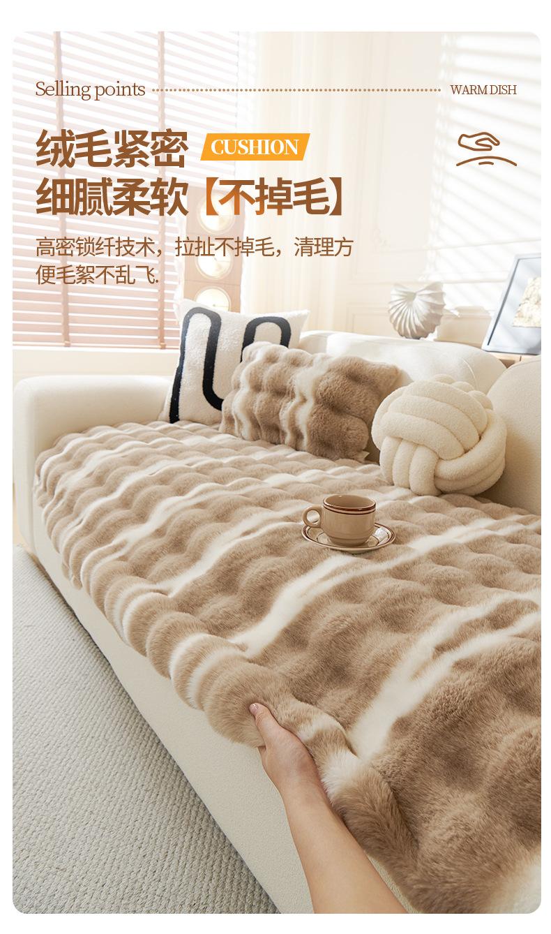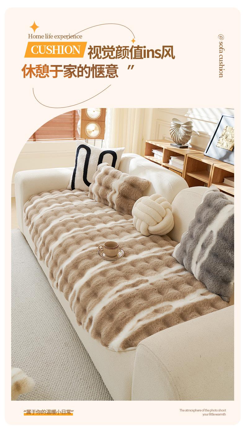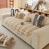 Cojín de sofá de peluche de conejo irregular de forma especial 2025, nuevo cojín de invierno, funda de sofá antideslizante gruesa con borde cruzado