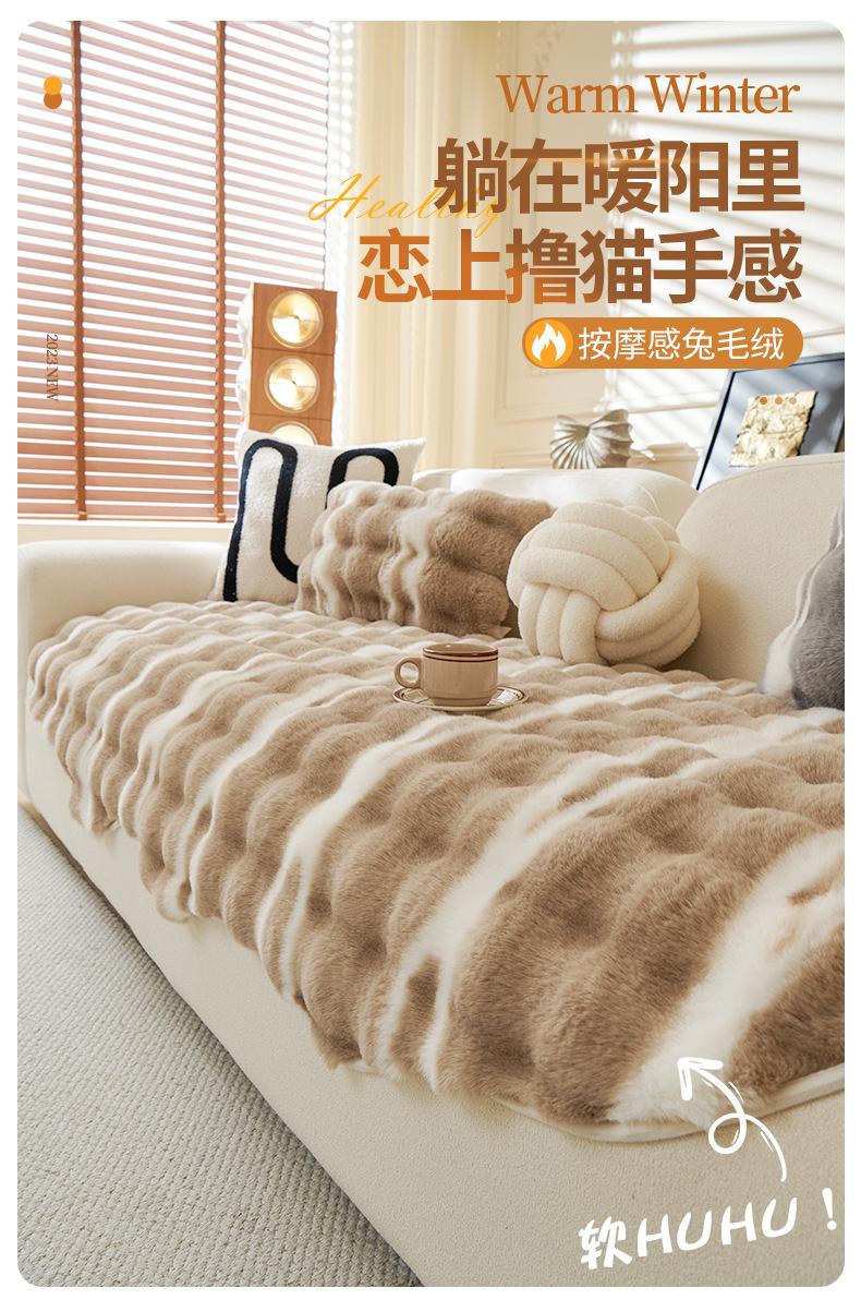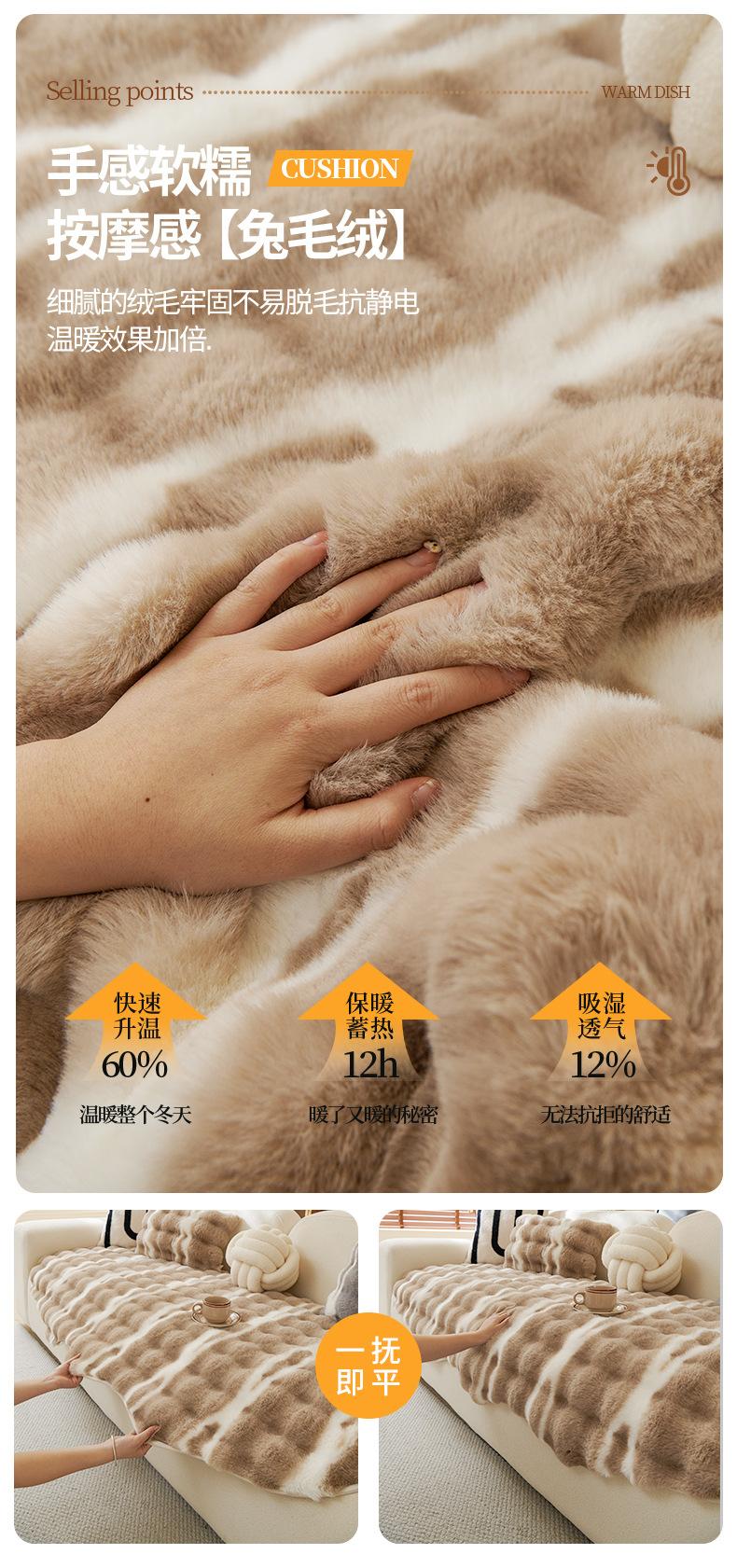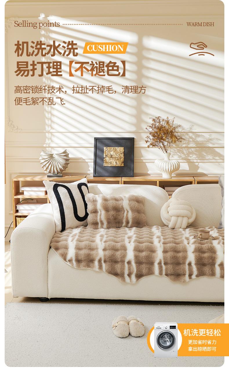 Cojín de sofá de peluche de conejo irregular de forma especial 2025, nuevo cojín de invierno, funda de sofá antideslizante gruesa con borde cruzado