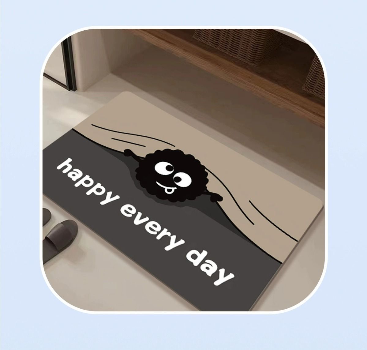 Tapete de Piso de Barro Diatómico de Dibujos Animados para Baño, Tapete Absorbente, Tapete para Puerta de Entrada, Puerta de Baño/Inodoro, Antideslizante, de Secado Rápido, Tapete para Pies