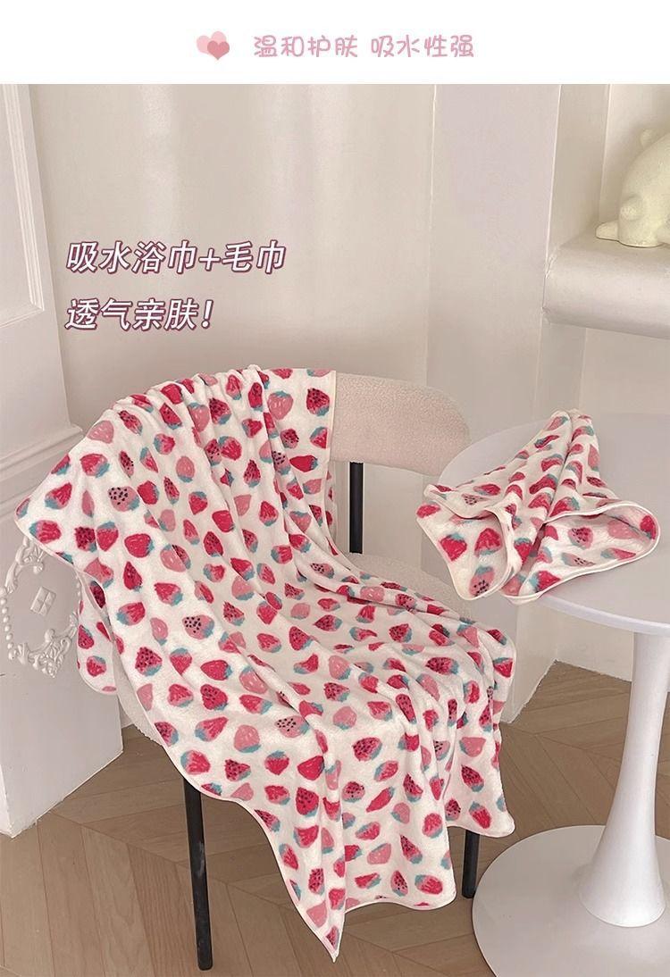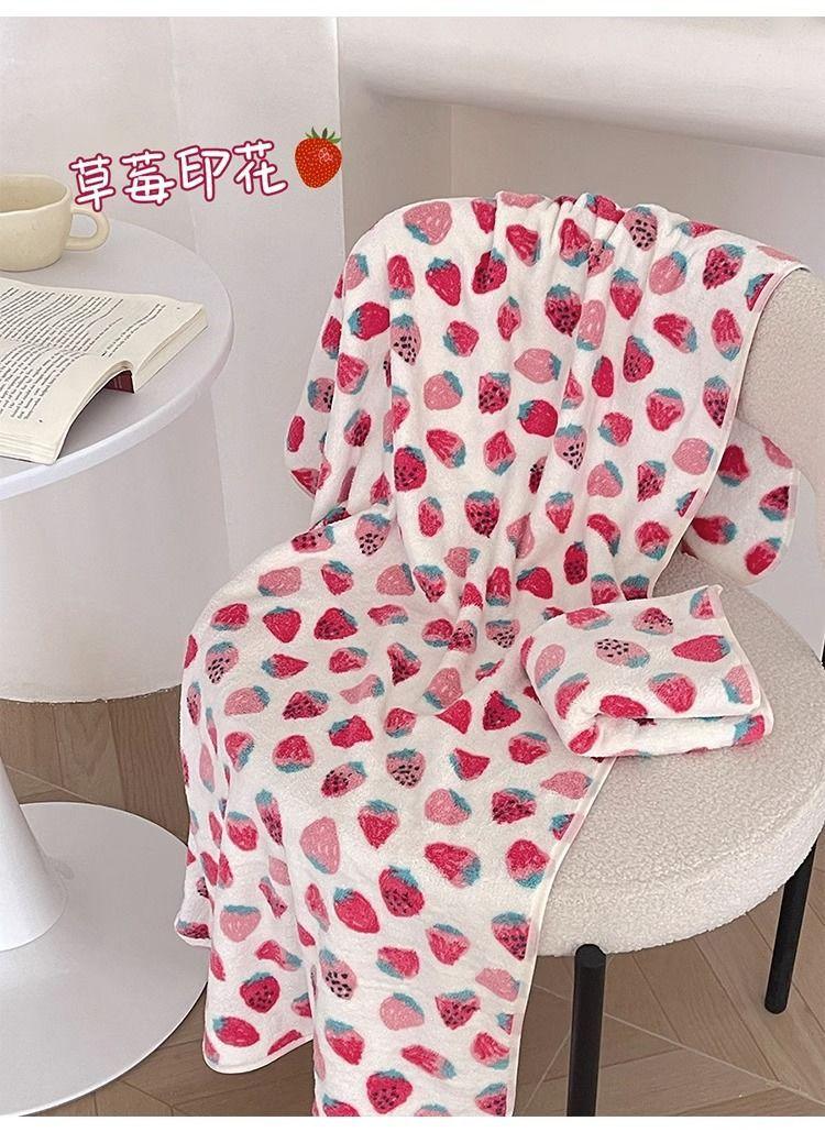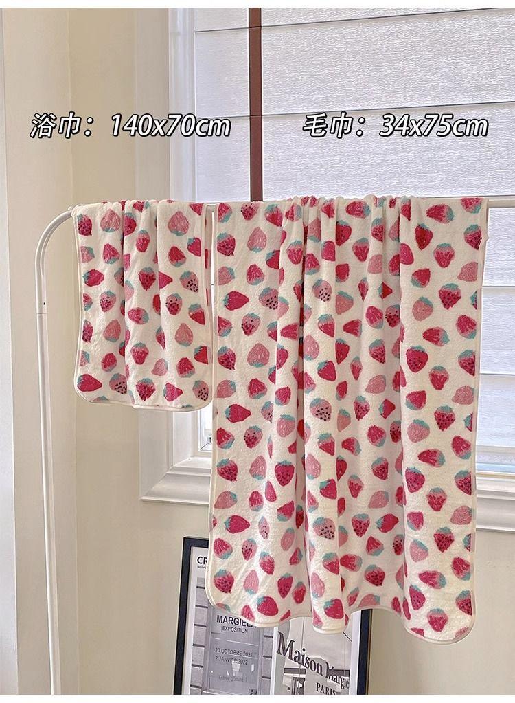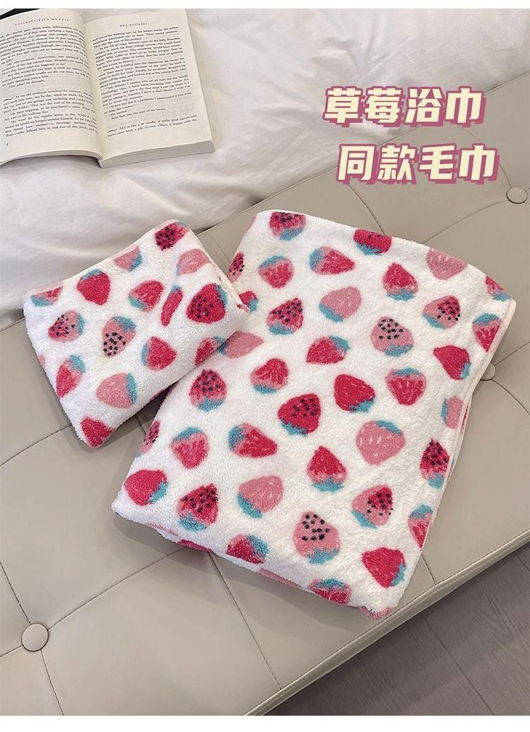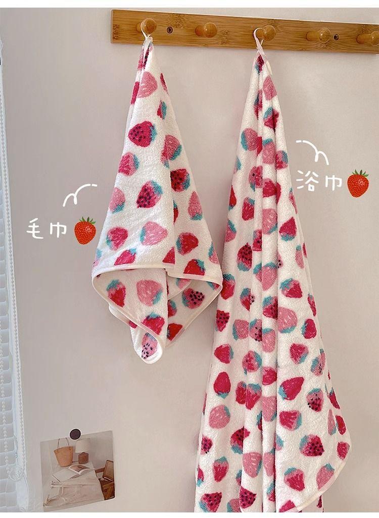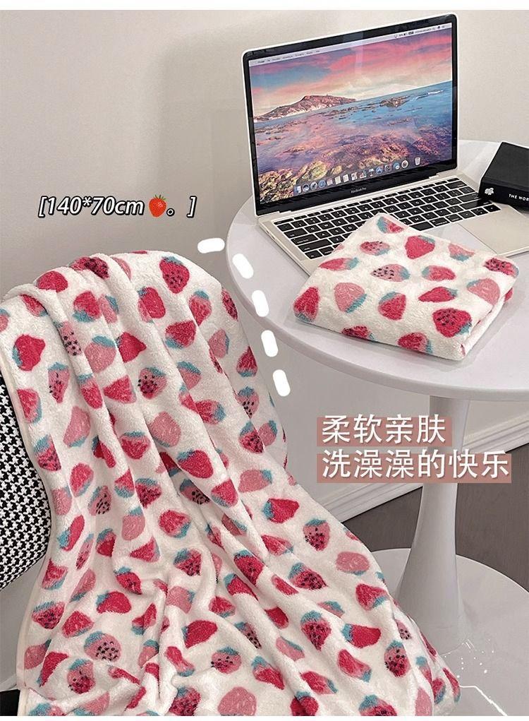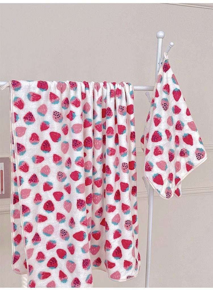 [Selección estricta] Toalla de baño de vellón coral con fresas, estilo ins, nueva y linda, para mujer, toalla grande para el hogar.
