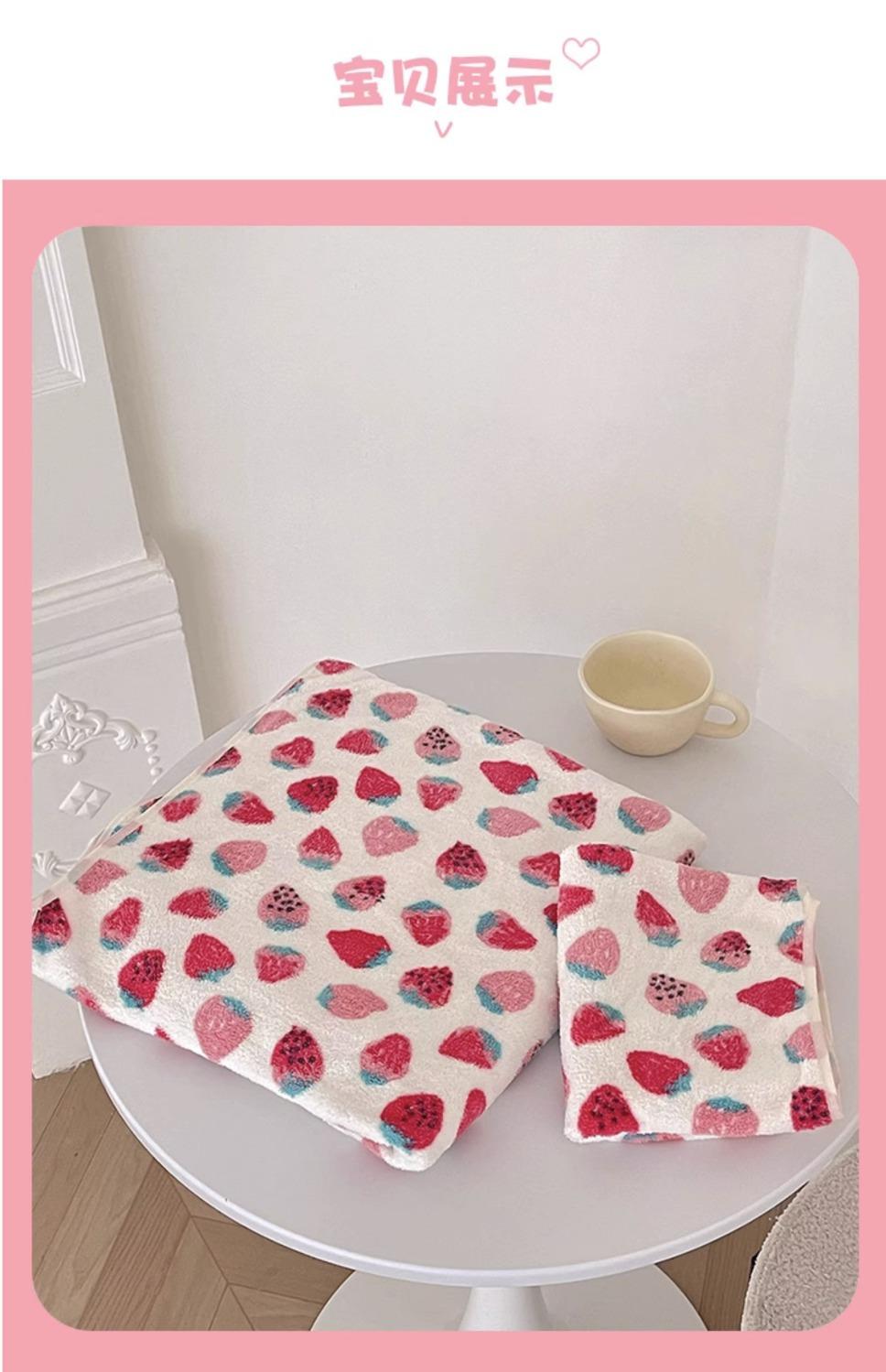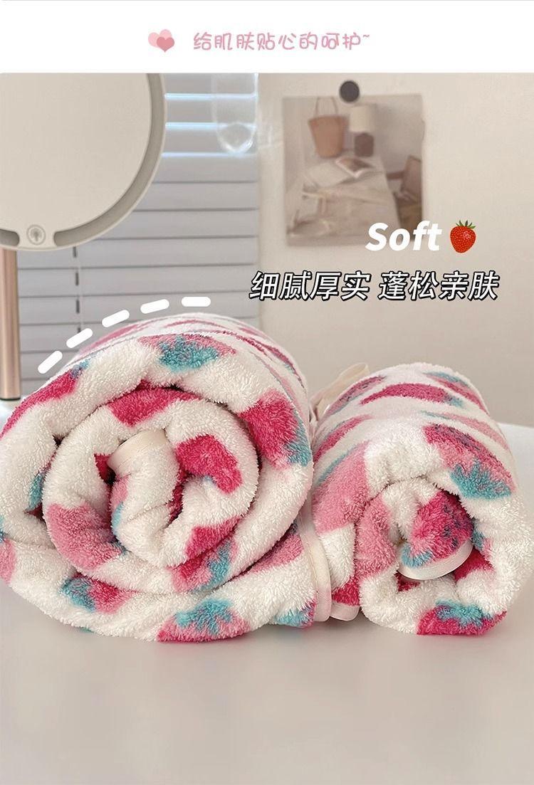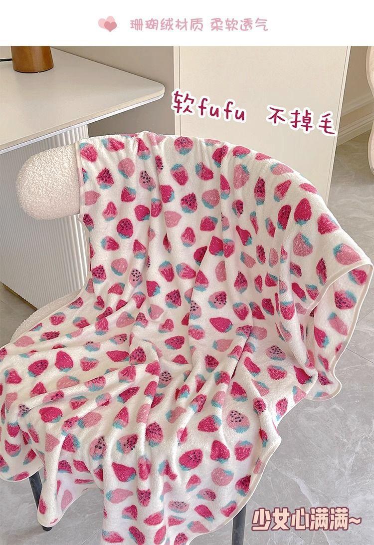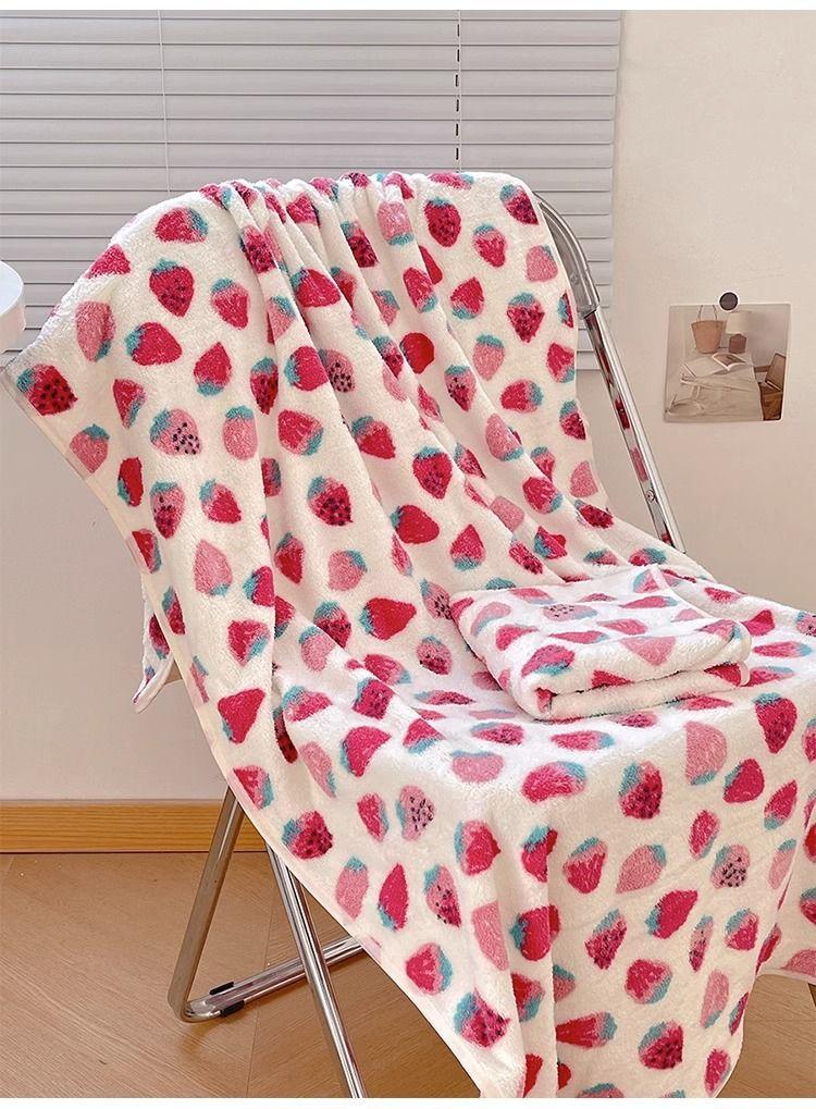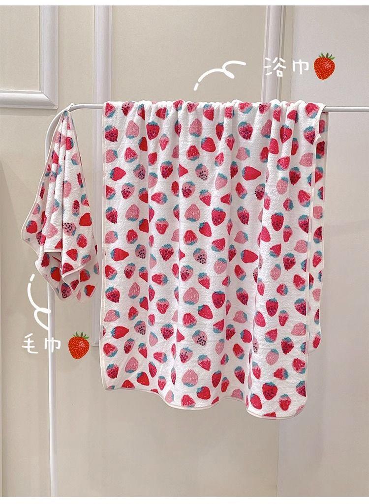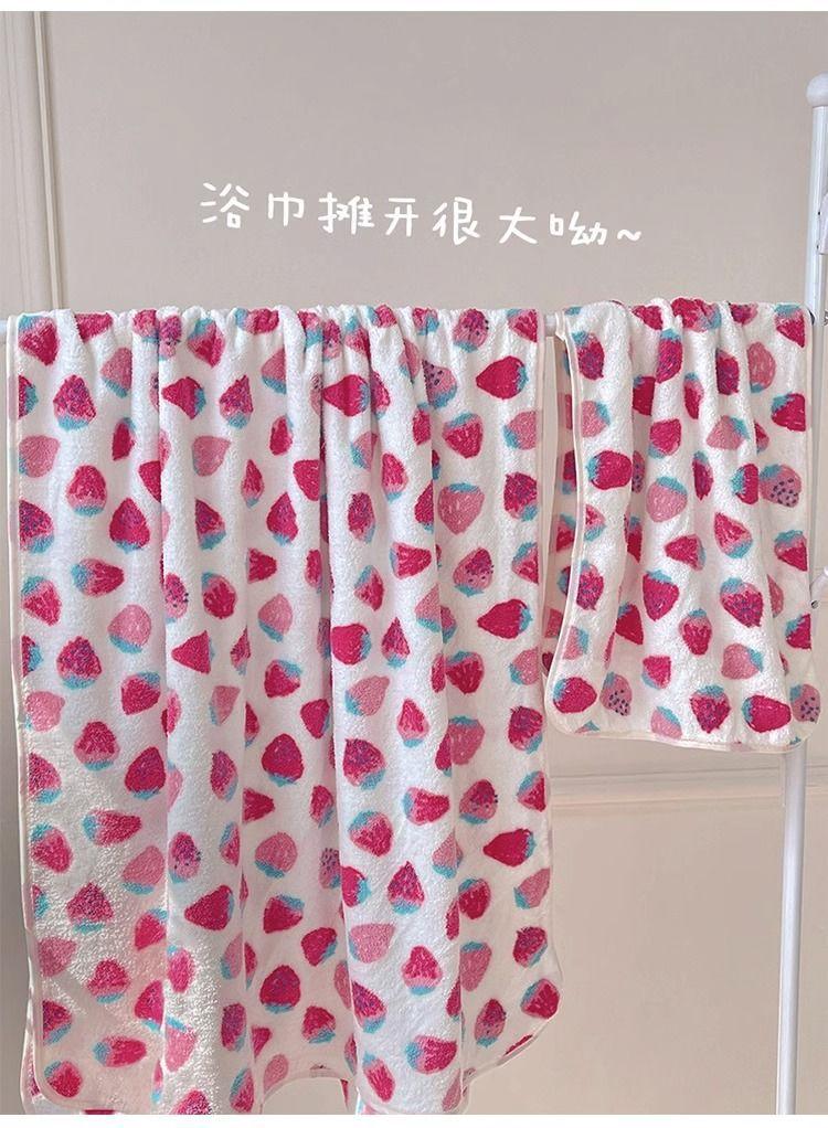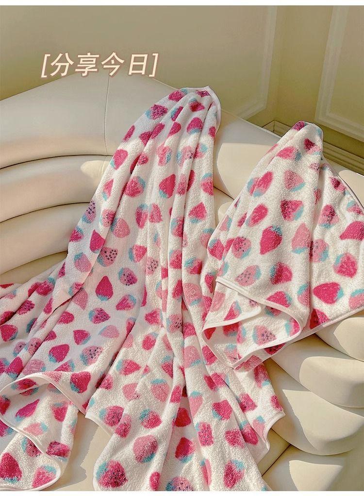 [Selección estricta] Toalla de baño de vellón coral con fresas, estilo ins, nueva y linda, para mujer, toalla grande para el hogar.