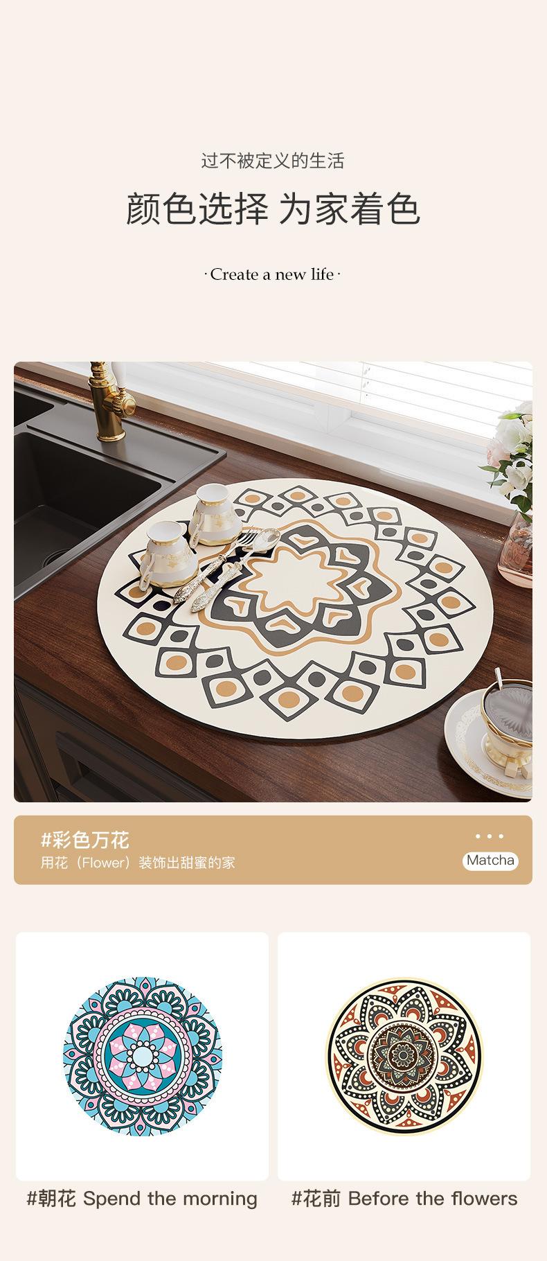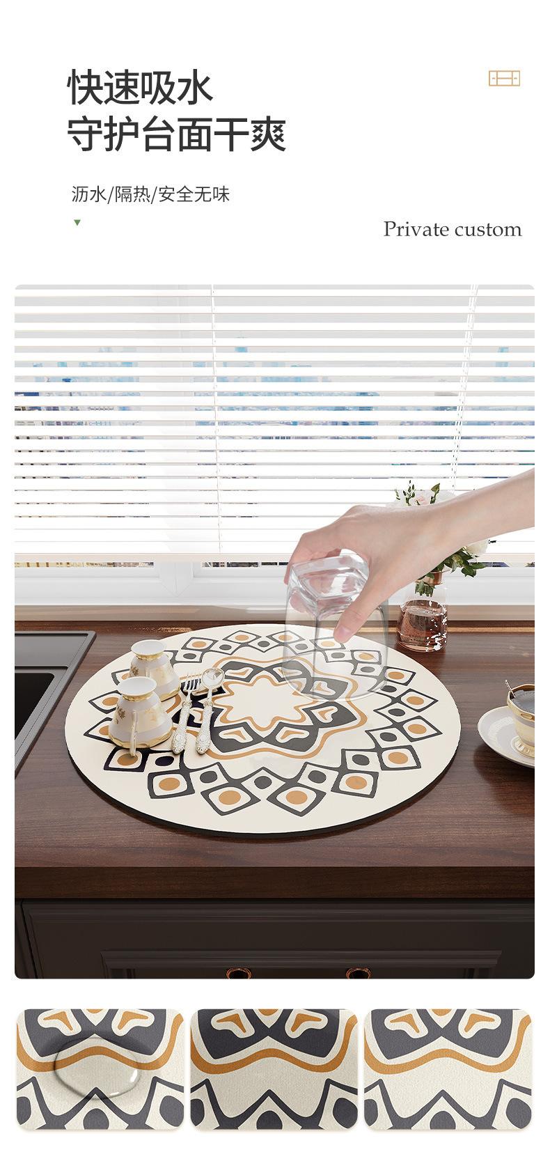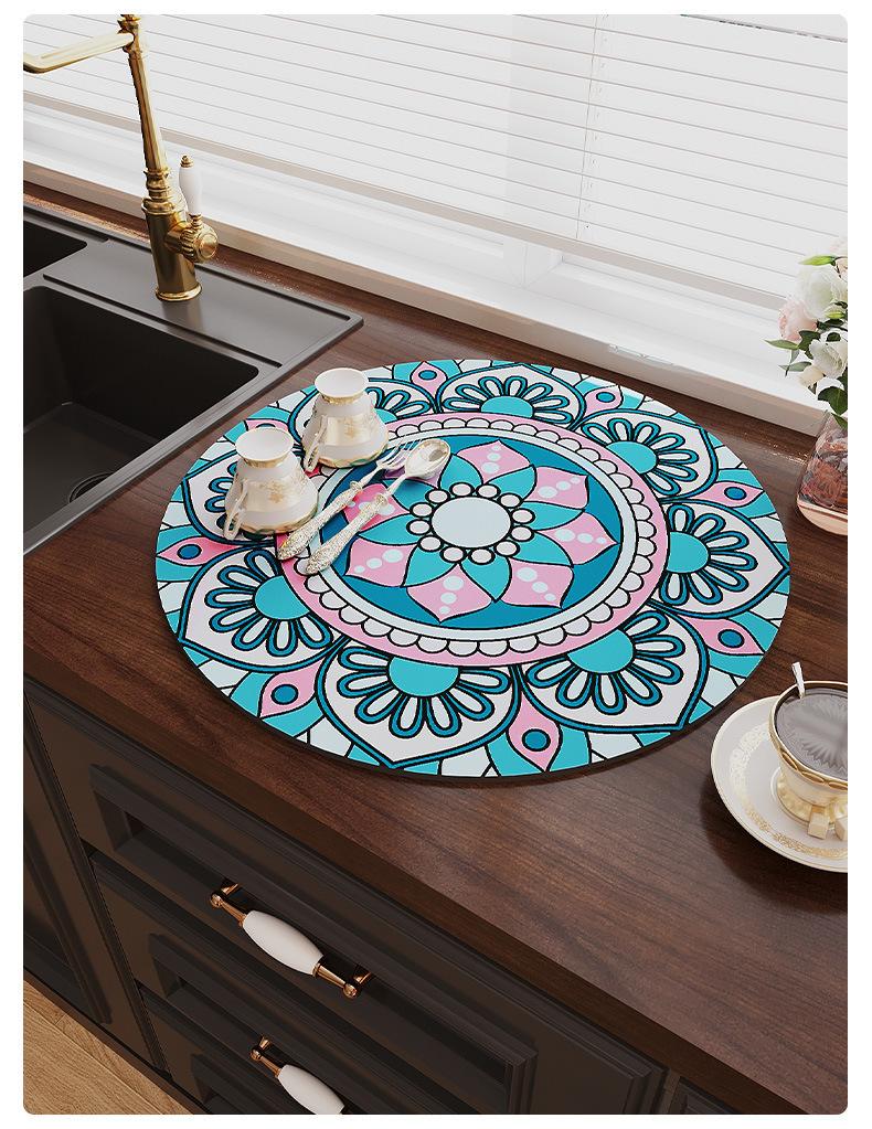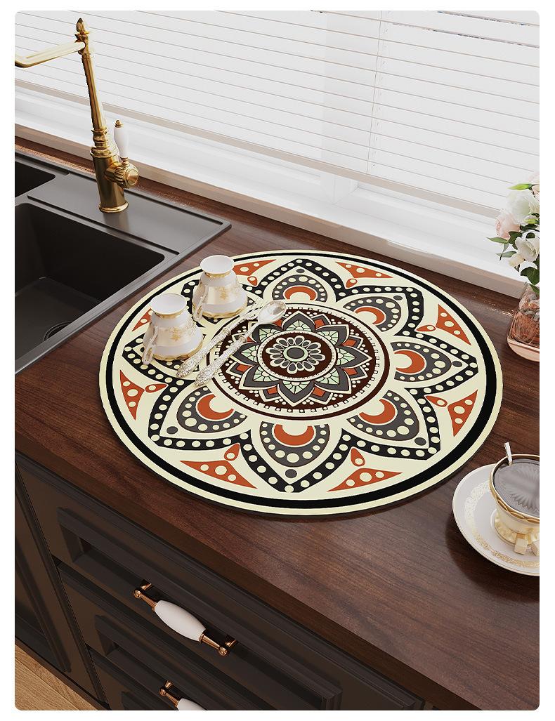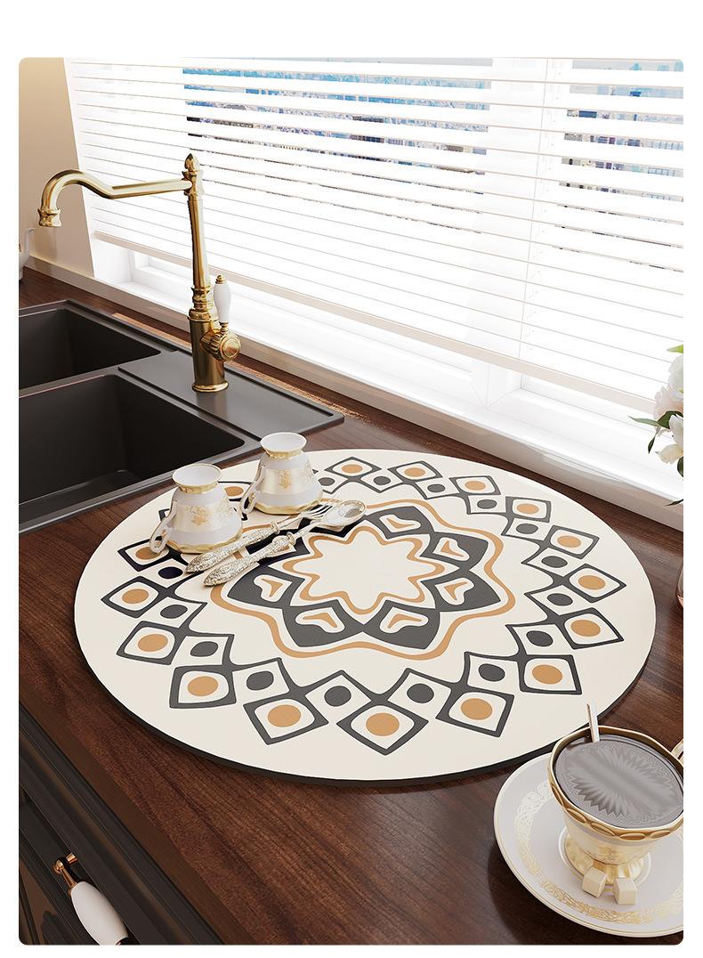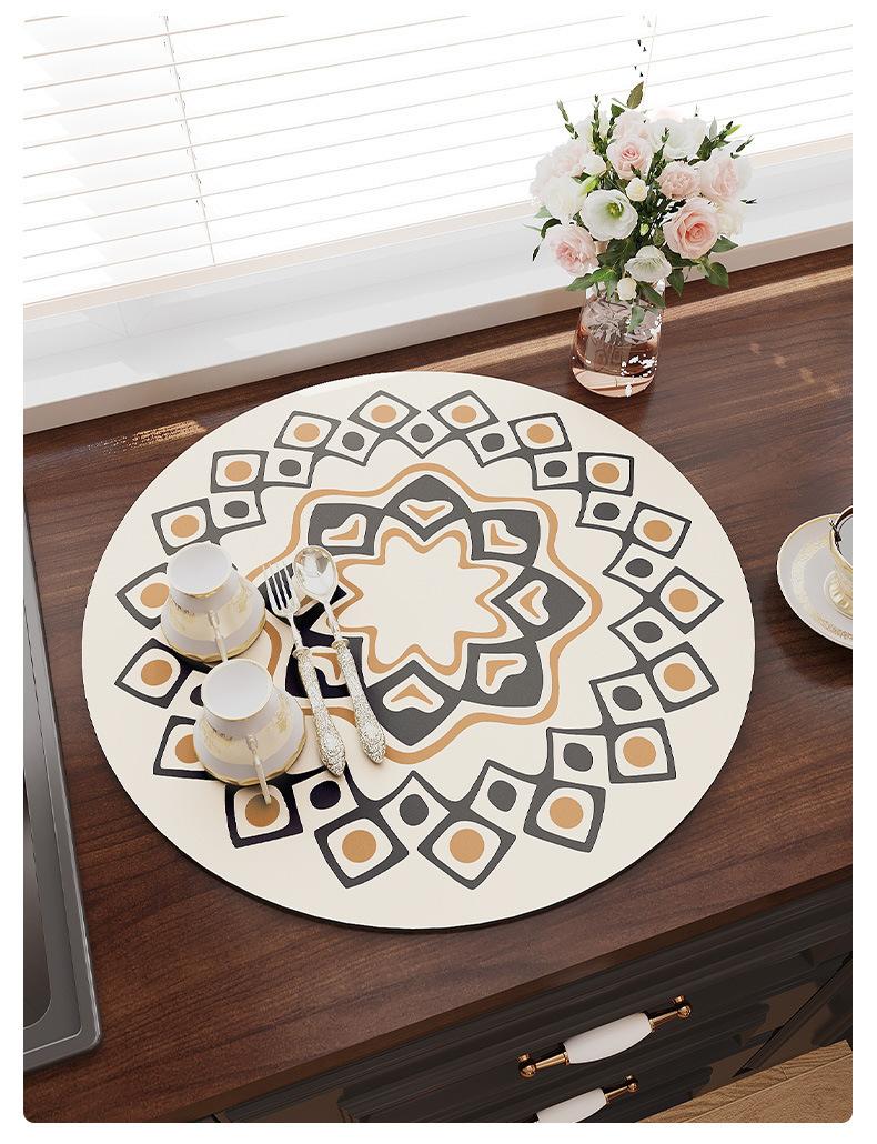 Tapete Escurridor de Cocina Redondo de Tierra de Diatomeas Mesa de Té Barra Encimera Tapete Absorbente Posavasos Tapete para Secar Platos Individual Aislante del Calor