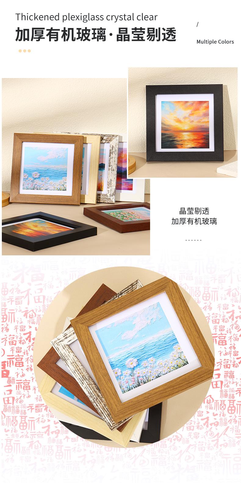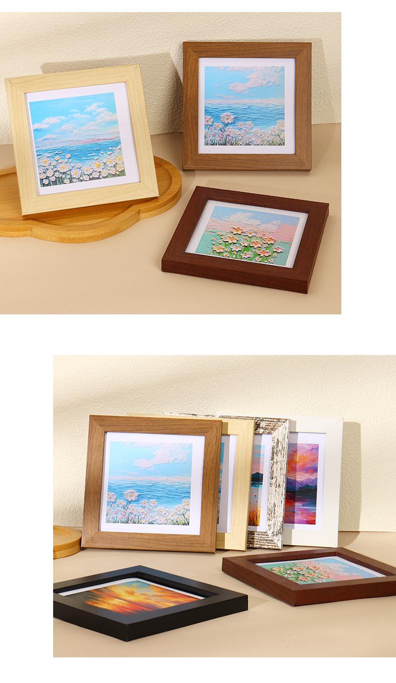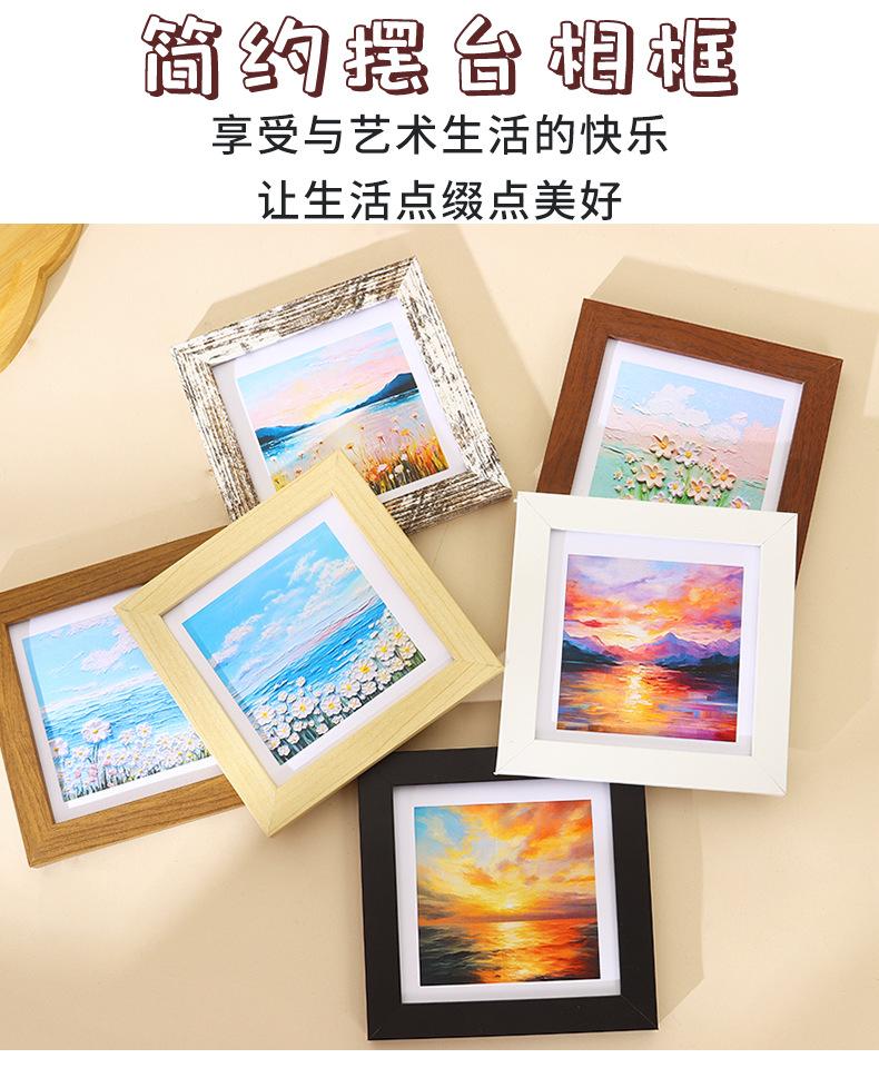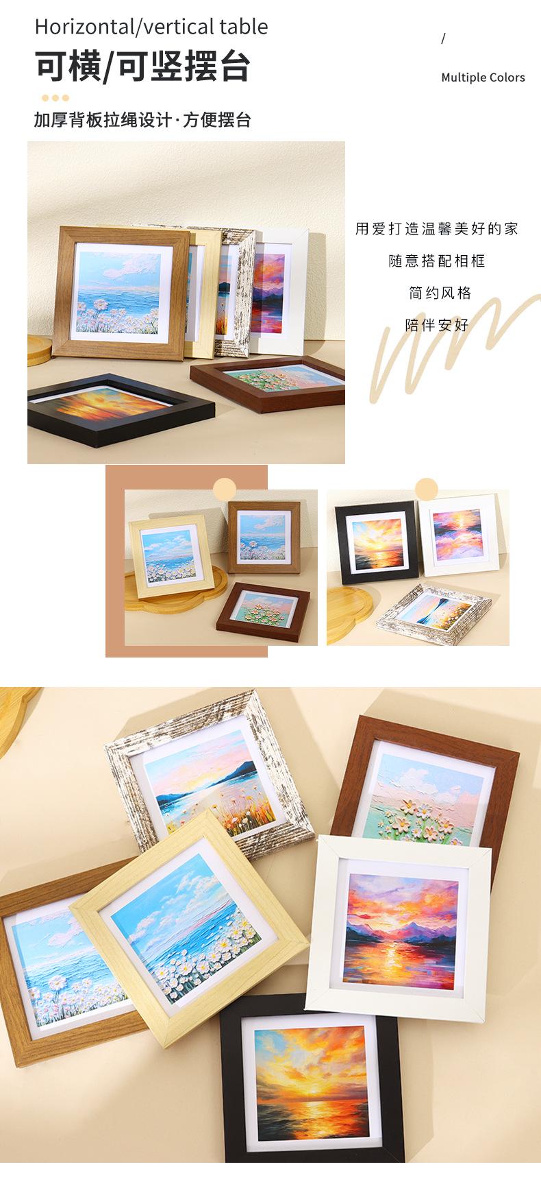 Marco de fotos cuadrado creativo simple de 4 pulgadas, mesa montada, pintura al óleo, palo, álbum de fotos para niños, impresión, marco de fotos al por mayor
