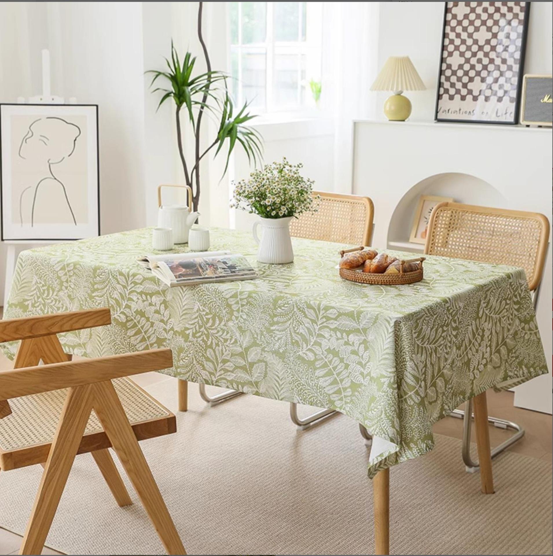 Tela para Mantel Algodón Lino Estilo Japonés Impermeable y a Prueba de Aceite No Lavable Estilo Fresco Mantel Floral Mesa de Centro Hogar Mesa Rectangular