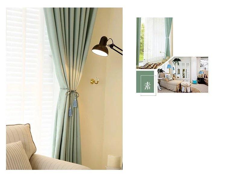 Cortina de suelo de terciopelo de imitación de lino y color liso, moderna y sencilla, directa de fábrica, para sala de estar, dormitorio, balcón