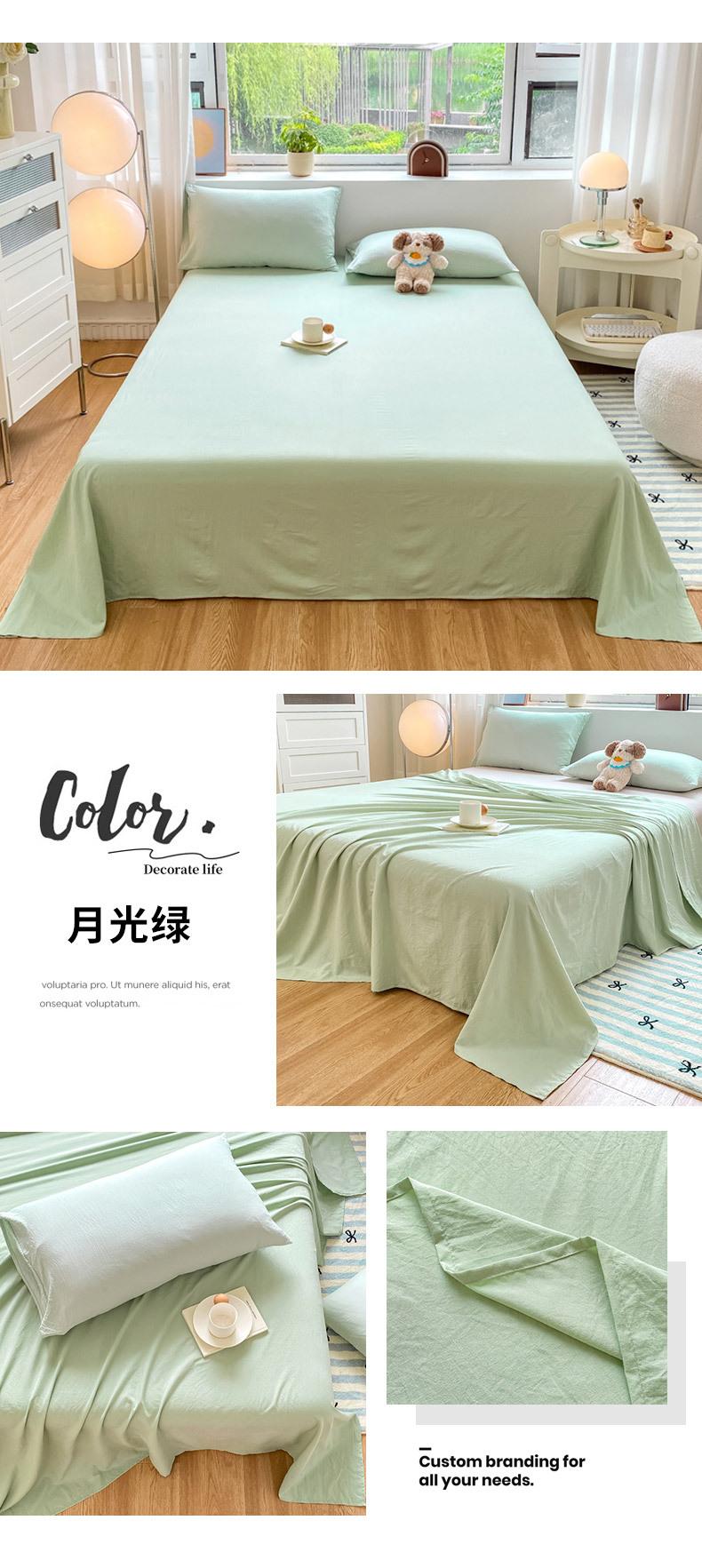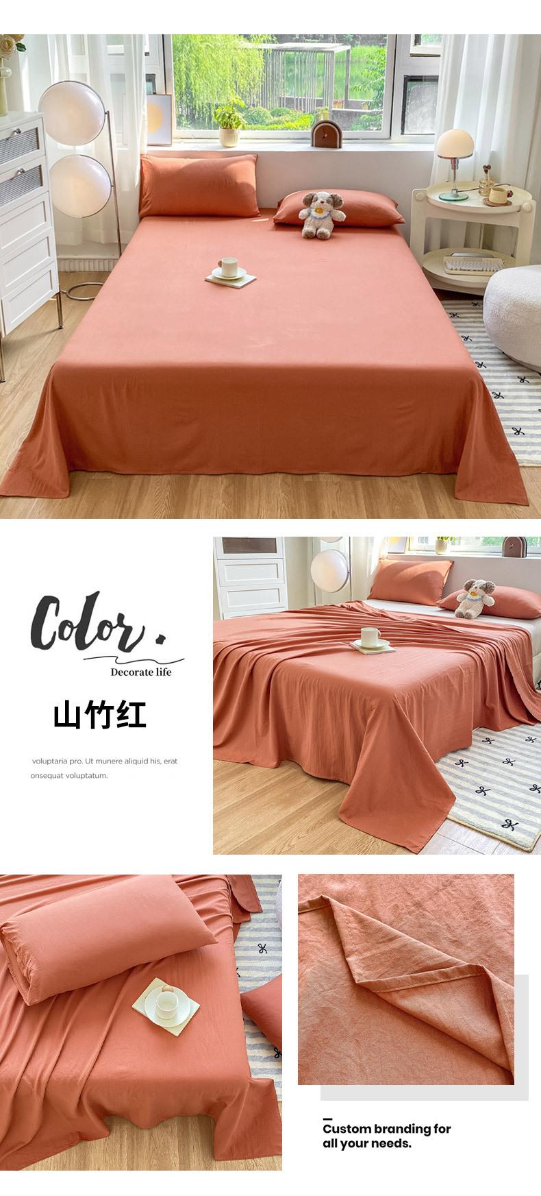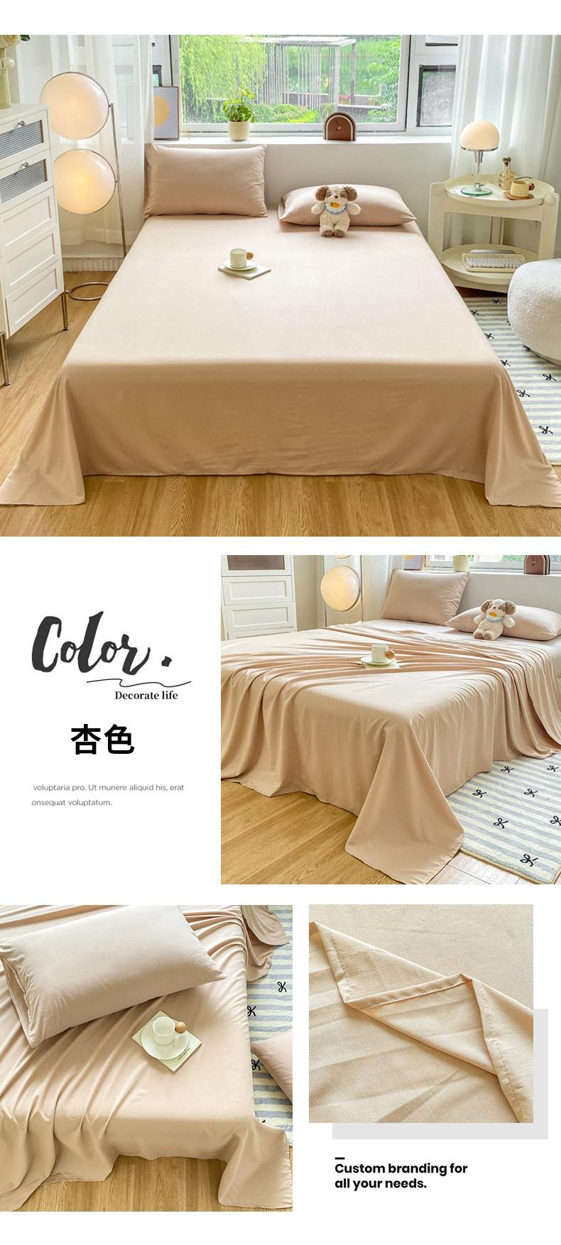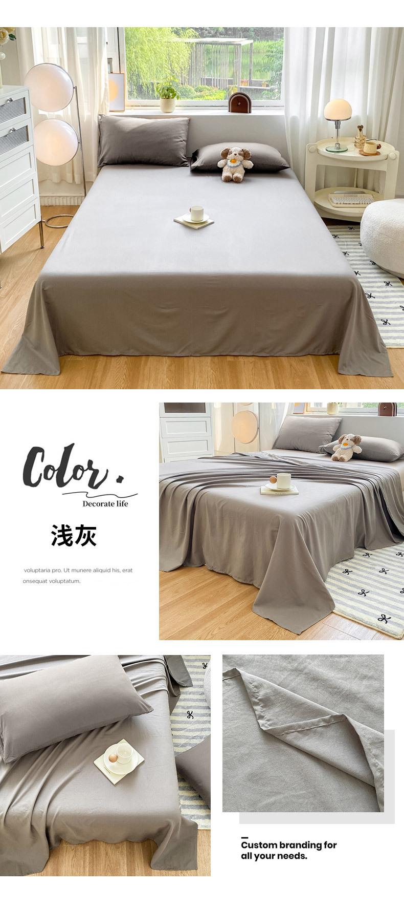Estilo Ins Super Suave Algodón Lavado Cama Individual Color Puro Algodón Puro Estilo Japonés Simple Cama Dormitorio Estudiantil Juego de Tres Piezas Sábana Funda de Almohada