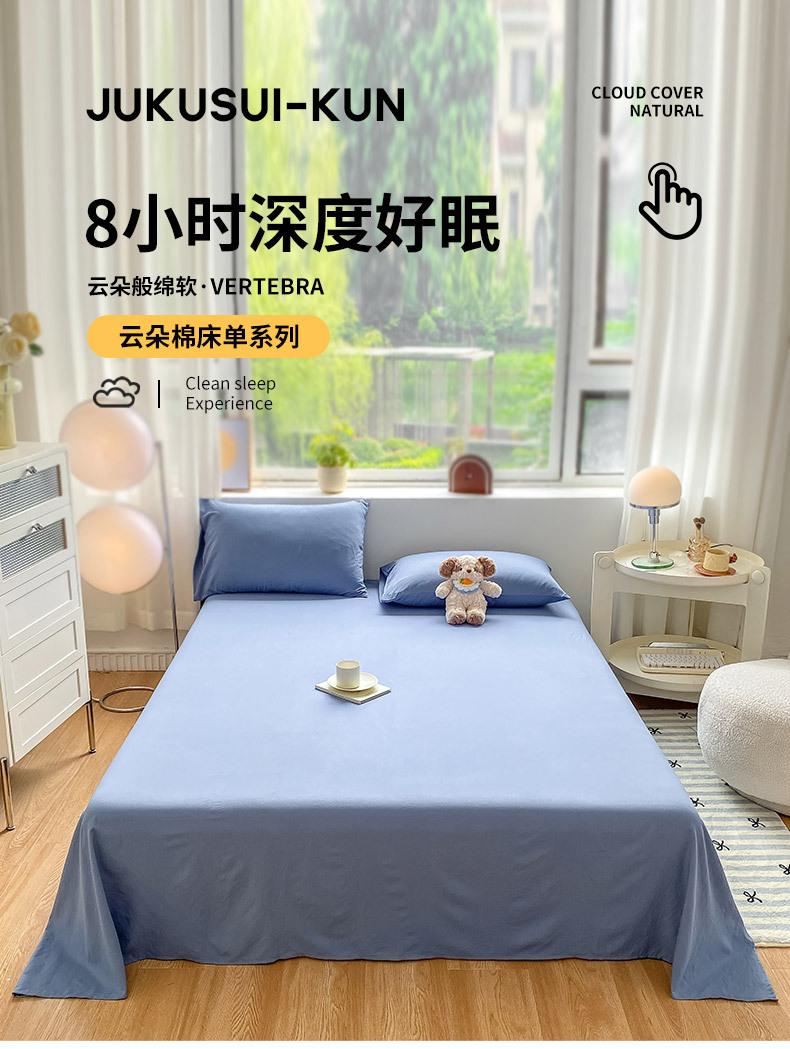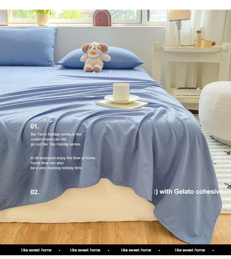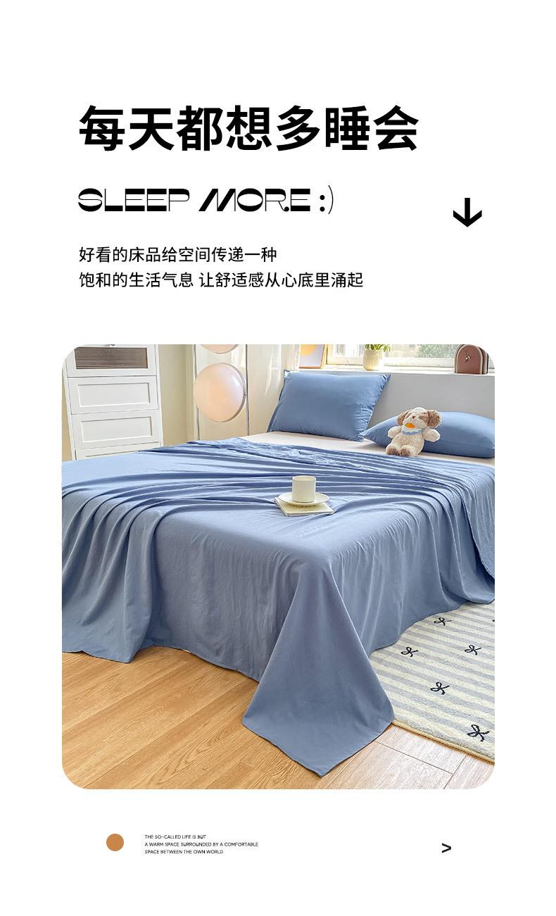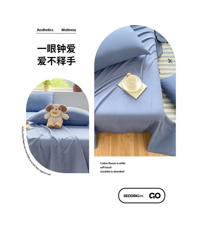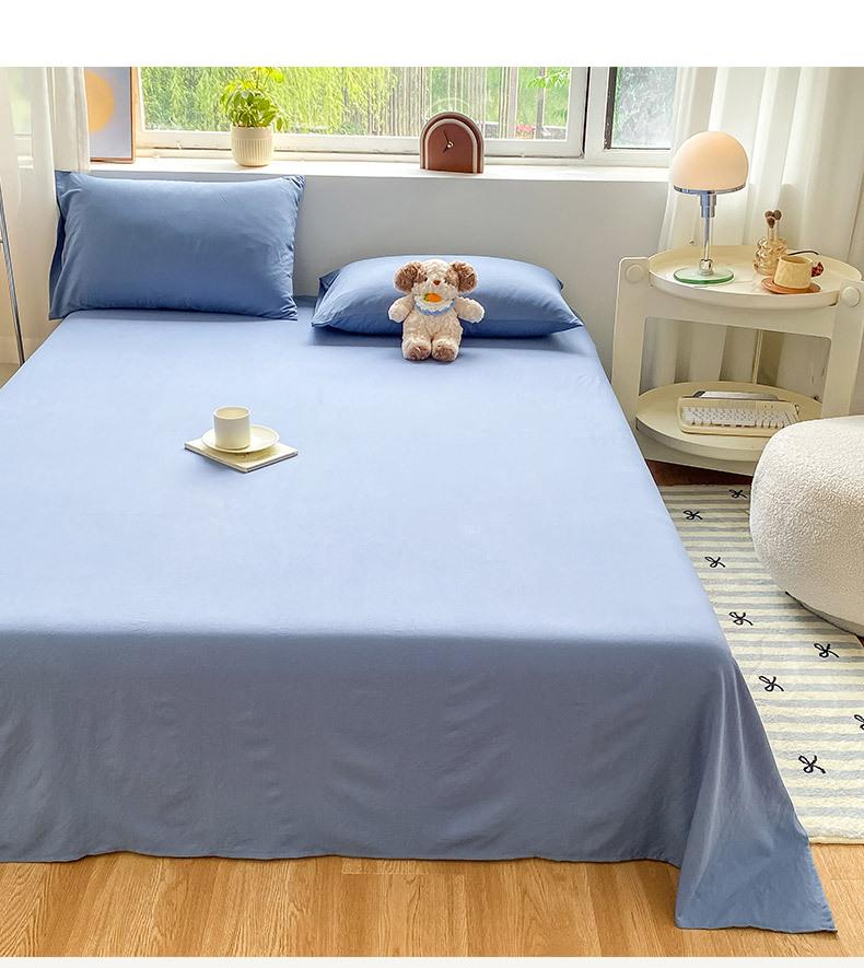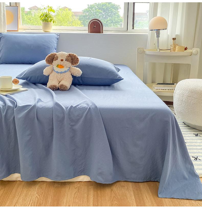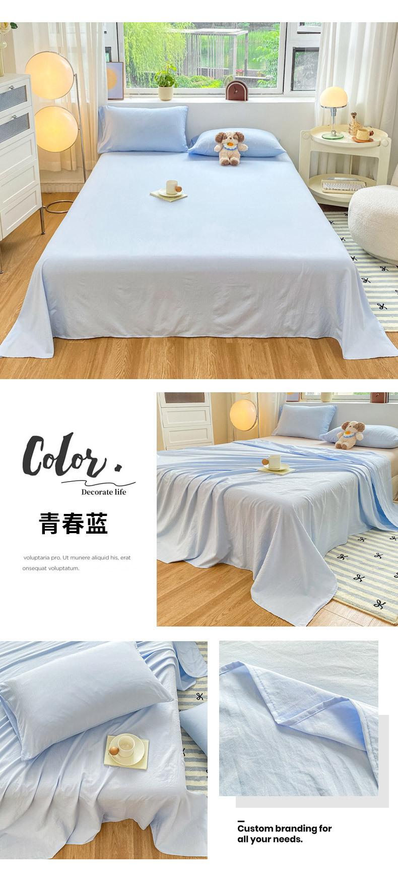 Estilo Ins Super Suave Algodón Lavado Cama Individual Color Puro Algodón Puro Estilo Japonés Simple Cama Dormitorio Estudiantil Juego de Tres Piezas Sábana Funda de Almohada