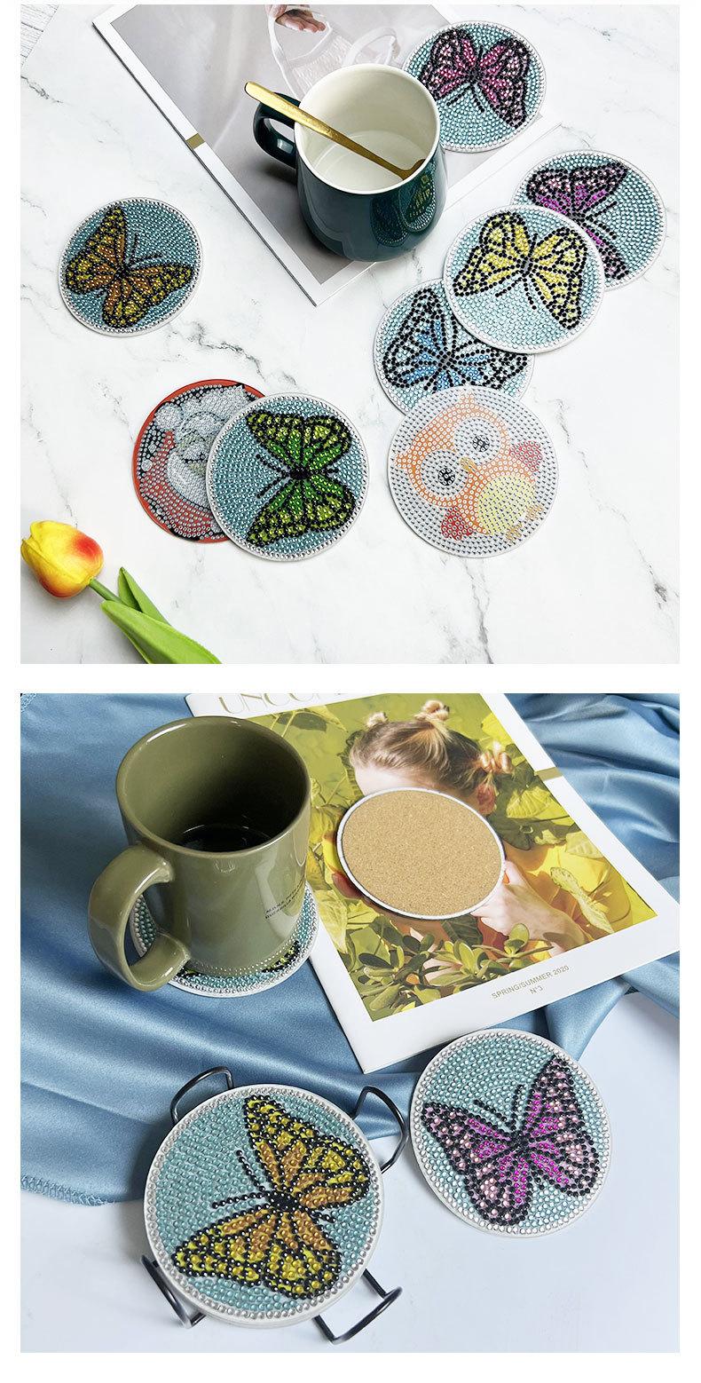 Posavasos con pintura acrílica de diamante, diseño de dibujos animados, hecho a mano, para taza de té, aislante térmico, Amazon Cross-border