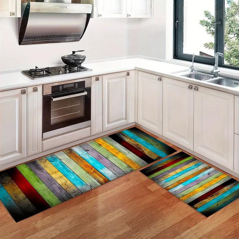 Tapete de Piso Retro Americano Juego de Tiras para Cocina Tapete para Puerta de Entrada Doméstico Resistente a las Manchas, a Prueba de Aceite, Absorbente de Agua y Antideslizante