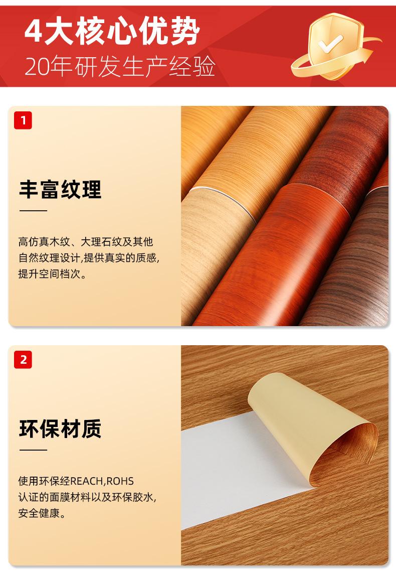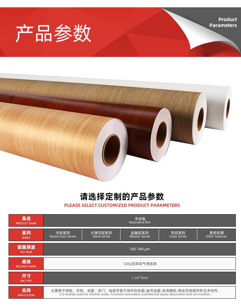 Wood grain series, Marbled series, Metal pattern series, Fabric series, Solid color series, Other series