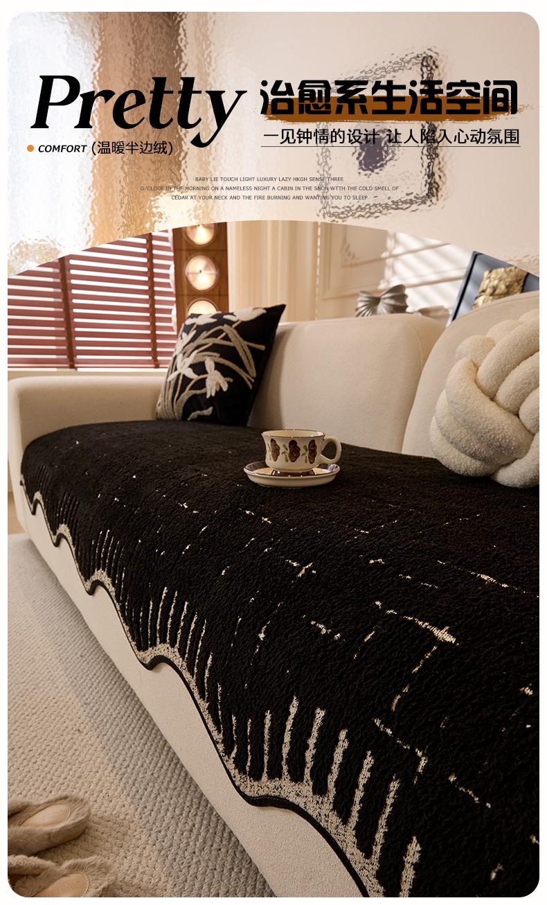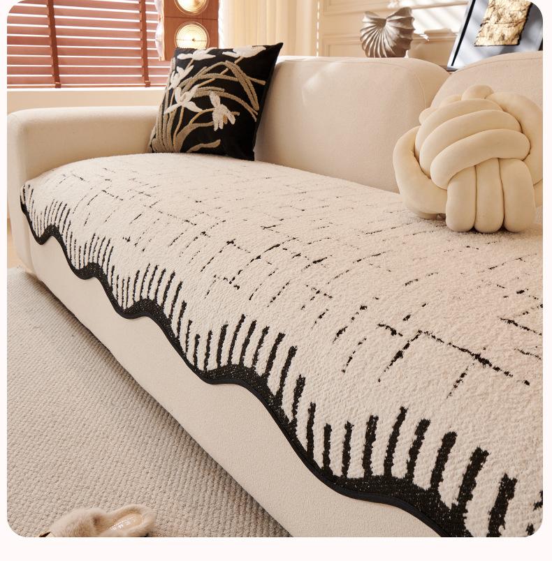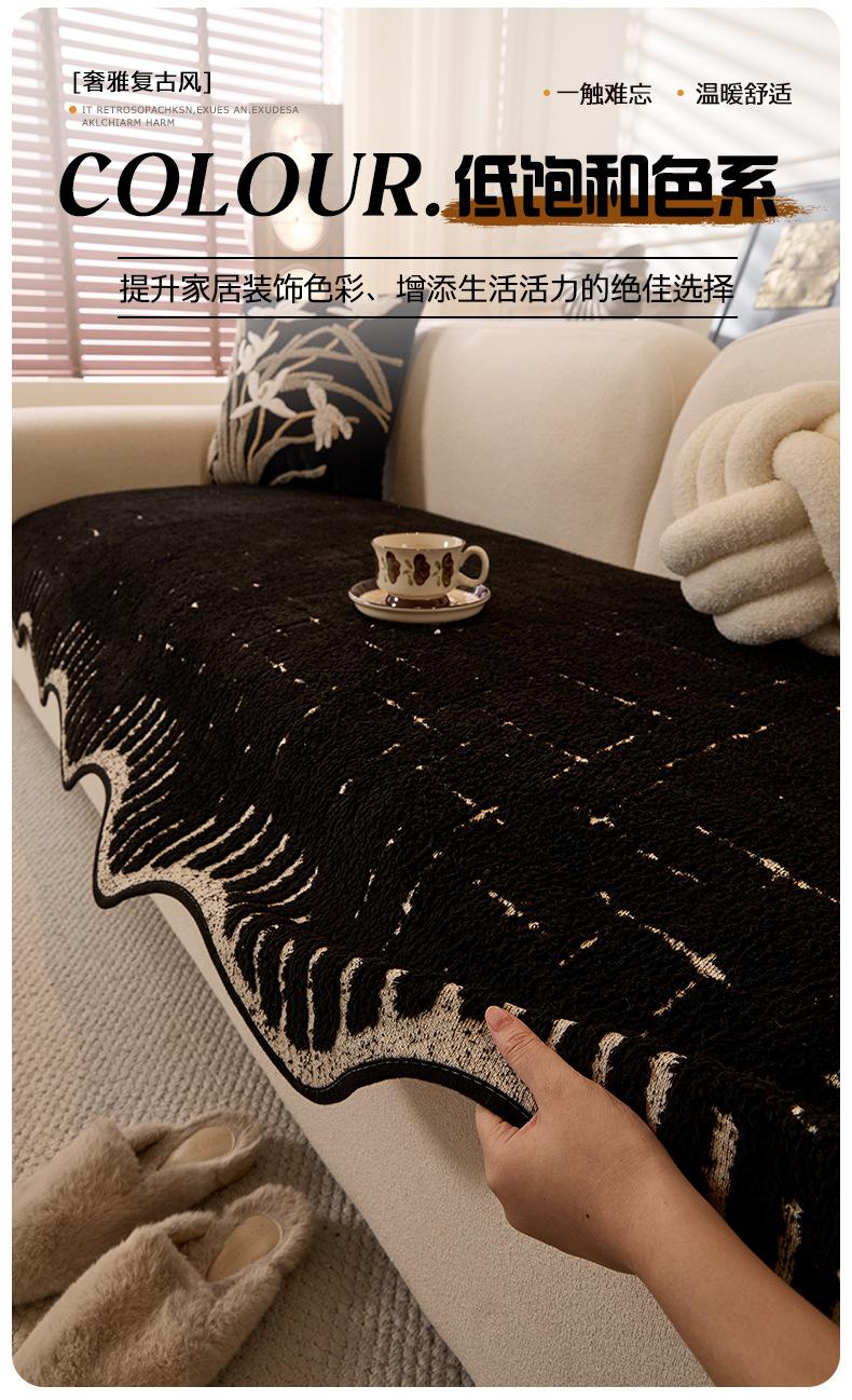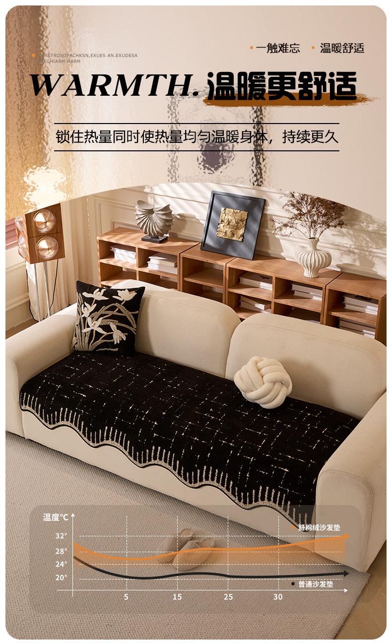 Cojín de Sofá de Alta Gama con Forma Especial Otoño e Invierno 2025 Nuevo Fila Recta Una Pieza Antideslizante Felpa Cojín de Asiento Exclusivo Transfronterizo