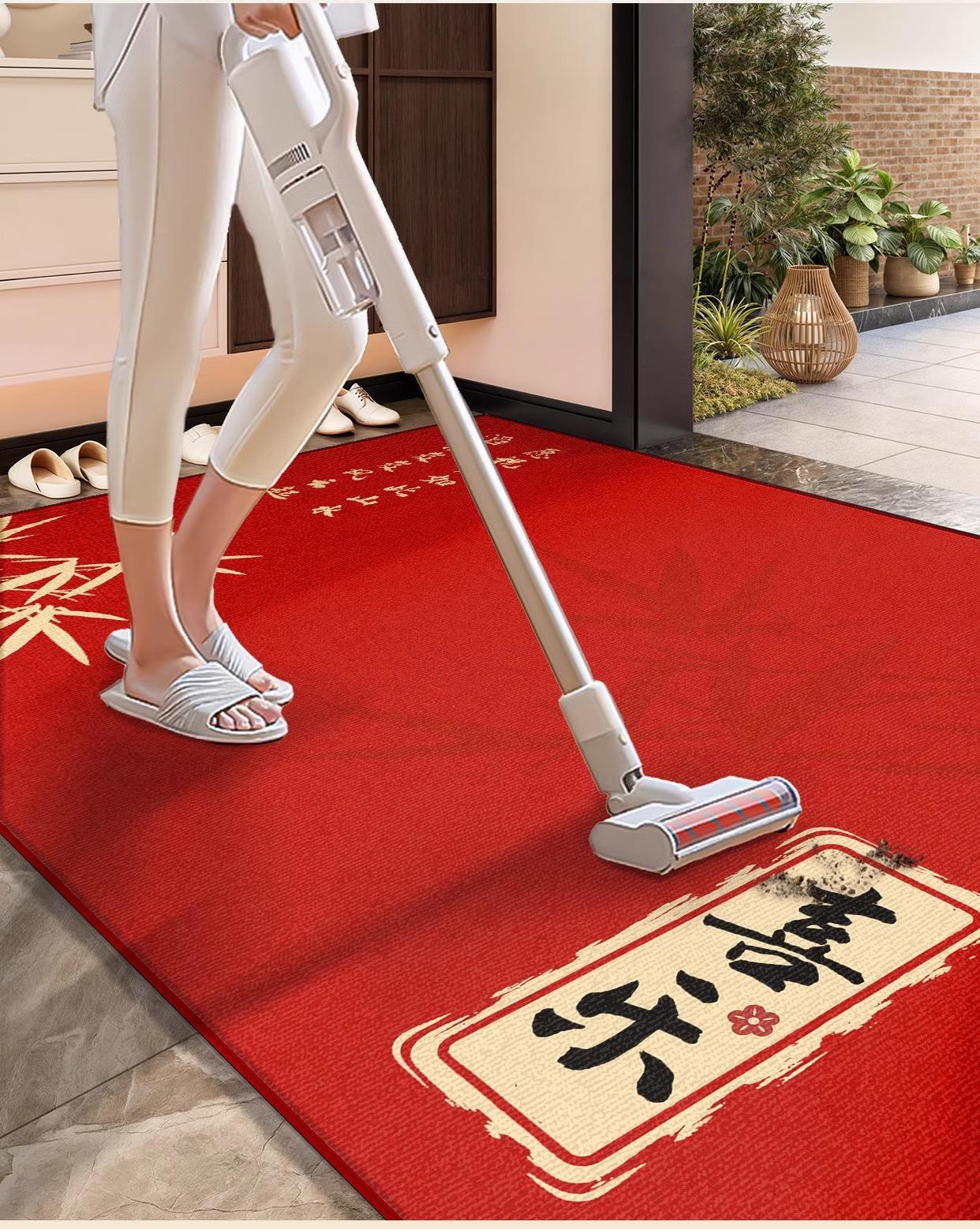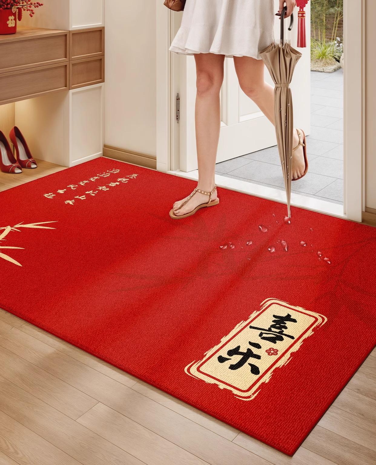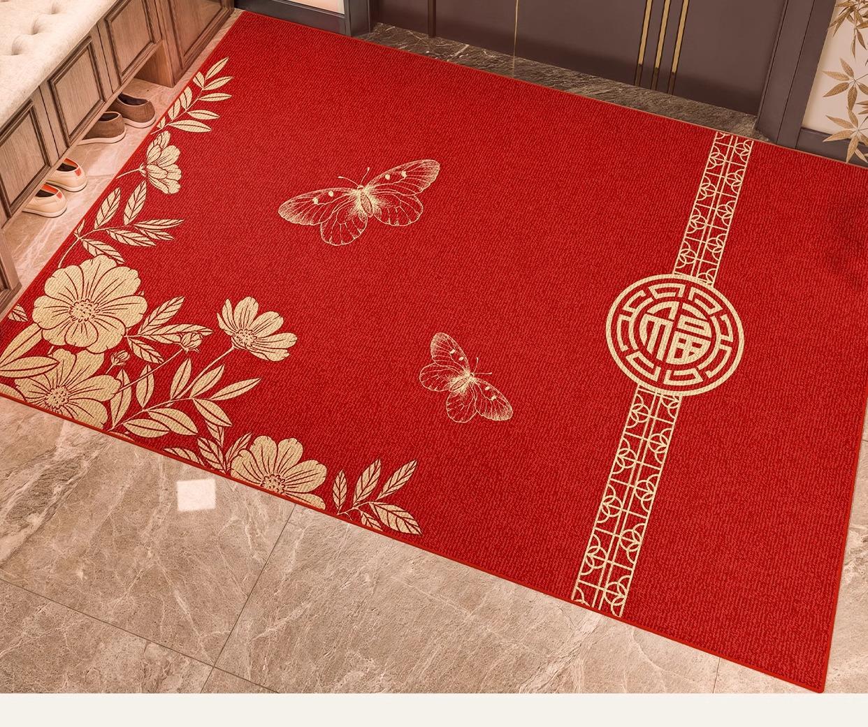 Felpudo para el hogar, alfombra para puerta, antideslizante, resistente a la suciedad, sin lavar, para puerta exterior, rojo, para entrada, Año Nuevo