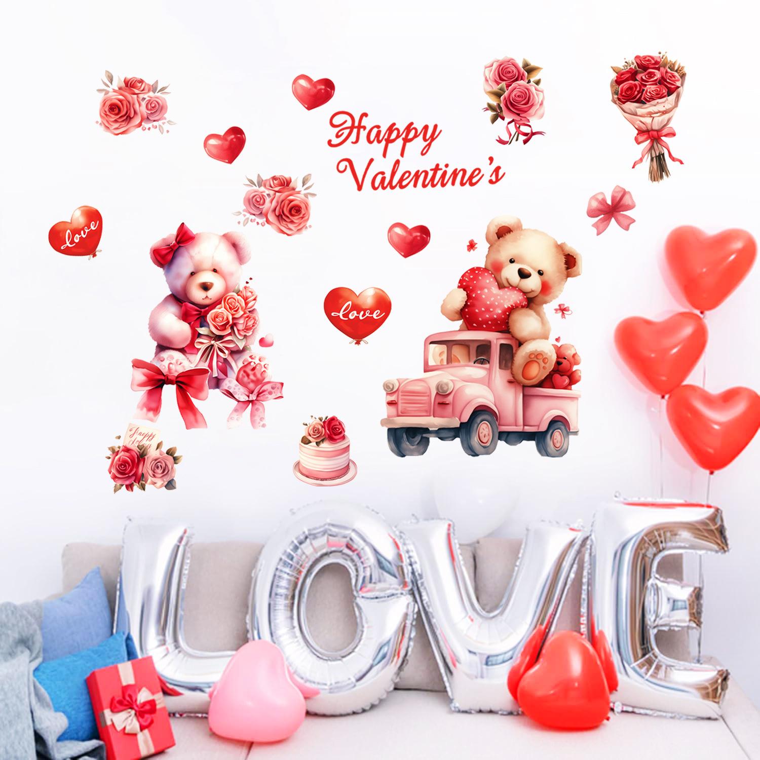 Transfronterizo Amazon Comercio Exterior Día de San Valentín Amor Oso Pegatinas de Globos Sala Familiar Sala de Estar Pegatinas de Decoración Venta al por Mayor