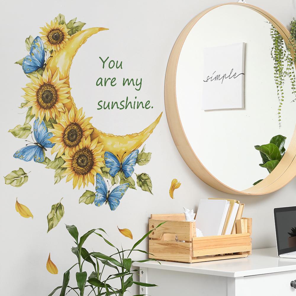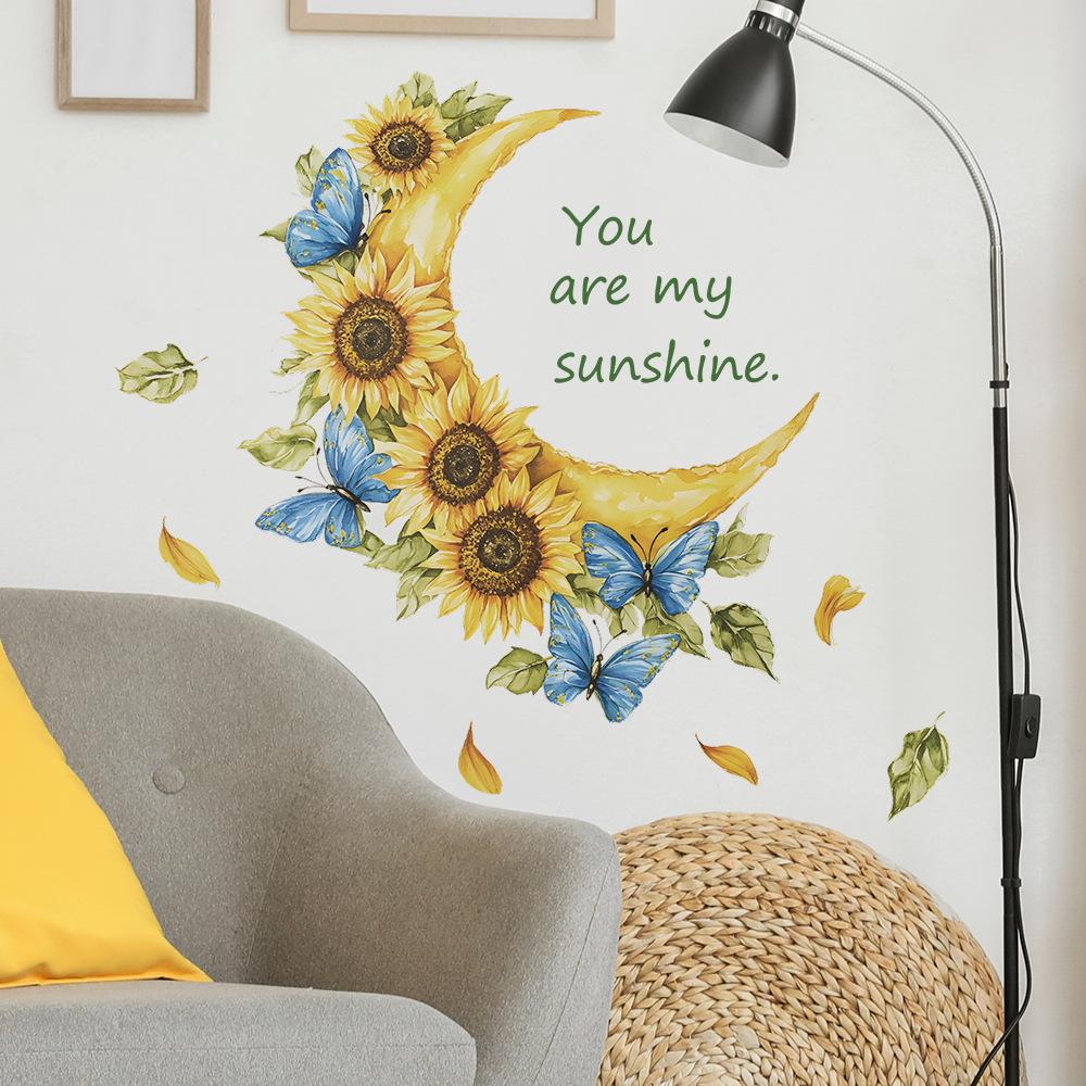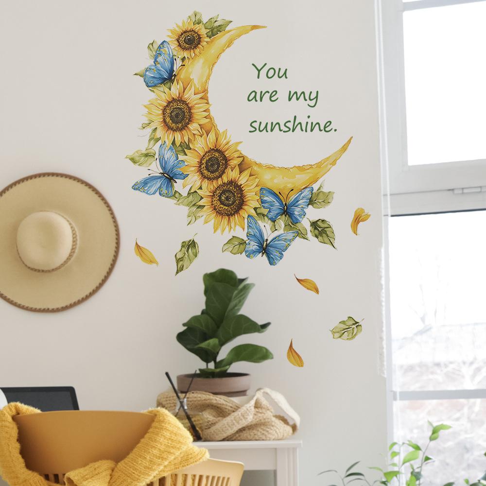 Comercio exterior mariposa luna girasol dormitorio sala de estar entrada dormitorio decoración del hogar pegatinas de pared autoadhesivas al por mayor