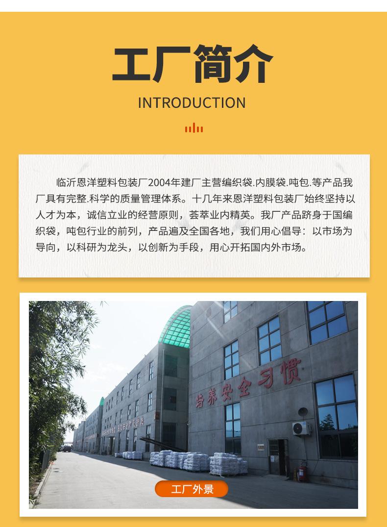 La Fábrica de Empaques de Plástico Enyang produce y vende bolsas de piel de serpiente, bolsas de embalaje, bolsas tejidas, bolsas para contenedores, bolsas tejidas peritoneales y otros productos al mercado de consumo. La fábrica puede procesar y personalizar según los requisitos del cliente. Disfruta de un alto estatus entre los consumidores. La empresa ha establecido relaciones de cooperación a largo plazo y estables con muchos minoristas y agentes. RespetamosCon el espíritu empresarial de "firmeza, trabajo duro y responsabilidad", y la filosofía empresarial de honestidad, beneficio mutuo e innovación, creamos un buen entorno de oficina, y tomamos un nuevo modelo de gestión, tecnología perfecta, servicio atento y excelente calidad como base para la supervivencia. Siempre nos adherimos al principio de cliente primero, servimos a los clientes atentamente e impresionamos a los clientes con nuestros propios servicios. Al mismo tiempo, la empresa sigue las reglas del mercado, mejora constantemente la gestión empresarial y la formación del personal técnico clave, y se compromete a producir y fabricar mejores productos. Este es el objetivo perseguido por nuestra empresa, y siempre nos exigimos estrictamente en este sentido. Buscamos estar orientados al cliente, mejorar la eficiencia de producción y la calidad del cliente como objetivo, y proporcionar productos a precios razonables y servicios perfectos. ¡Su satisfacción es nuestra búsqueda constante!