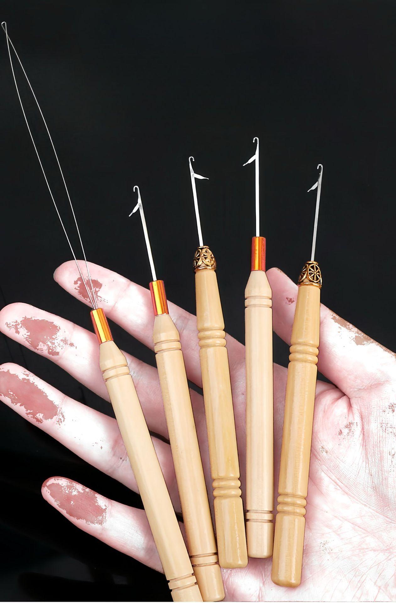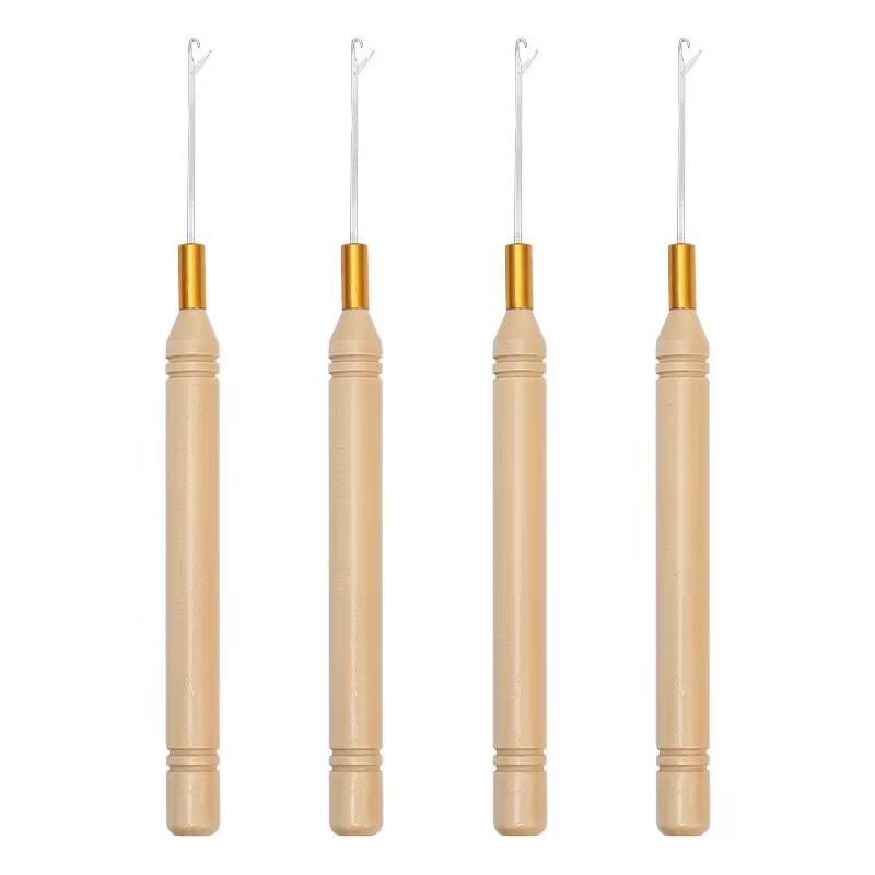 Wig crochet wooden handle hollow style, Wig crochet wooden handle cylindrical style, Wooden handle hair extender
