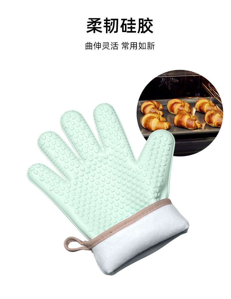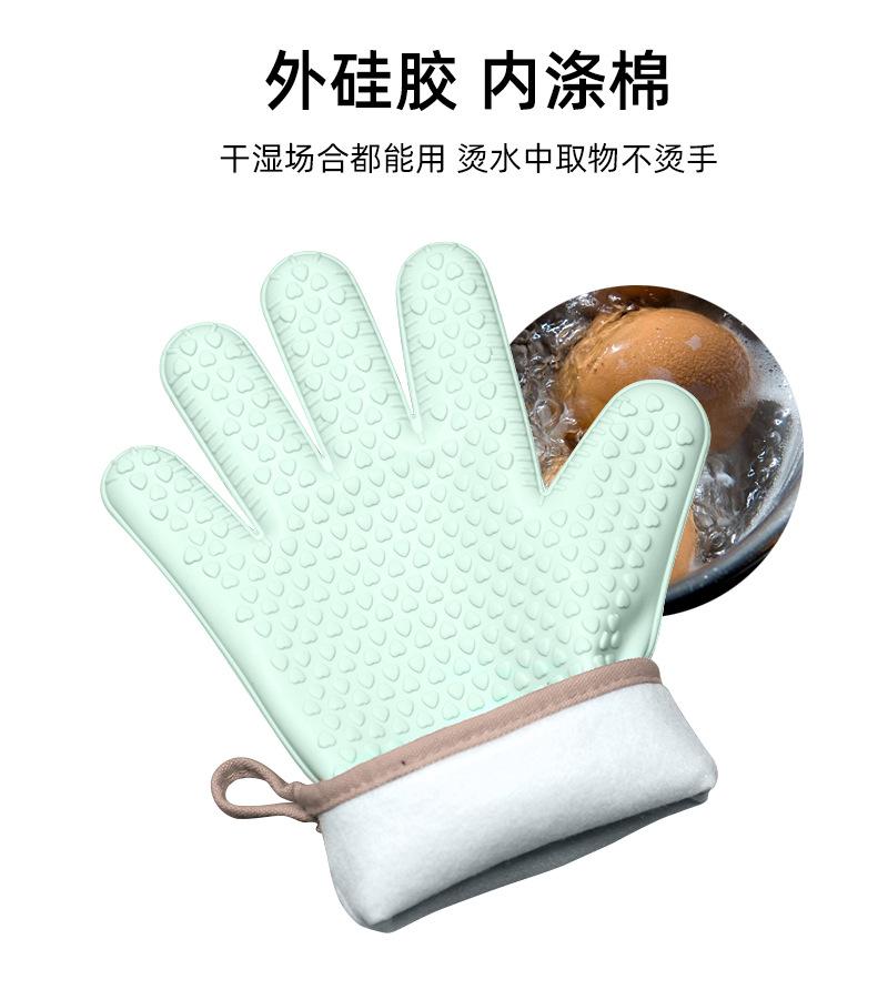 Guantes de silicona anti-escaldaduras para horno microondas, guantes aislantes térmicos de cinco dedos para horno de cocción, venta al por mayor, gruesos, de alta temperatura, para cocina y hogar