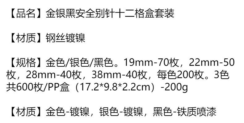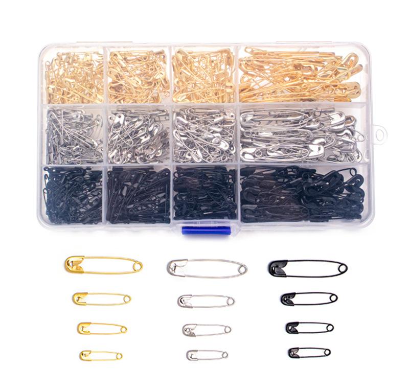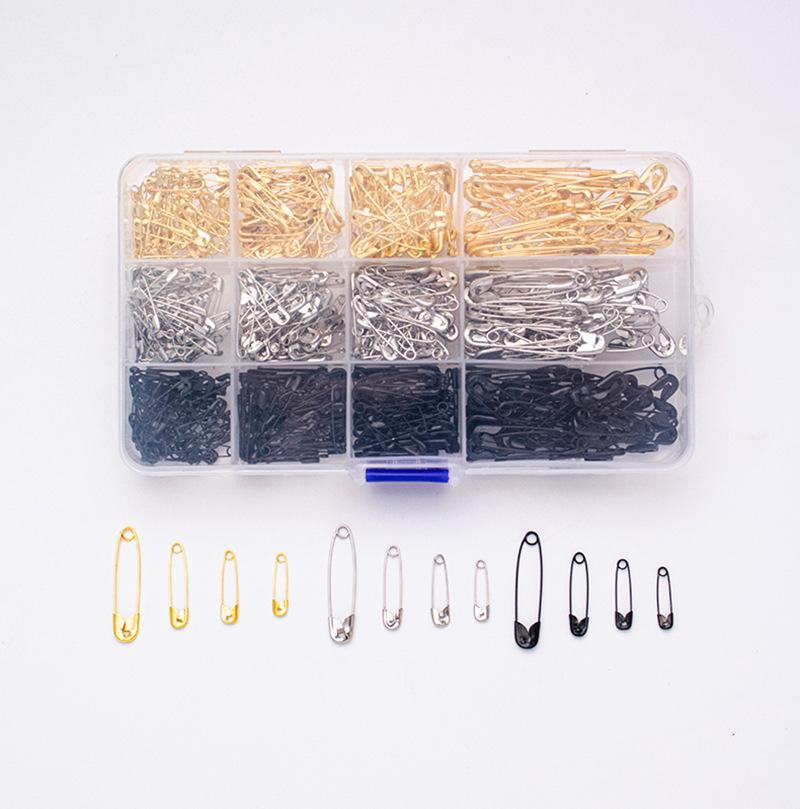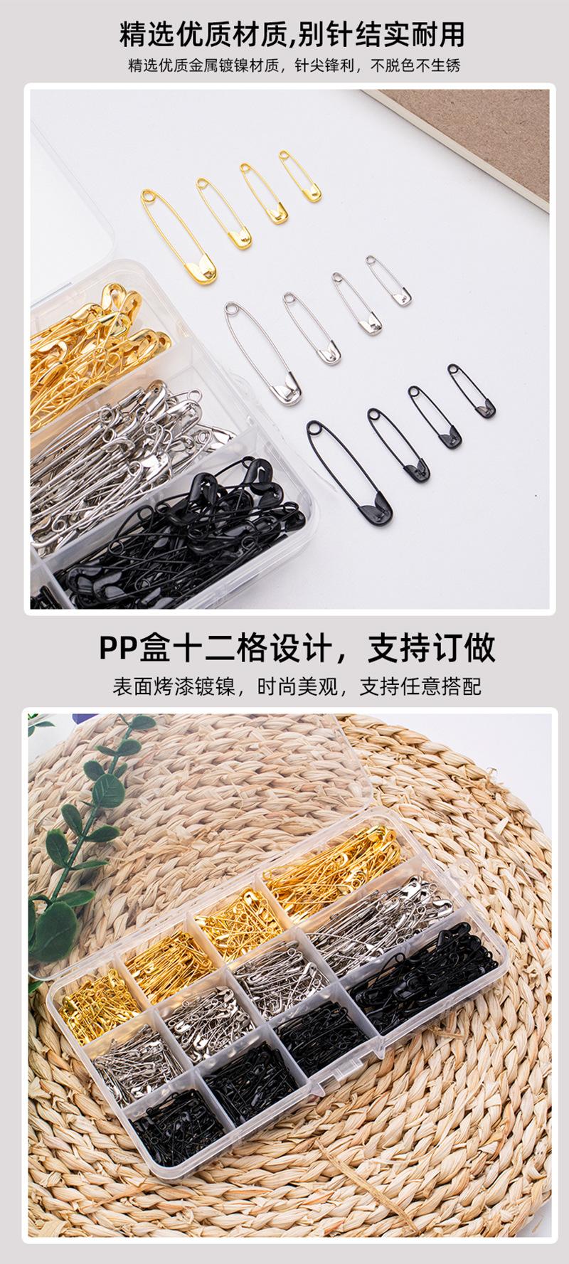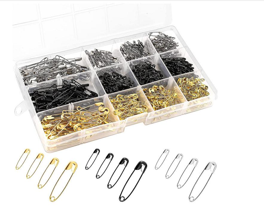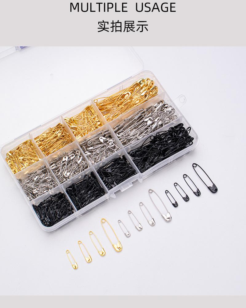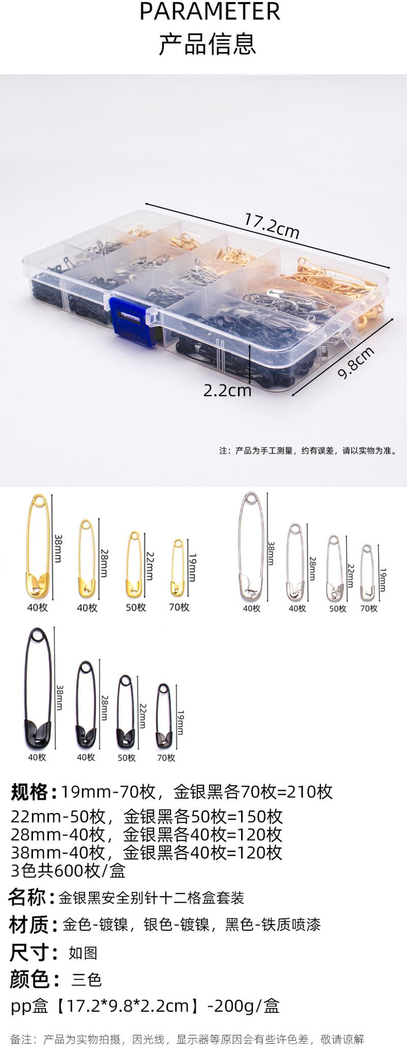 Pin de seguridad de 12 rejillas de múltiples especificaciones transfronterizo, en caja, plateado, dorado y negro, pin para etiqueta de ropa, 600 piezas