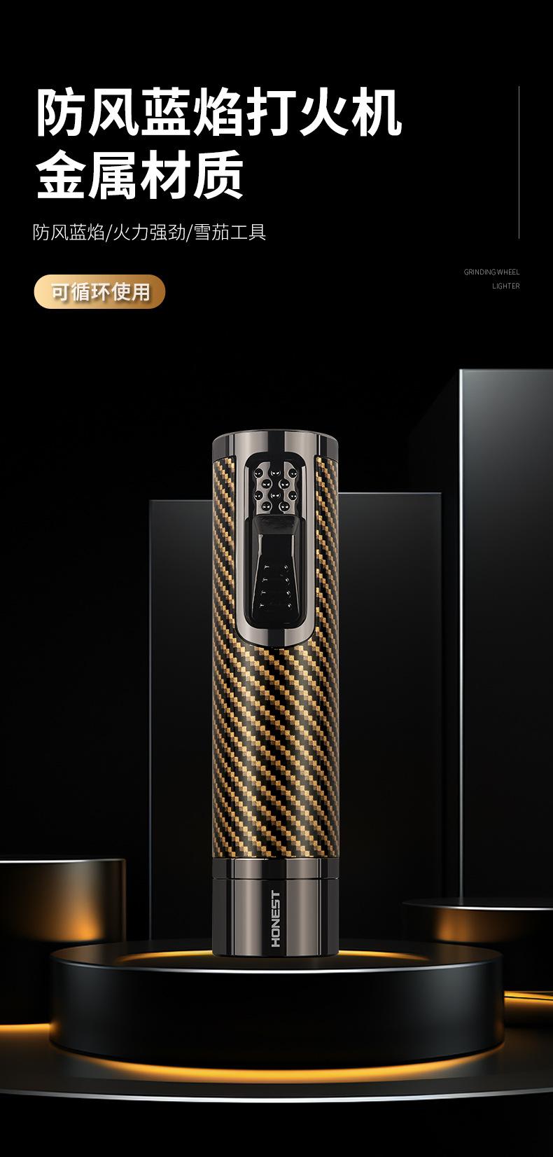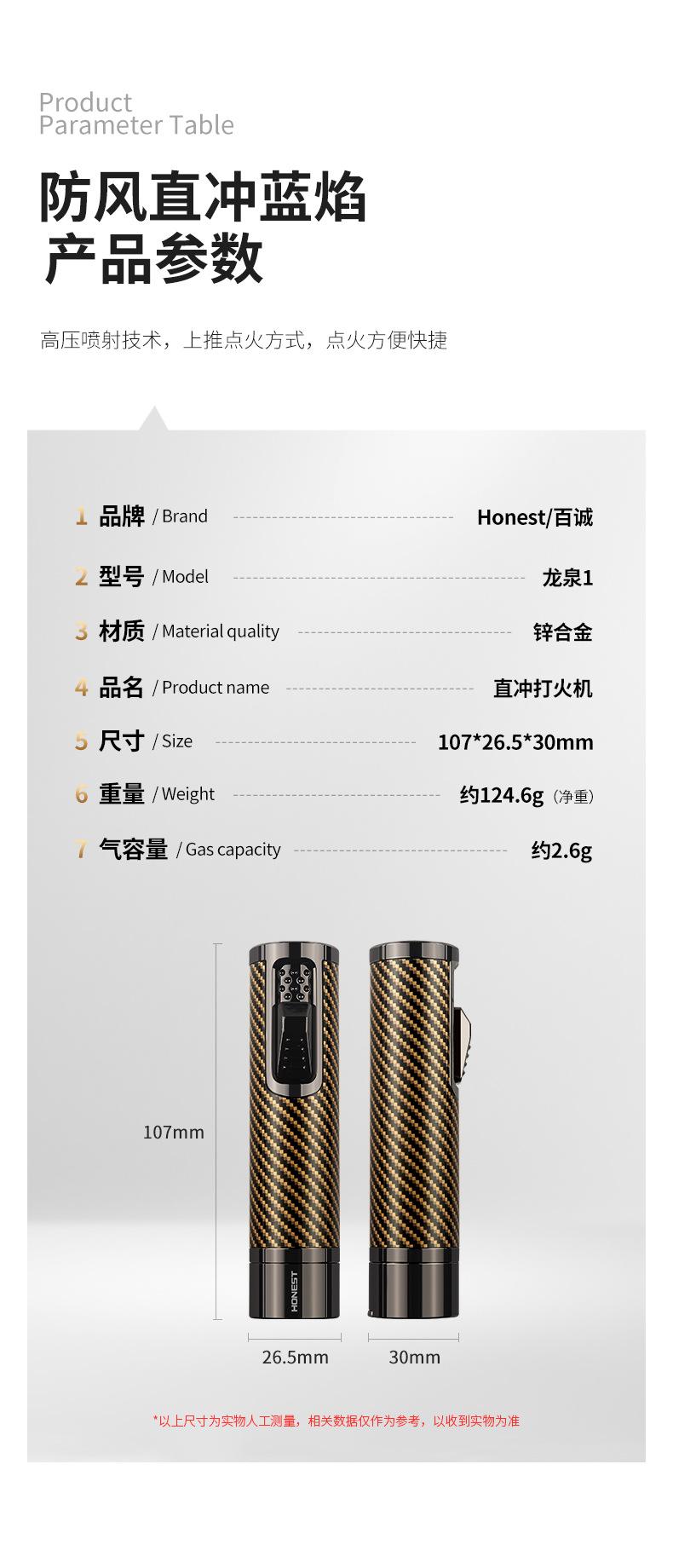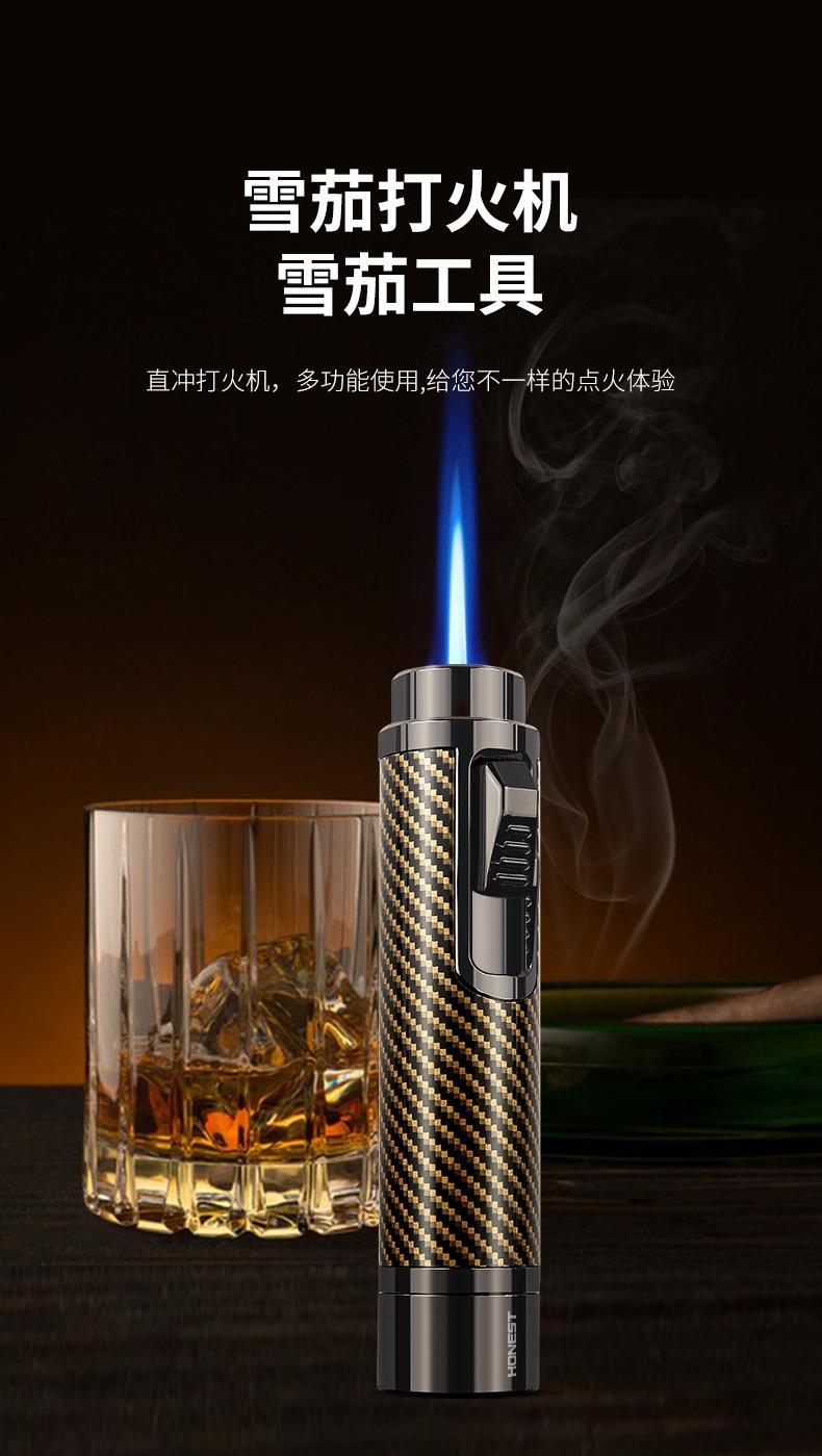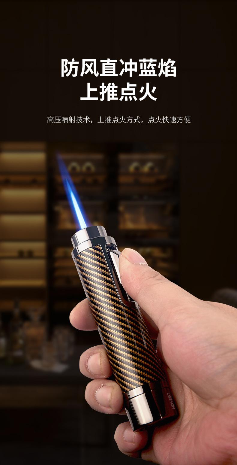 Encendedor de Puros Recto de Metal Baicheng Longquan Encendedor de Llama Azul de Alta Potencia a Prueba de Viento Venta al por Mayor Transfronteriza