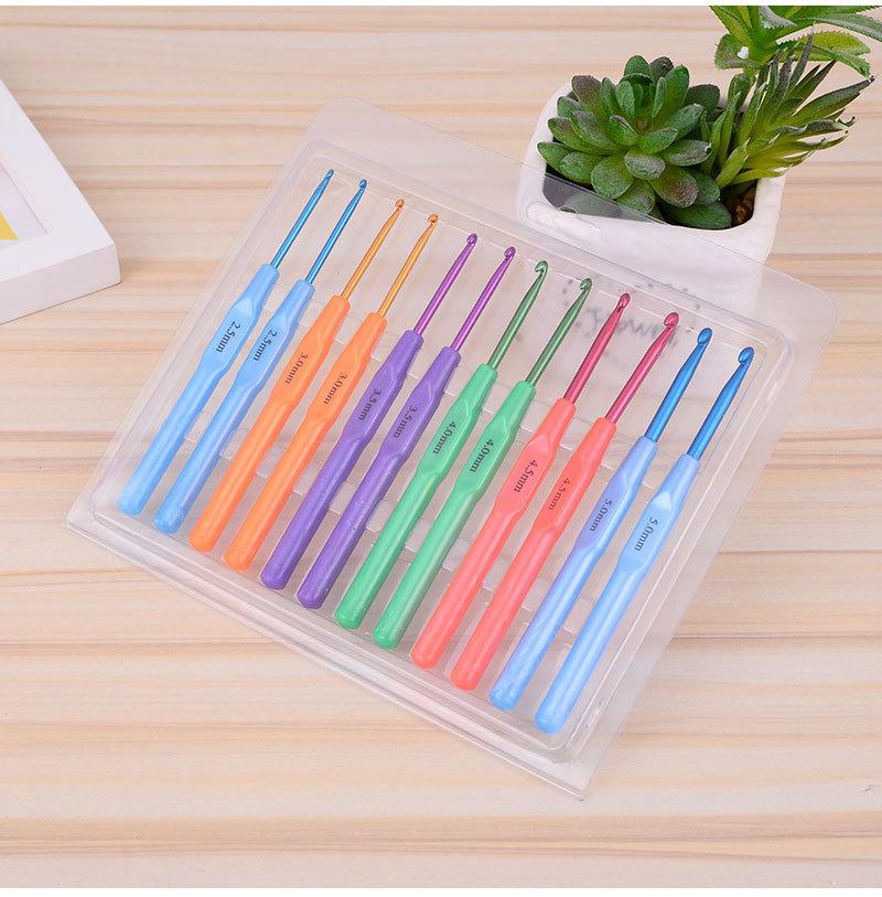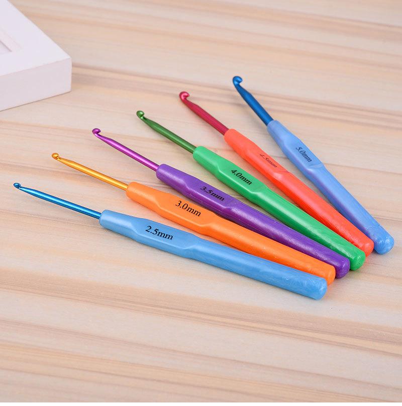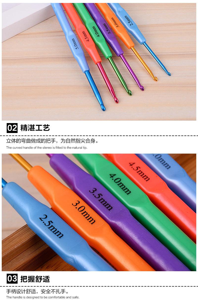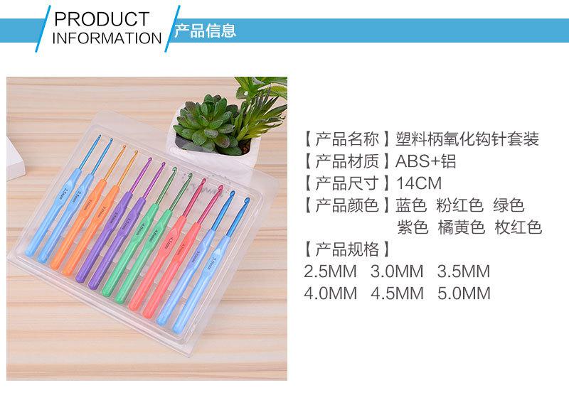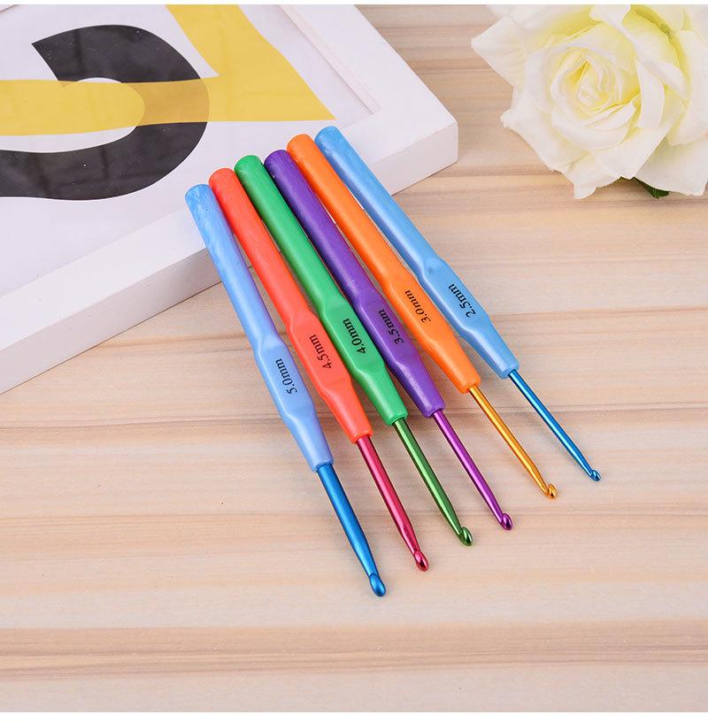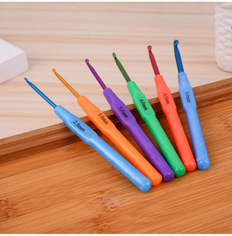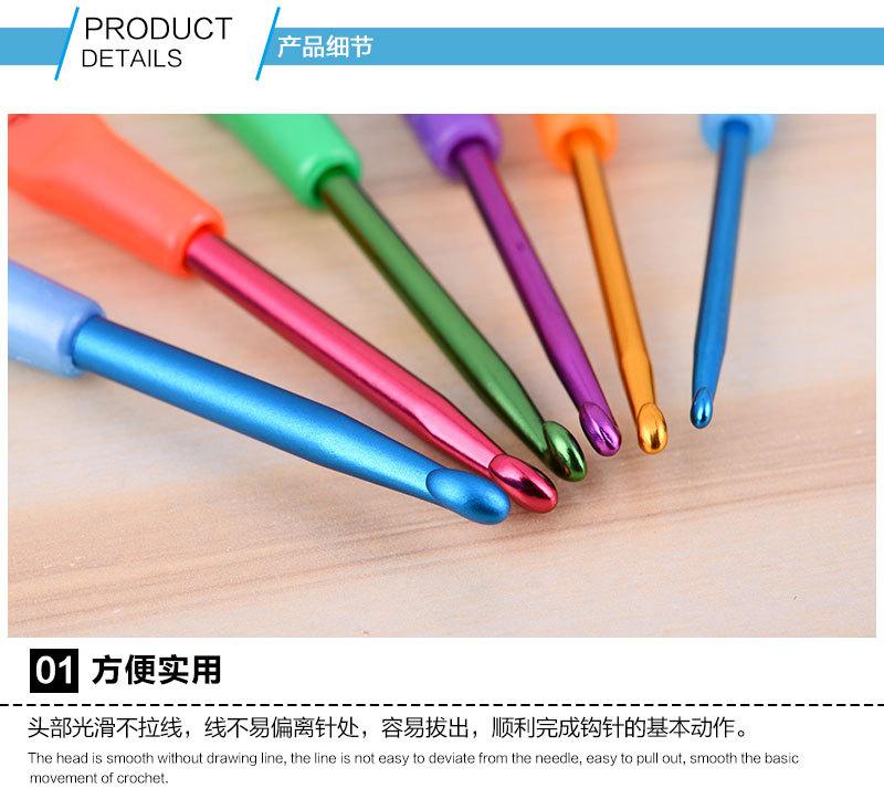 Fábrica al por mayor, mango de plástico, alúmina, traje de crochet, suéter, aguja de lana, color, herramienta para tejer a mano DIY