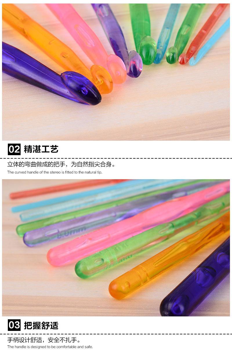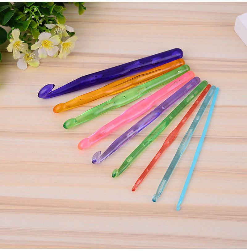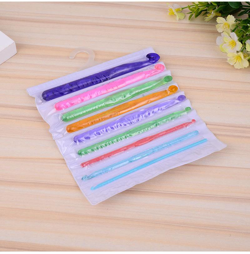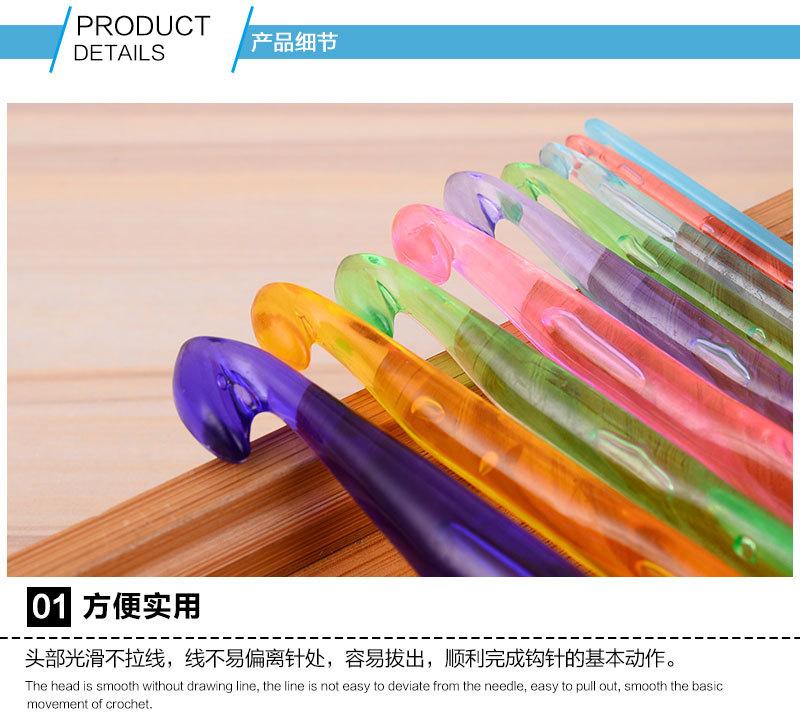 Aguja de suéter de color traje de crochet de plástico, herramienta de tejido de una sola cabeza hecha a mano DIY, venta al por mayor de fábrica