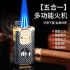 Encendedor especial para cigarros creativo de tres llamas directas cinco en uno con tijeras para cigarros en forma de V encendedor multifuncional portátil