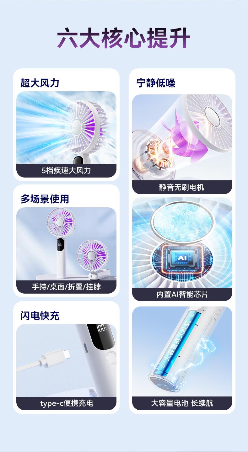 Ventilador portátil pequeño de mano, nuevo modelo 2024, con carga USB, multifunción, regalos de comercio exterior transfronterizos, venta al por mayor