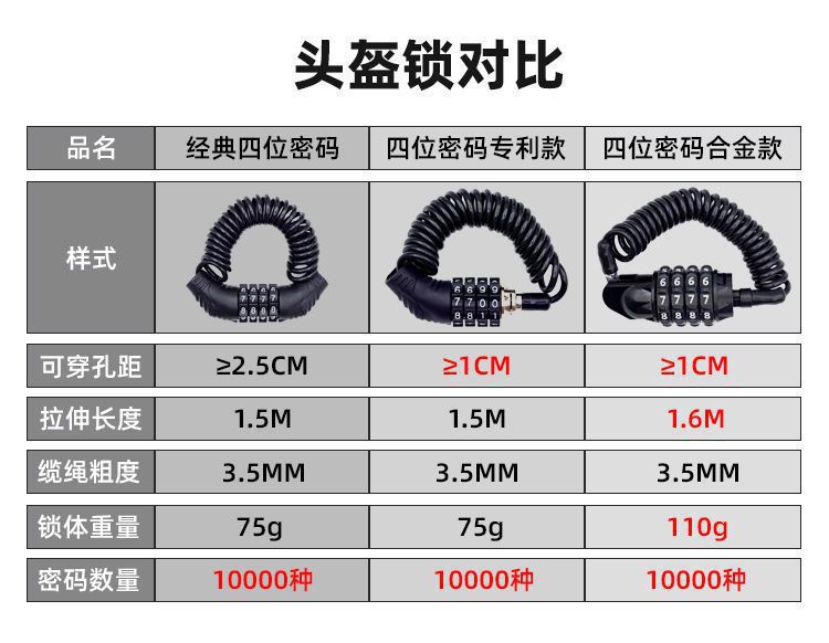 Compra Candado de combinación para casco, candado para bicicleta, candado antirrobo para motocicleta, coche eléctrico, gorra, candado portátil de cable de acero, candado de alambre al por mayor en Joom.pro