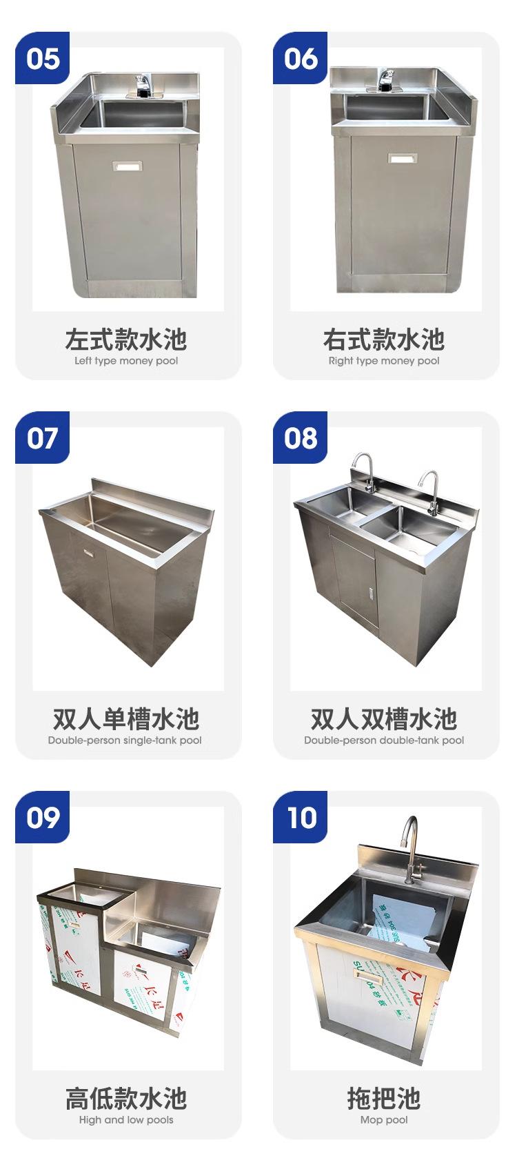 Single sink (without faucet), Single sink (manual faucet), Single sink (foot faucet), Single sink (induction f...
