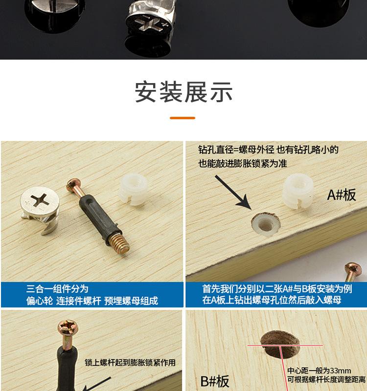 Conector de muebles con rueda excéntrica engrosada, tres en uno, para cama, armario, panel de muebles, accesorios de montaje, tornillo y tuerca