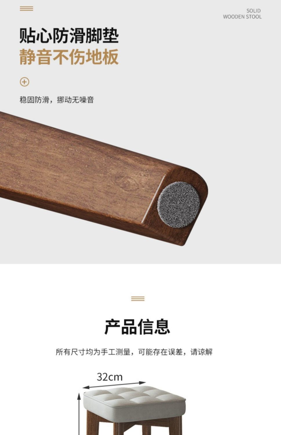 Compra Taburete de madera maciza con asiento suave, moderno y sencillo, para comedor, sala de estar, banco pequeño, mesa de centro apilable y sencilla, taburete cuadrado al por mayor en Joom.pro