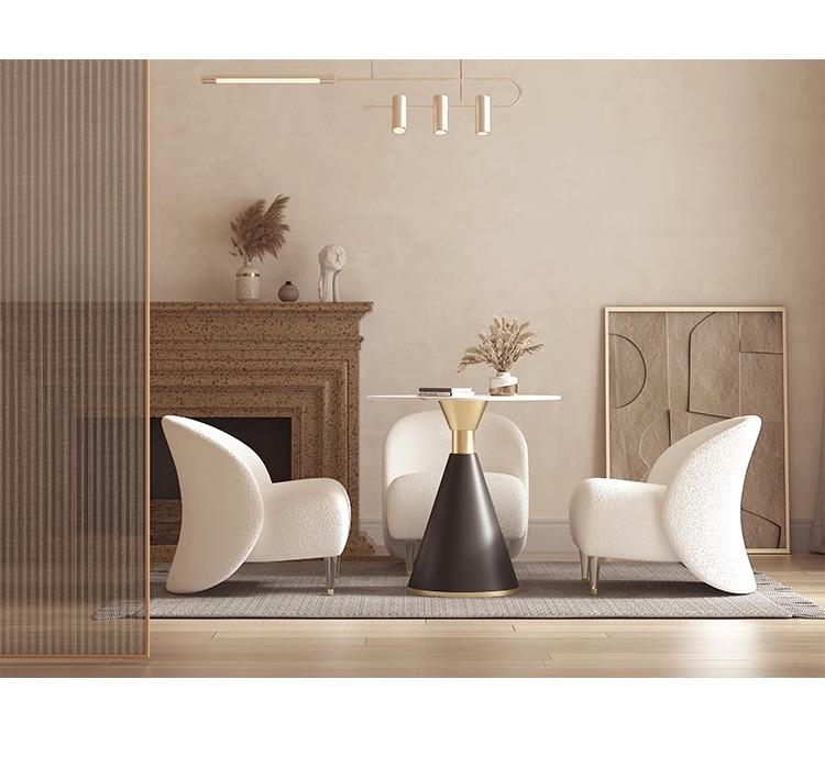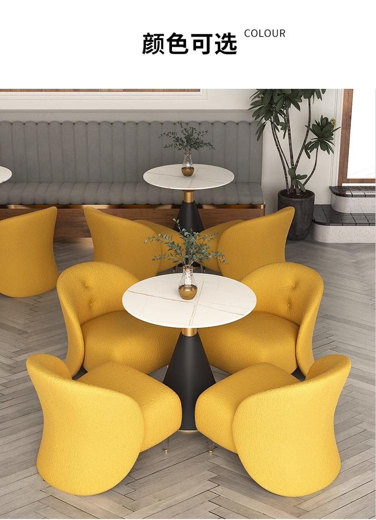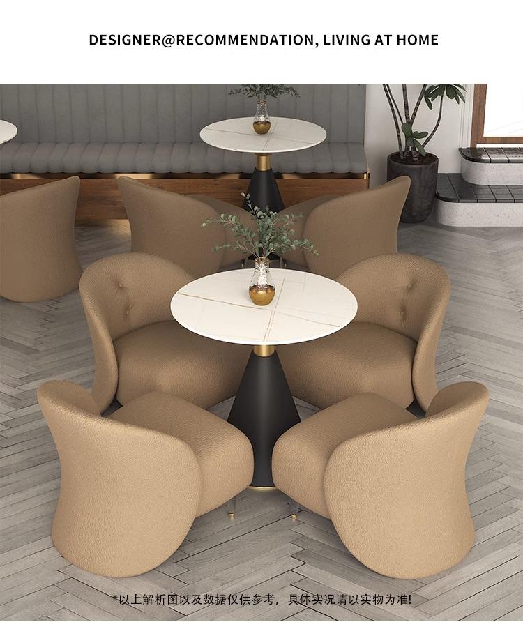 Combinación de mesa de centro con sofá individual para negociación en hotel, mesa y silla para restaurante en el vestíbulo del hotel, mesa y silla para área de descanso en la sala de recepción.