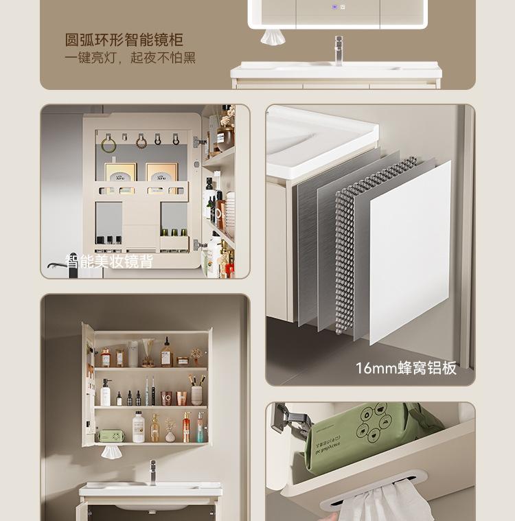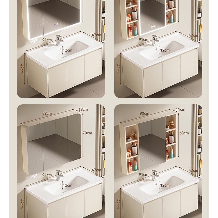 Compra Estilo Crema Panal Aluminio Baño Cerámico Integrado Espejo de Baño Gabinete de Almacenamiento Colgante de Pared con Espejo de Tocador Agujero para Papel al por mayor en Joom.pro