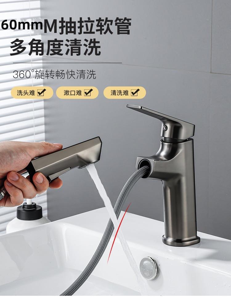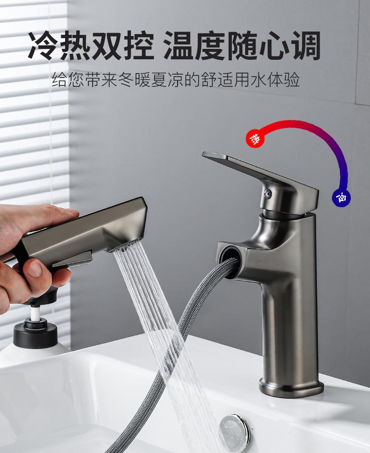 Grifo de lavabo gris plomo baño baño lavabo para gárgaras lavabo extraíble universal grifo de agua fría y caliente